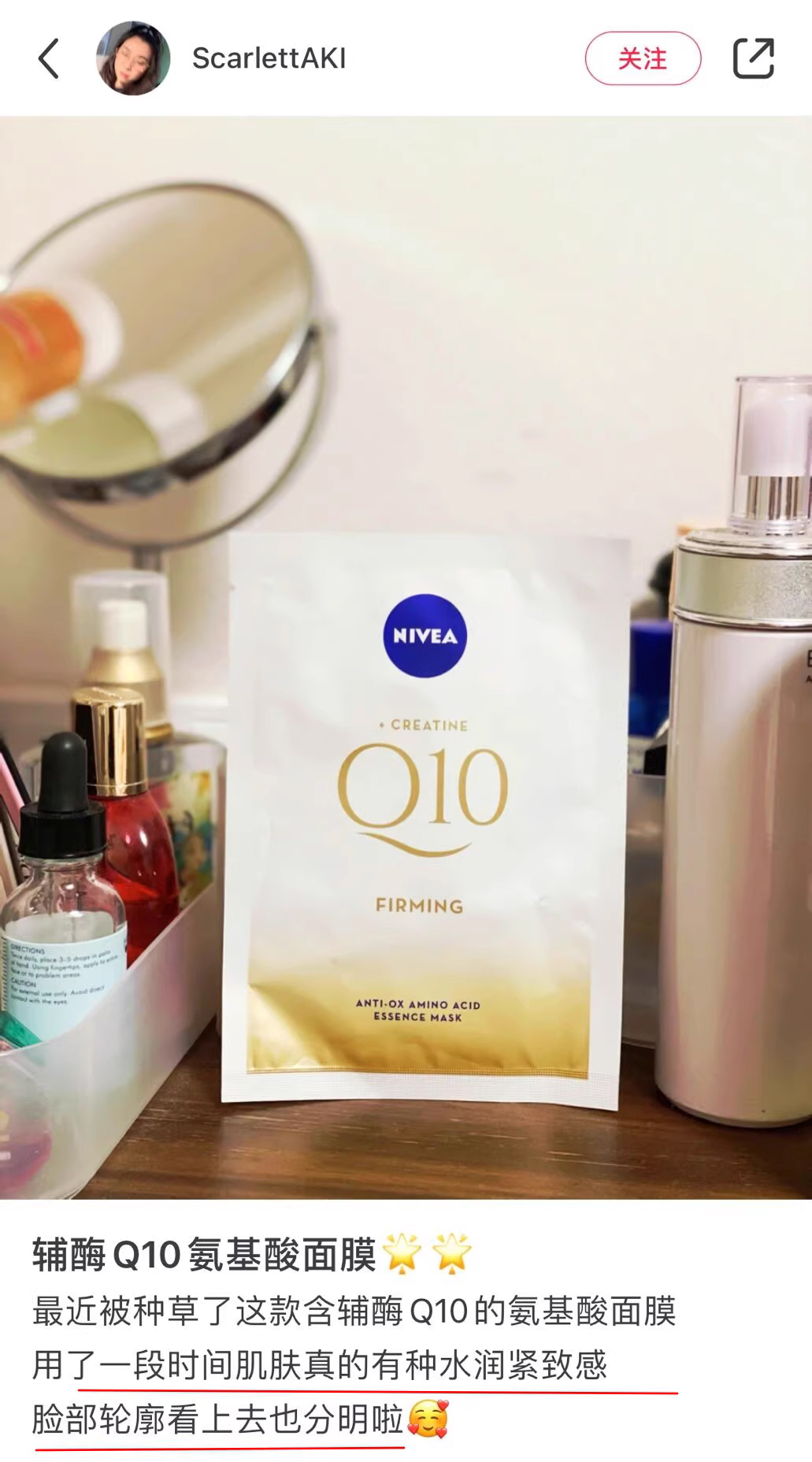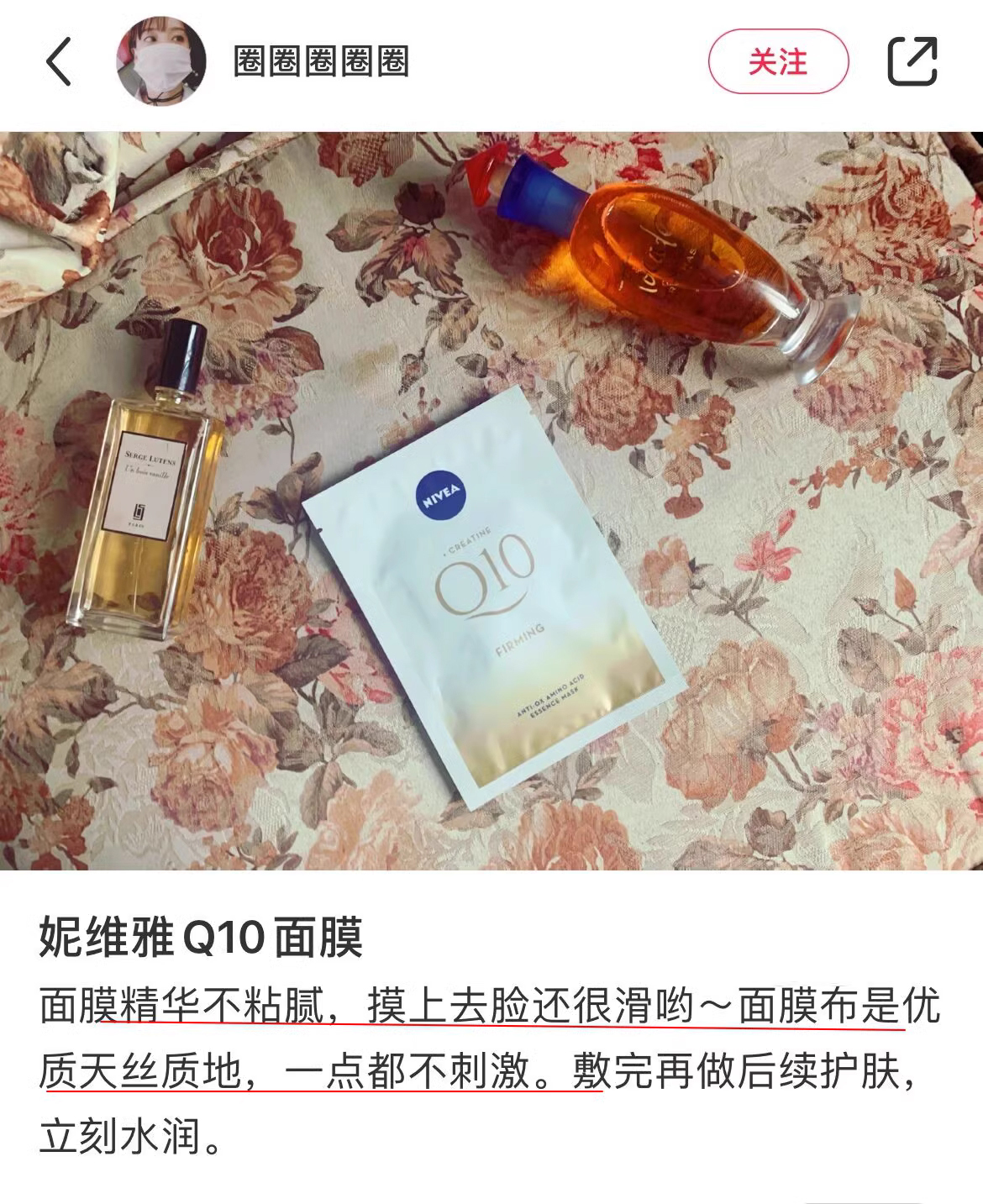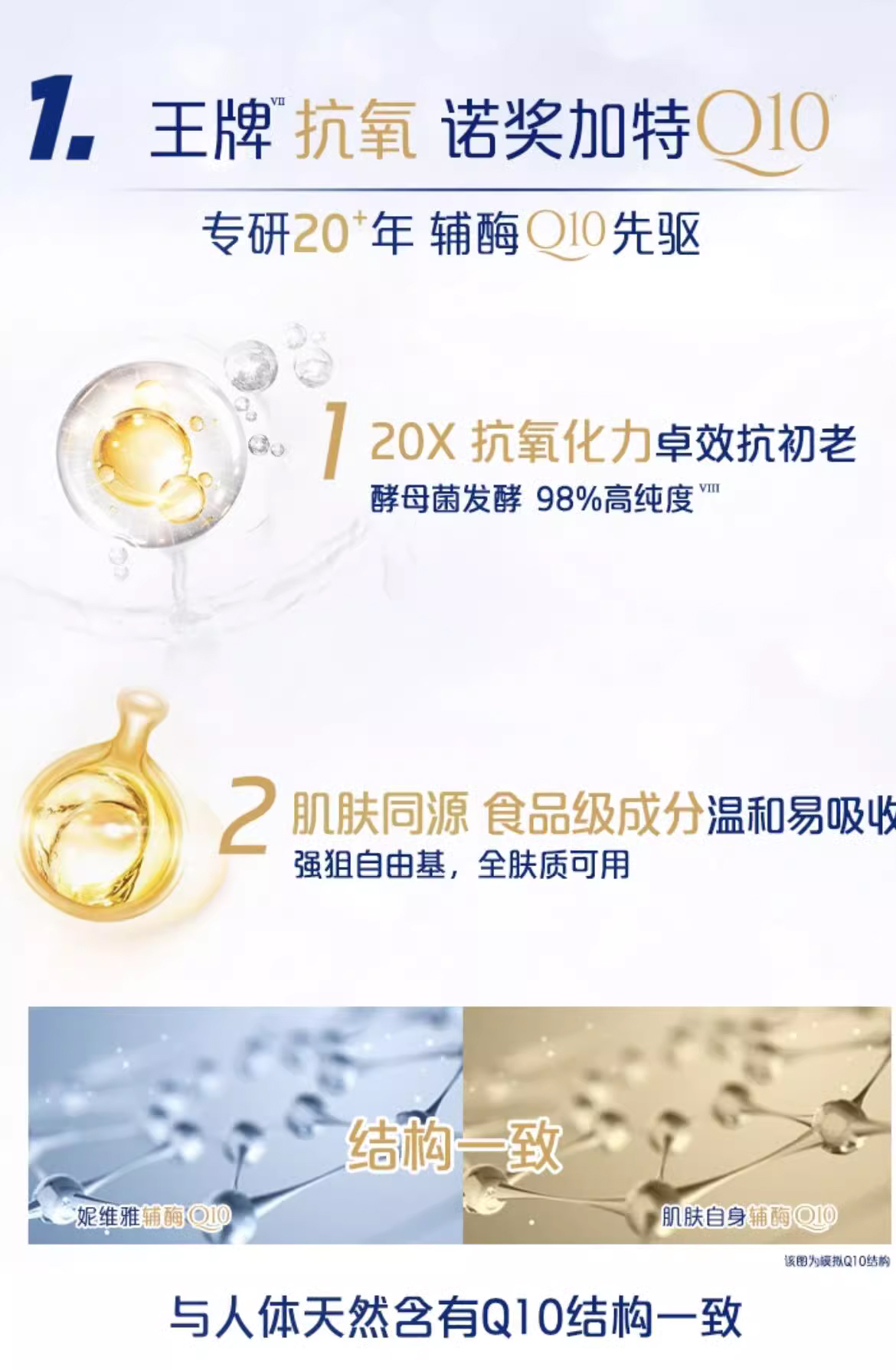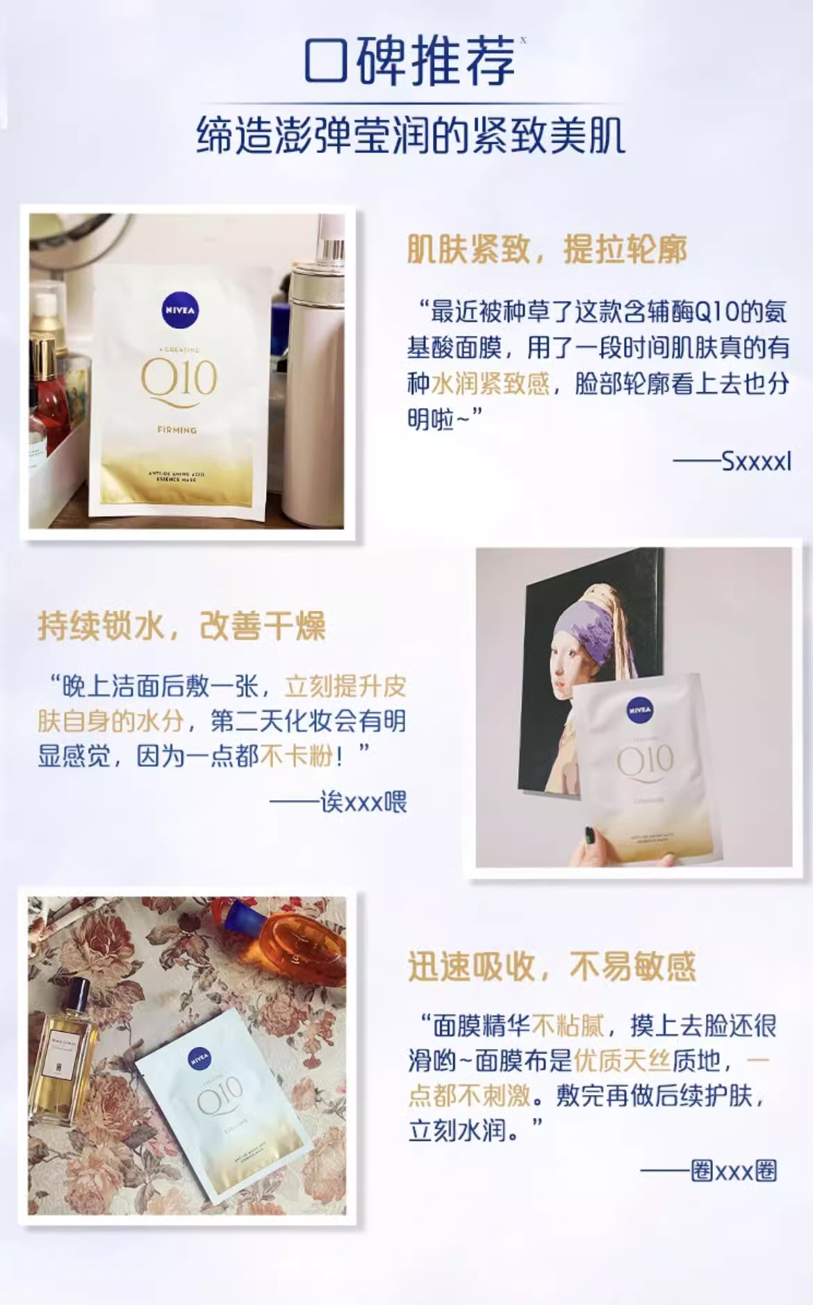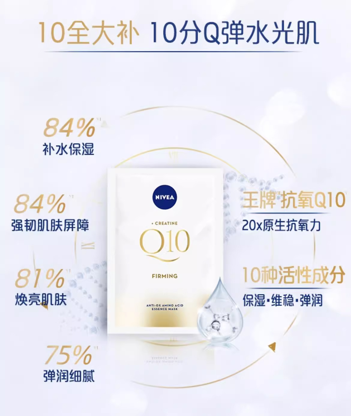 而妮维雅呢,很幸运的得到了爸爸的宠爱,成为了第①个将辅酶Q10运用到护肤品中的品牌!不夸张的说,这个面膜用到的辅酶Q10,绝对是市面上其它牌子的辅酶Q10无可比拟的!
