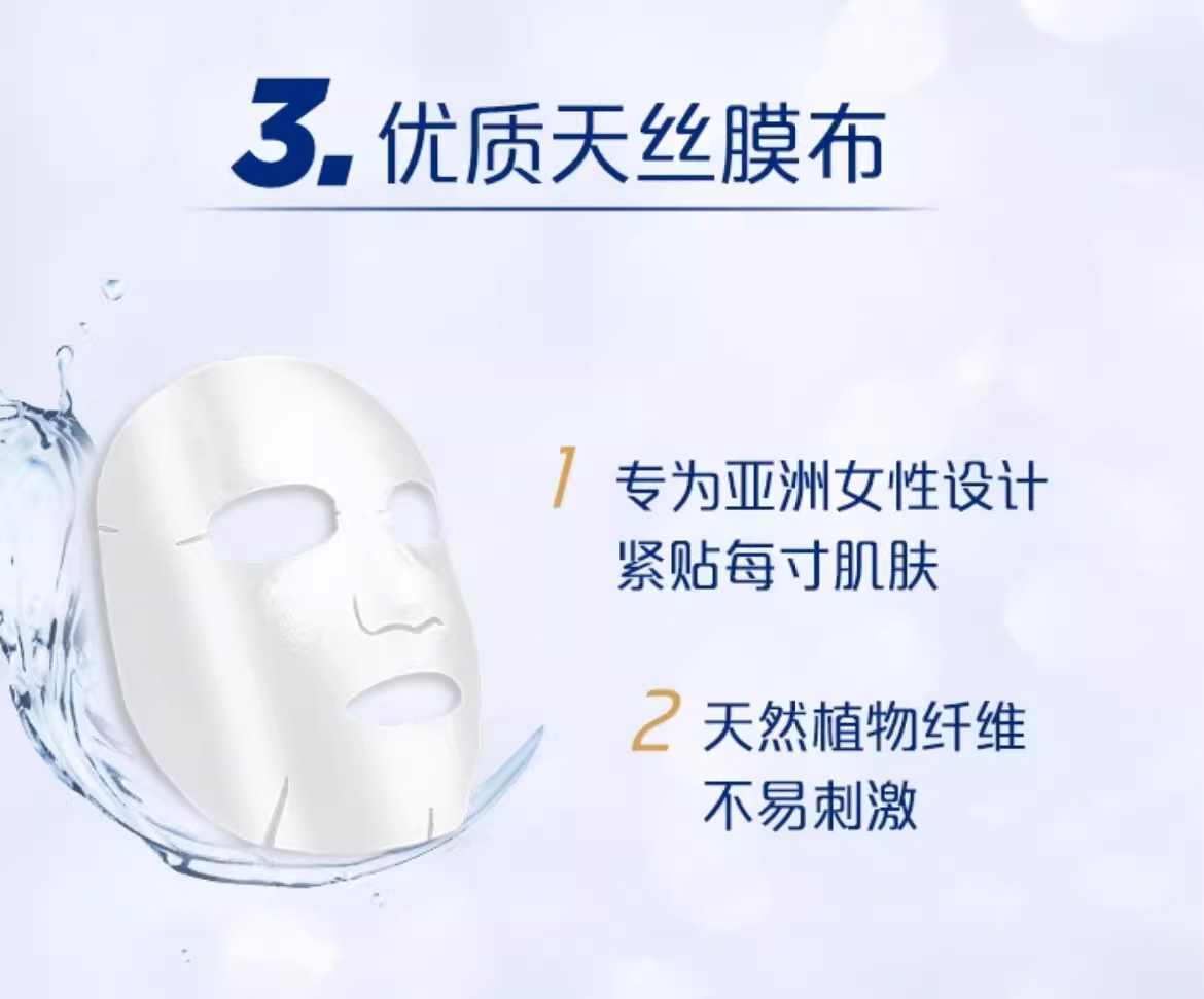 它采用的是优质的天丝膜布,成分天然健康,对肌肤没有刺激,并且比一般材料更加贴合肌肤~上脸后能感受到肌肤在拼命吸收养分,敷15分钟拿下面膜,肌肤丰盈润泽,摸上去QQ弹弹,手感细腻了不少~