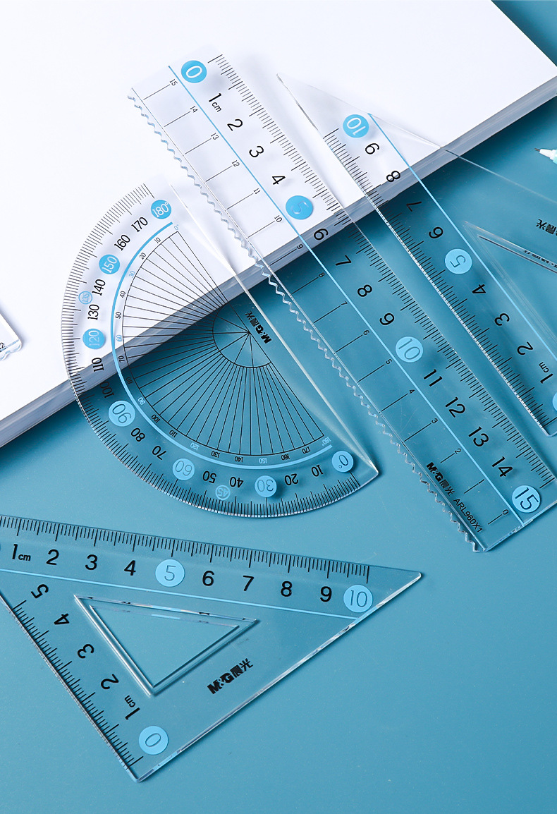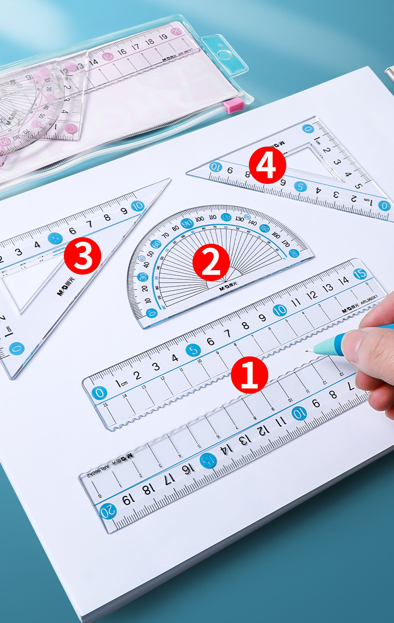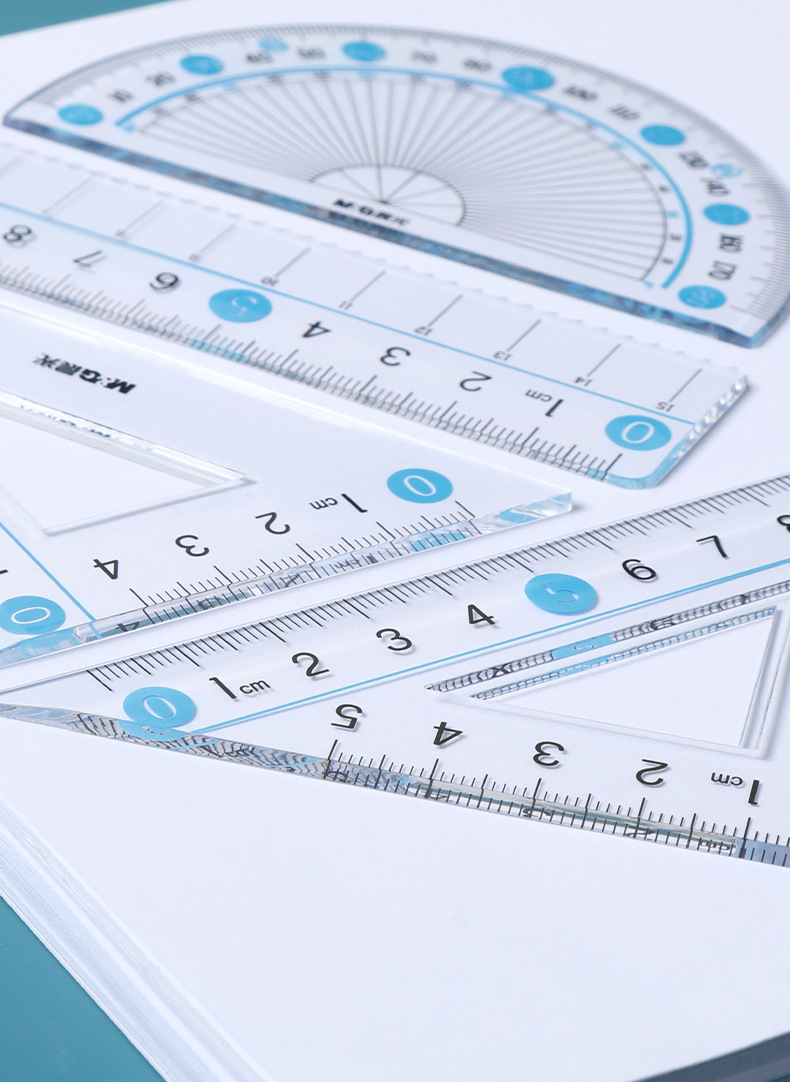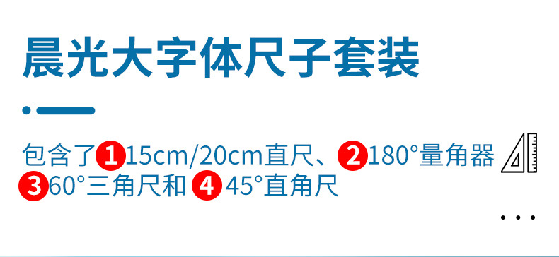 【开学必备!4件套尺】晨光ARL960X1/2大字体套尺 学生用直尺 三角尺 量角器 多功能四件套
