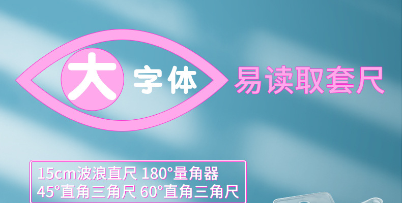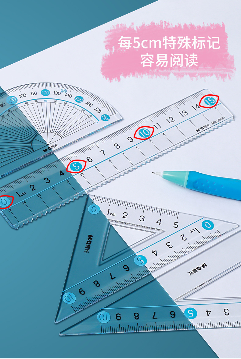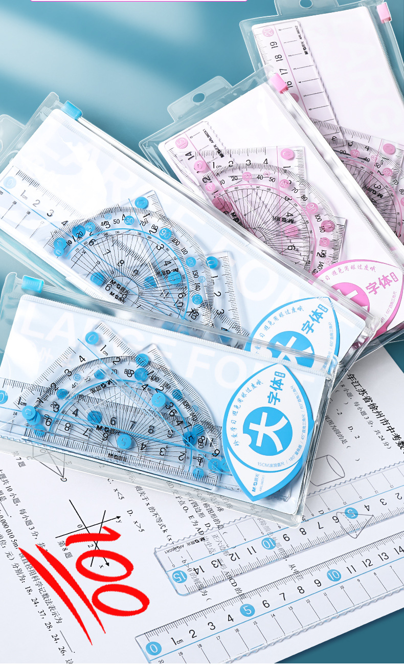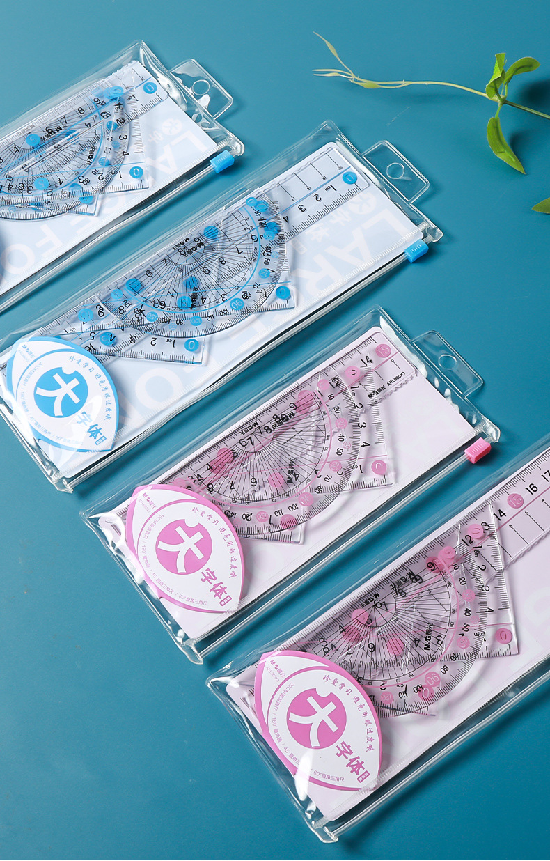 【开学必备!4件套尺】晨光ARL960X1/2大字体套尺 学生用直尺 三角尺 量角器 多功能四件套