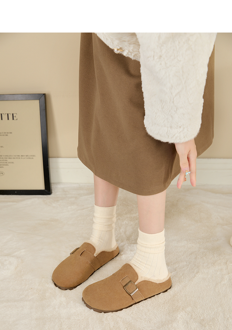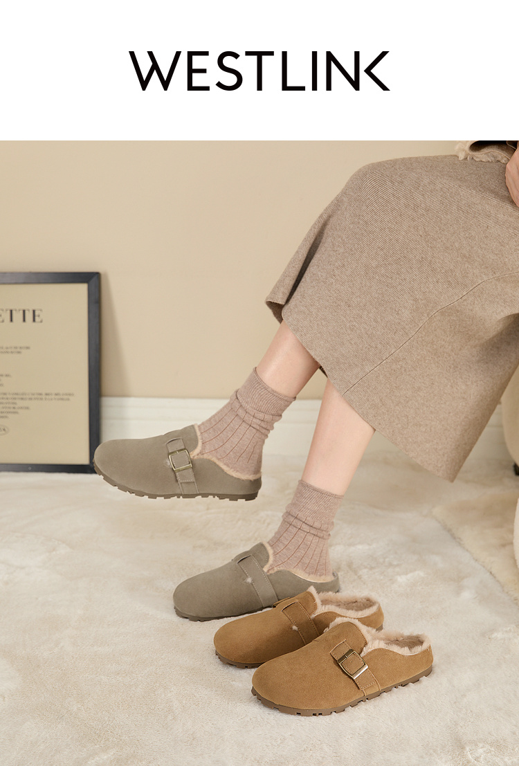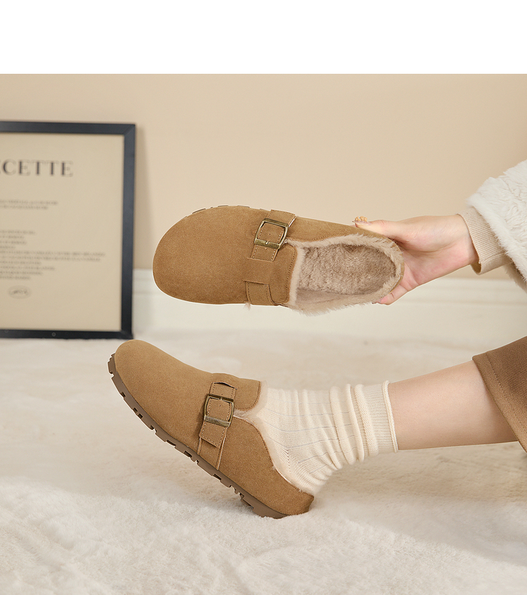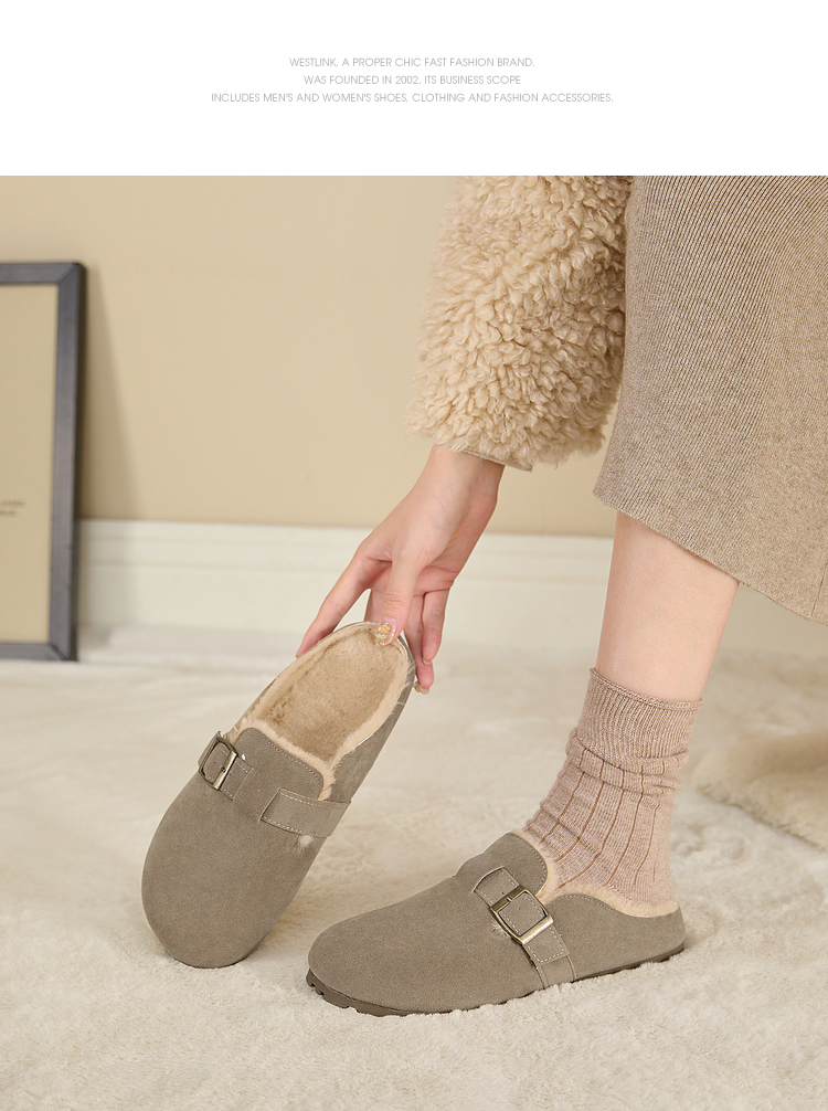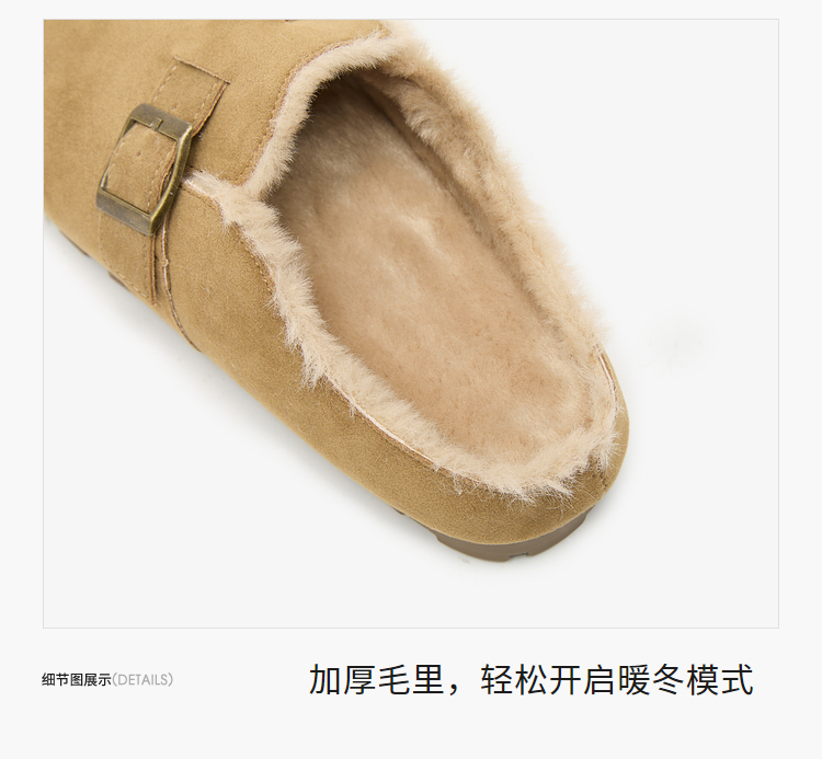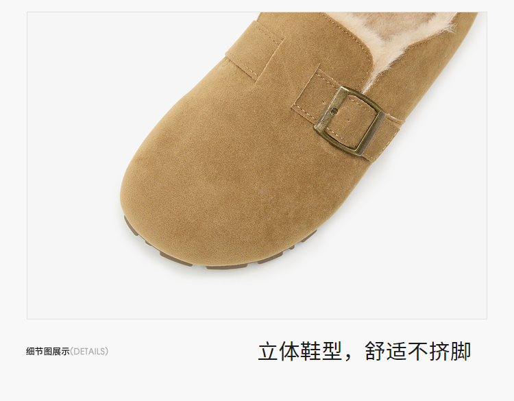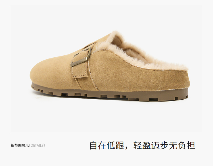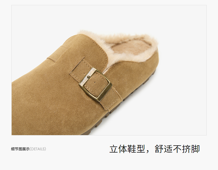 西遇勃肯鞋半拖女冬季外穿新款保暖加厚加绒棉鞋包头毛毛拖鞋V4147865