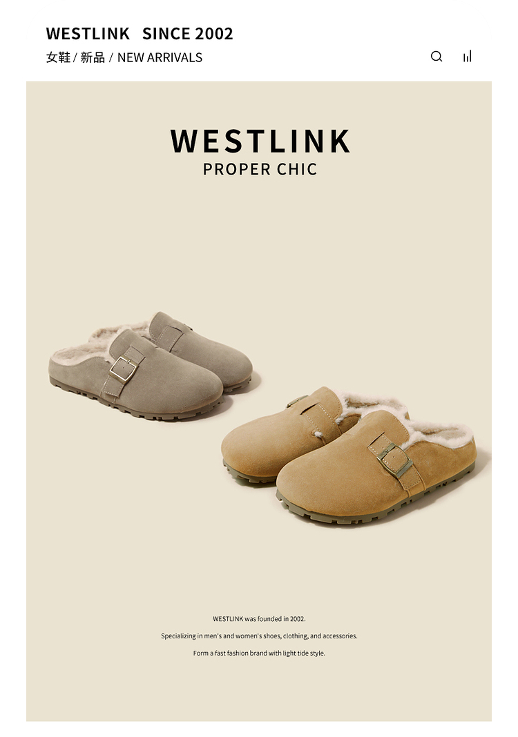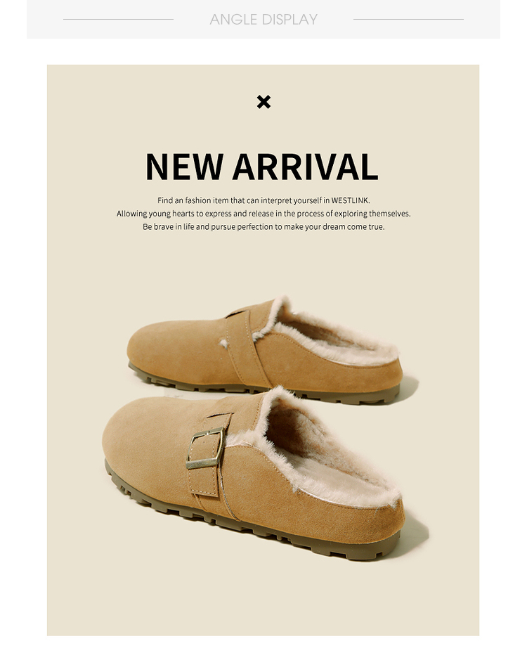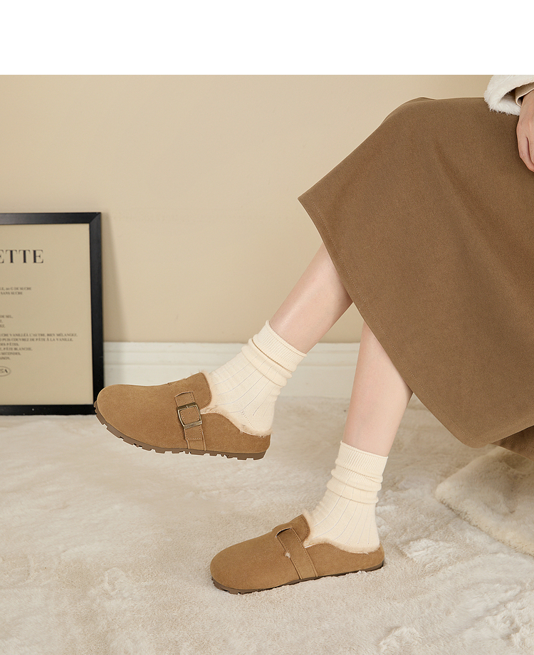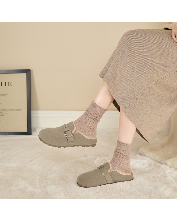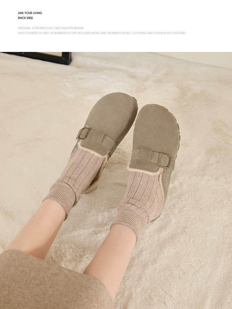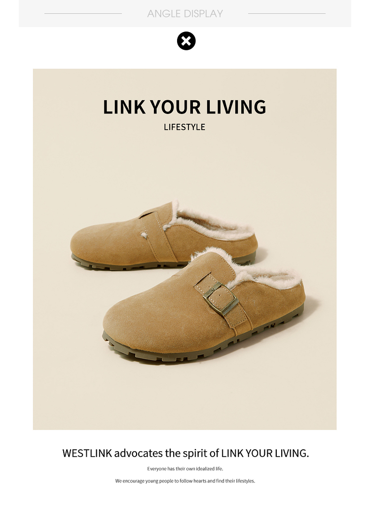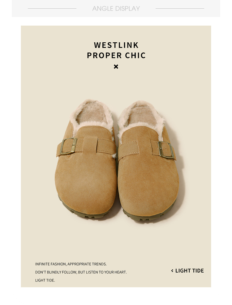 西遇勃肯鞋半拖女冬季外穿新款保暖加厚加绒棉鞋包头毛毛拖鞋V4147865