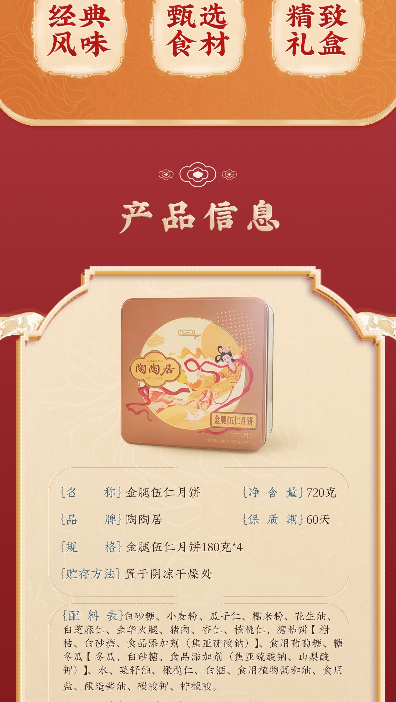 【预售】陶陶居-金腿五仁月饼
