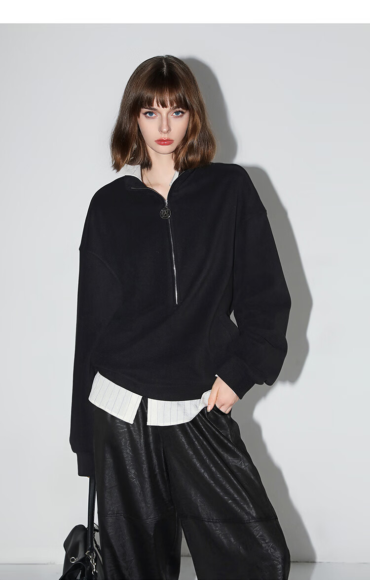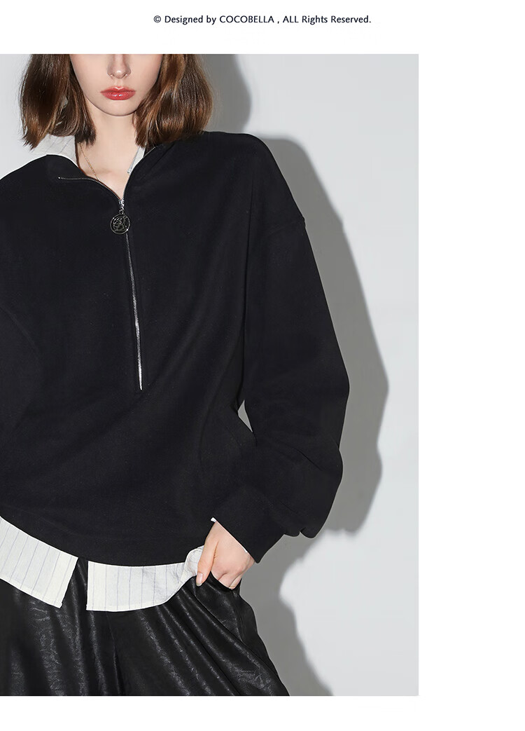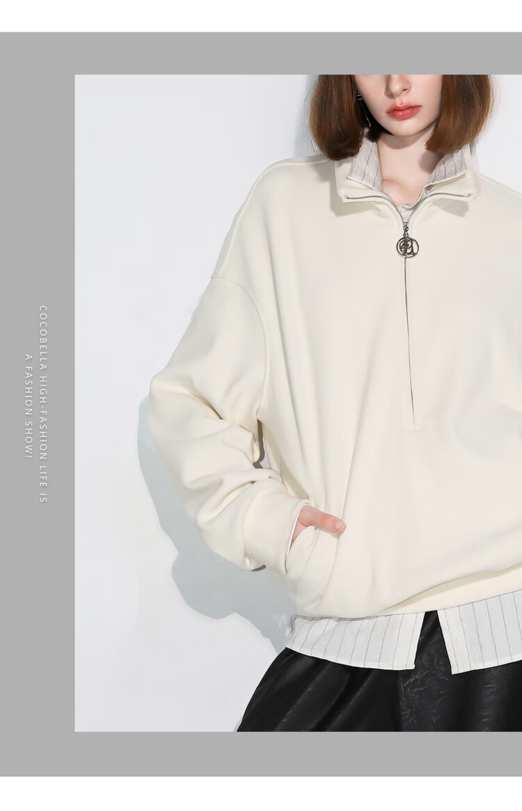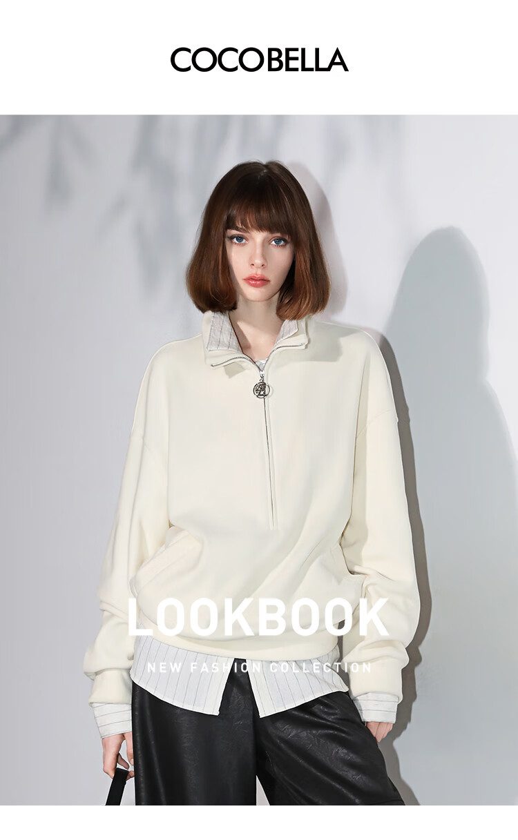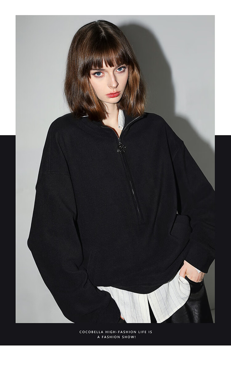 COCOBELLA商务休闲半拉链POLO衫舒适亲肤气质落肩卫衣SE7001