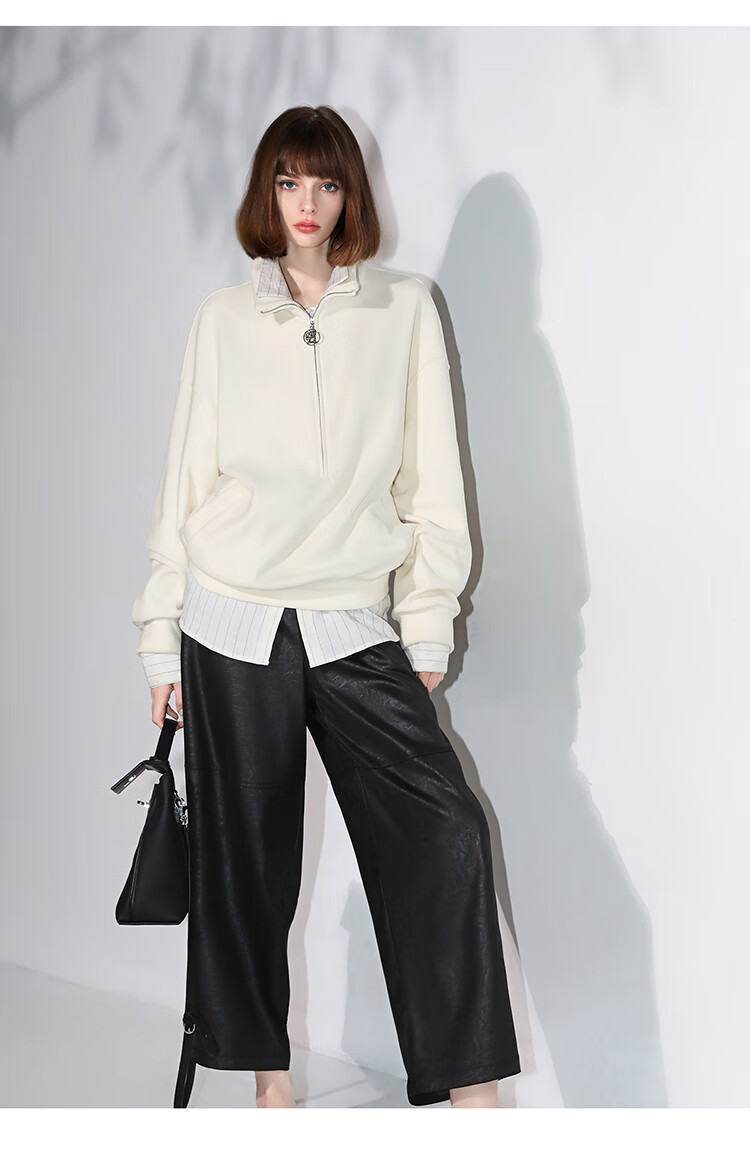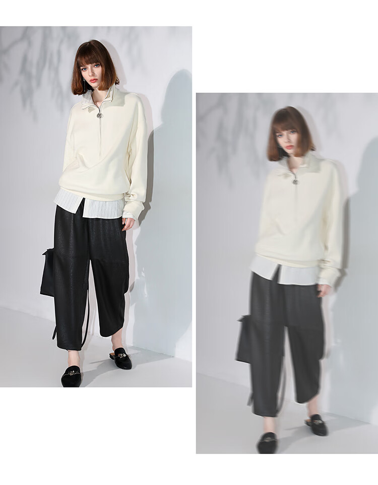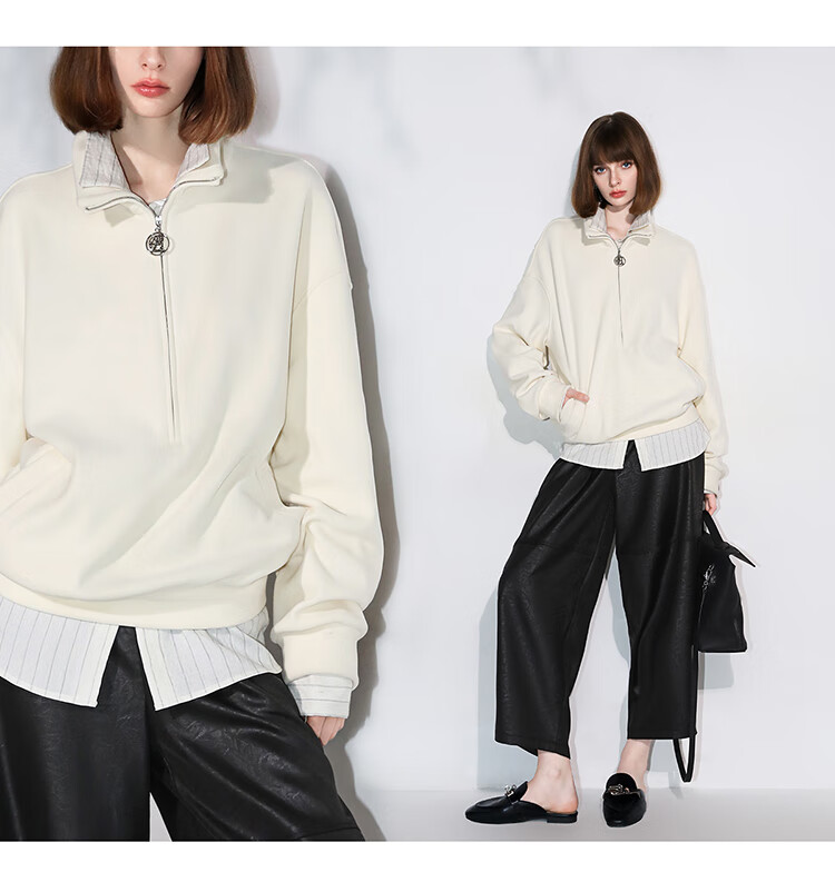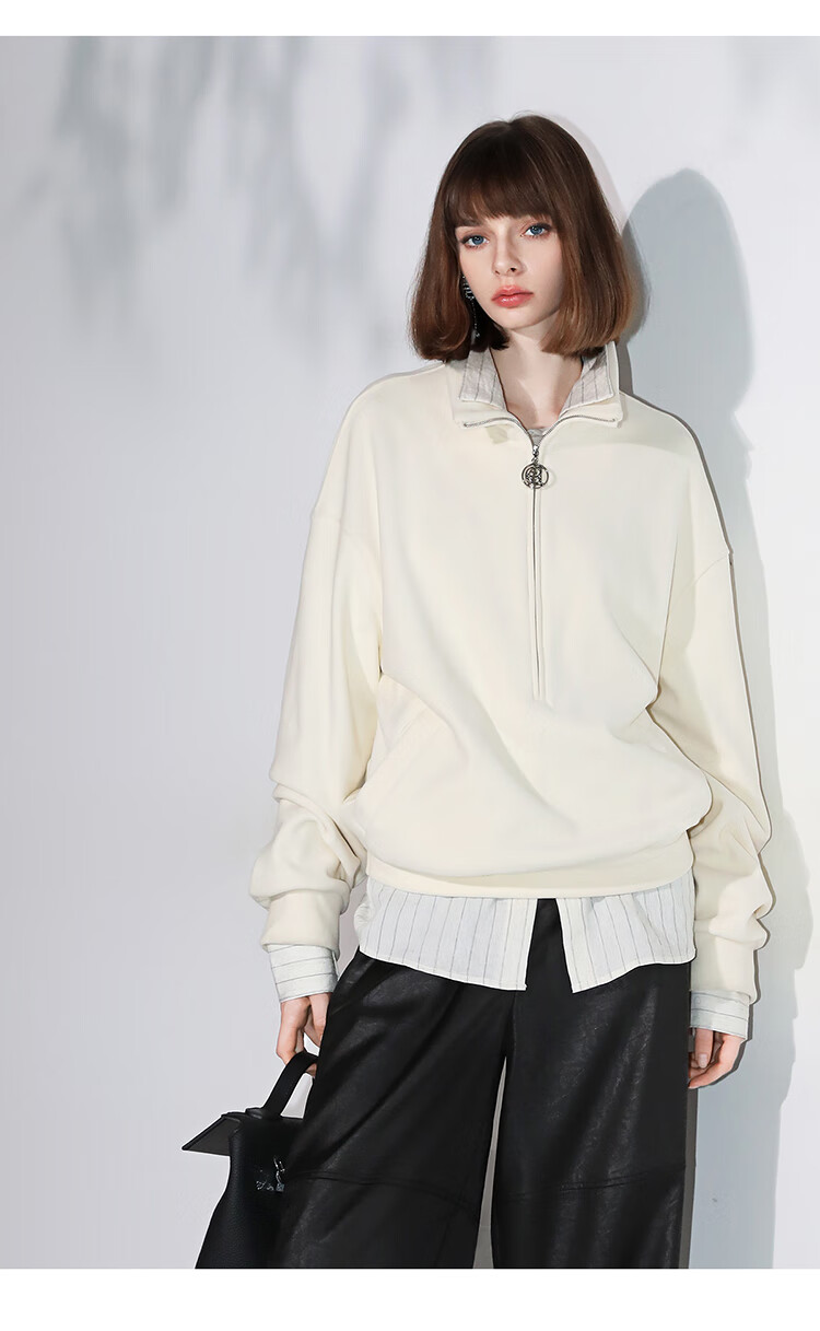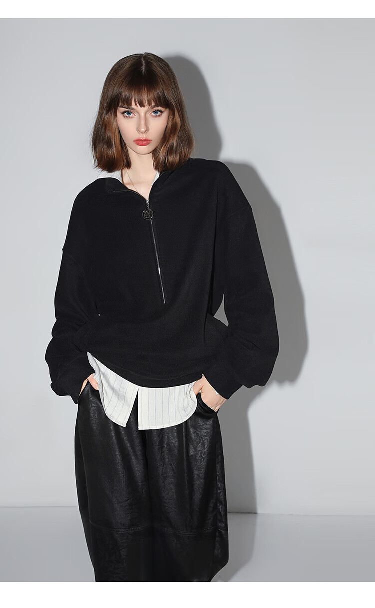 COCOBELLA商务休闲半拉链POLO衫舒适亲肤气质落肩卫衣SE7001