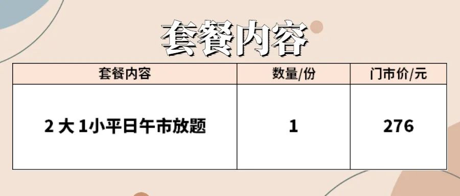 ◆ 套餐包含菜品需1次消费完毕,不可拆分不同日期享用,部分菜品若因时令或其他不可抗因素导致无法提供,将视实际情况以等价菜品替换