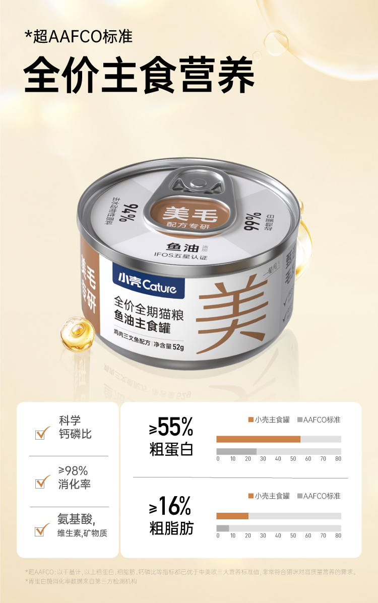 小轻松猫用鱼油主食罐·功能美毛罐(52g*12罐/盒)全价主食 多维滋养毛发