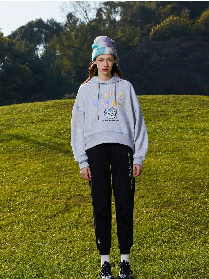 TeenieWeenie小熊春夏新款刺绣字母短款韩版宽松显瘦连帽卫衣TTMW221102T