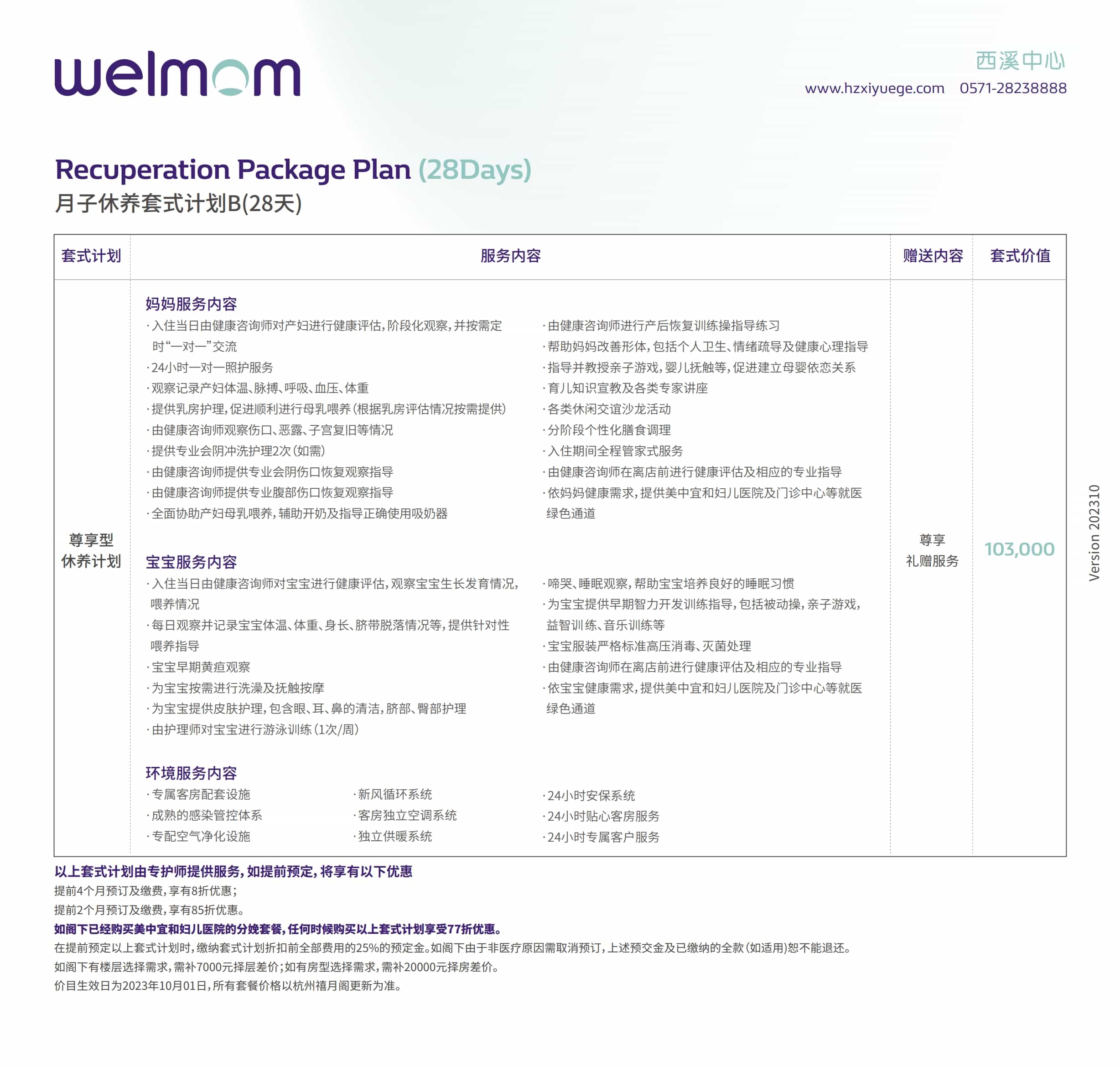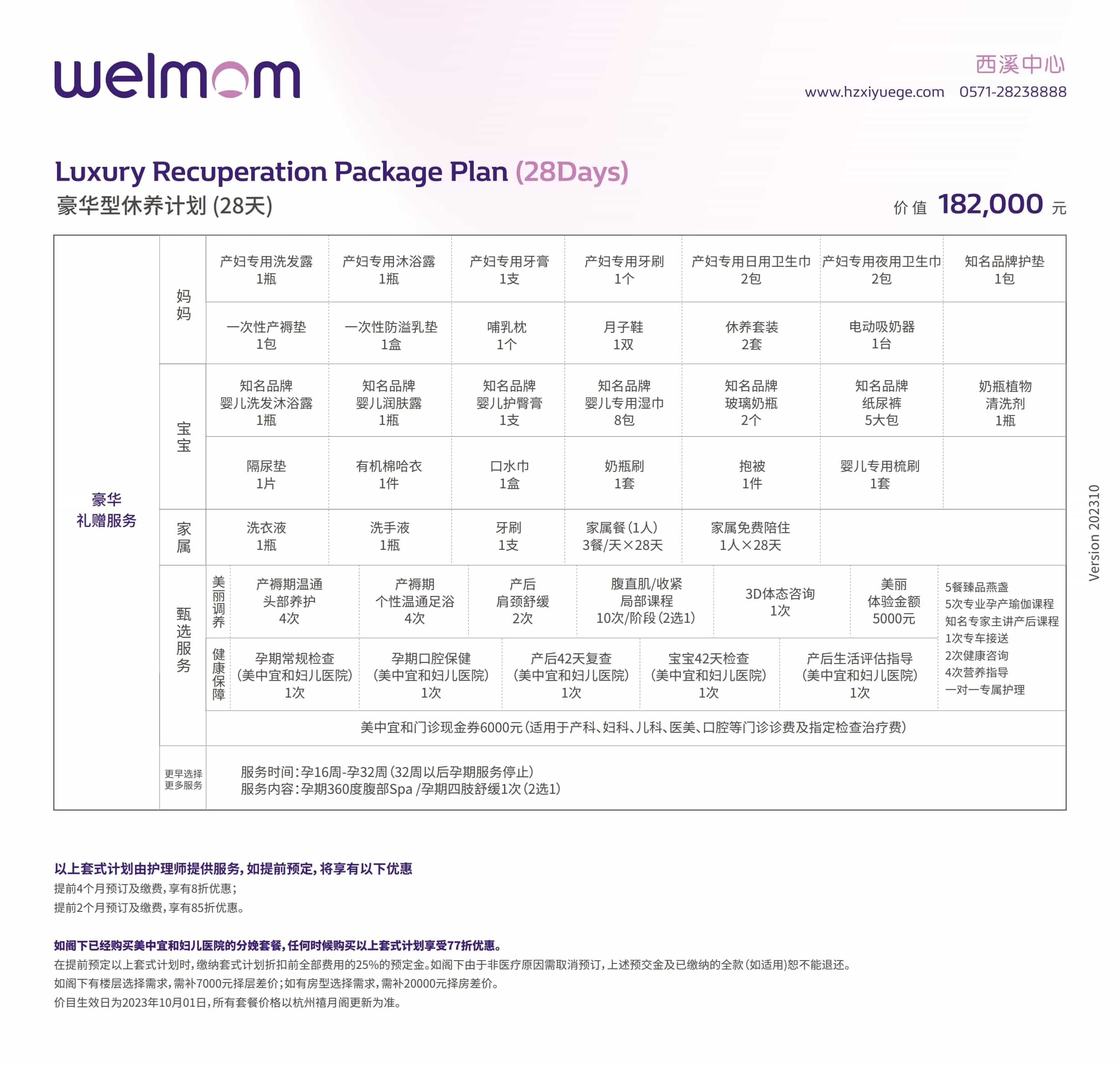 赠送:内购派首约禧月阁并签约赠送两次产后子宫复旧产康项目(价值1360元)