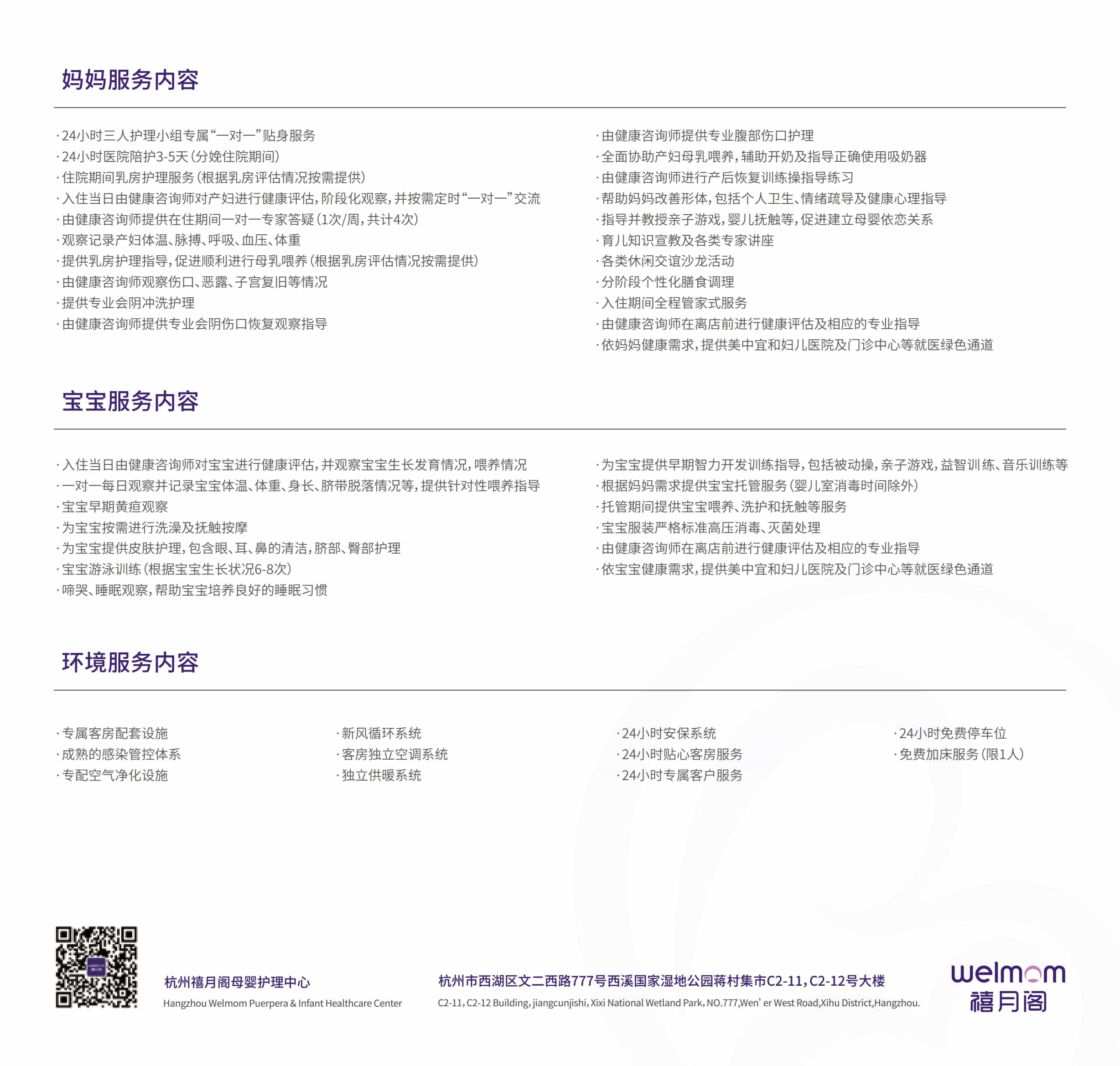 禧月阁以专业医护团队以及全方位、一站式的产品服务为母婴提供产褥期专业护理,帮助妈妈在月子期间享受科学的护理,得到身体、体形的修复、心理的抚慰;让宝宝得到精心细致的哺育、早教智力开发,帮助家庭安心度过月子假期。