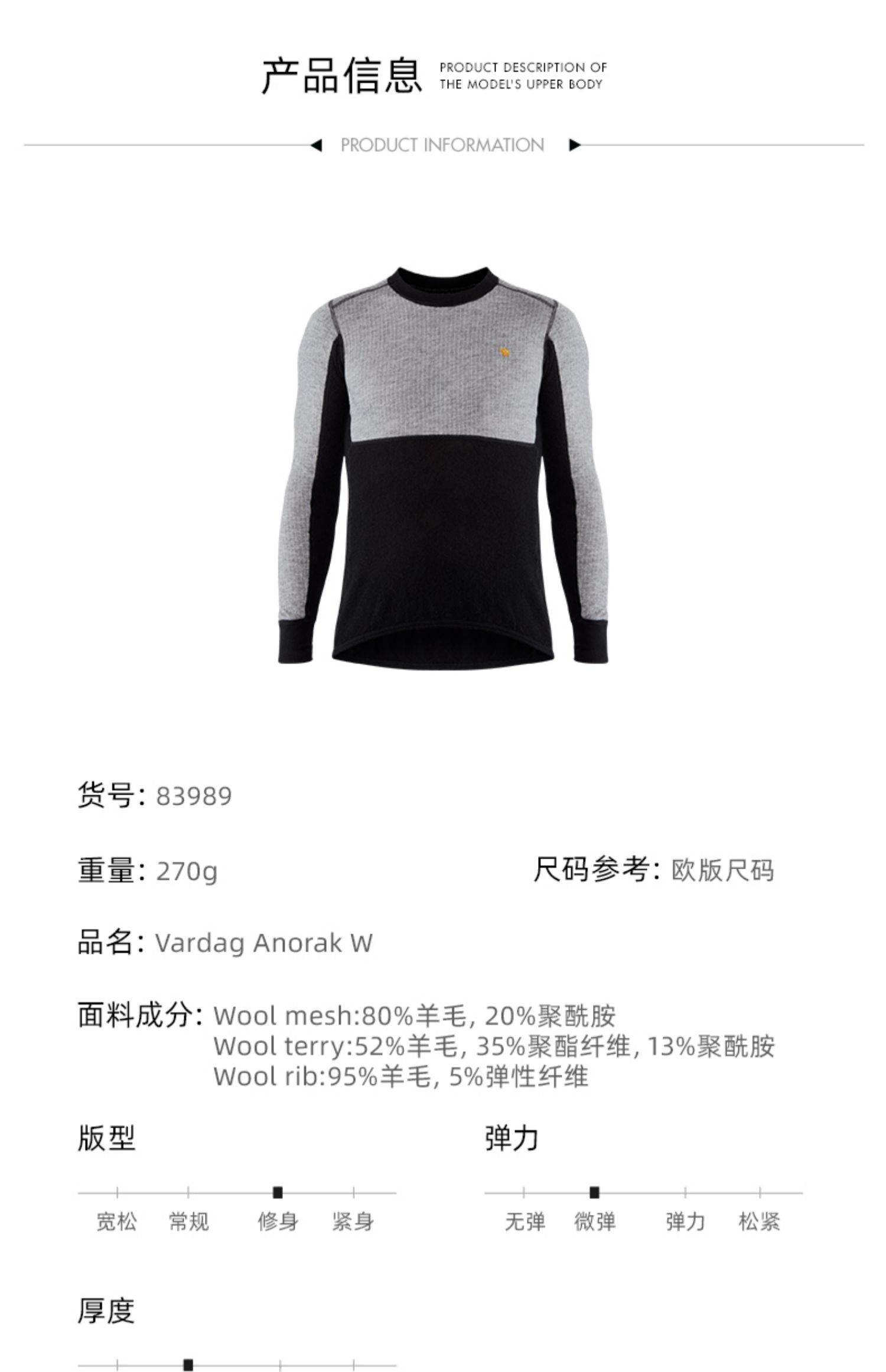北极狐新款保暖羊毛衫内衣长袖男贴身户外露营柔软舒适吸汗 83989