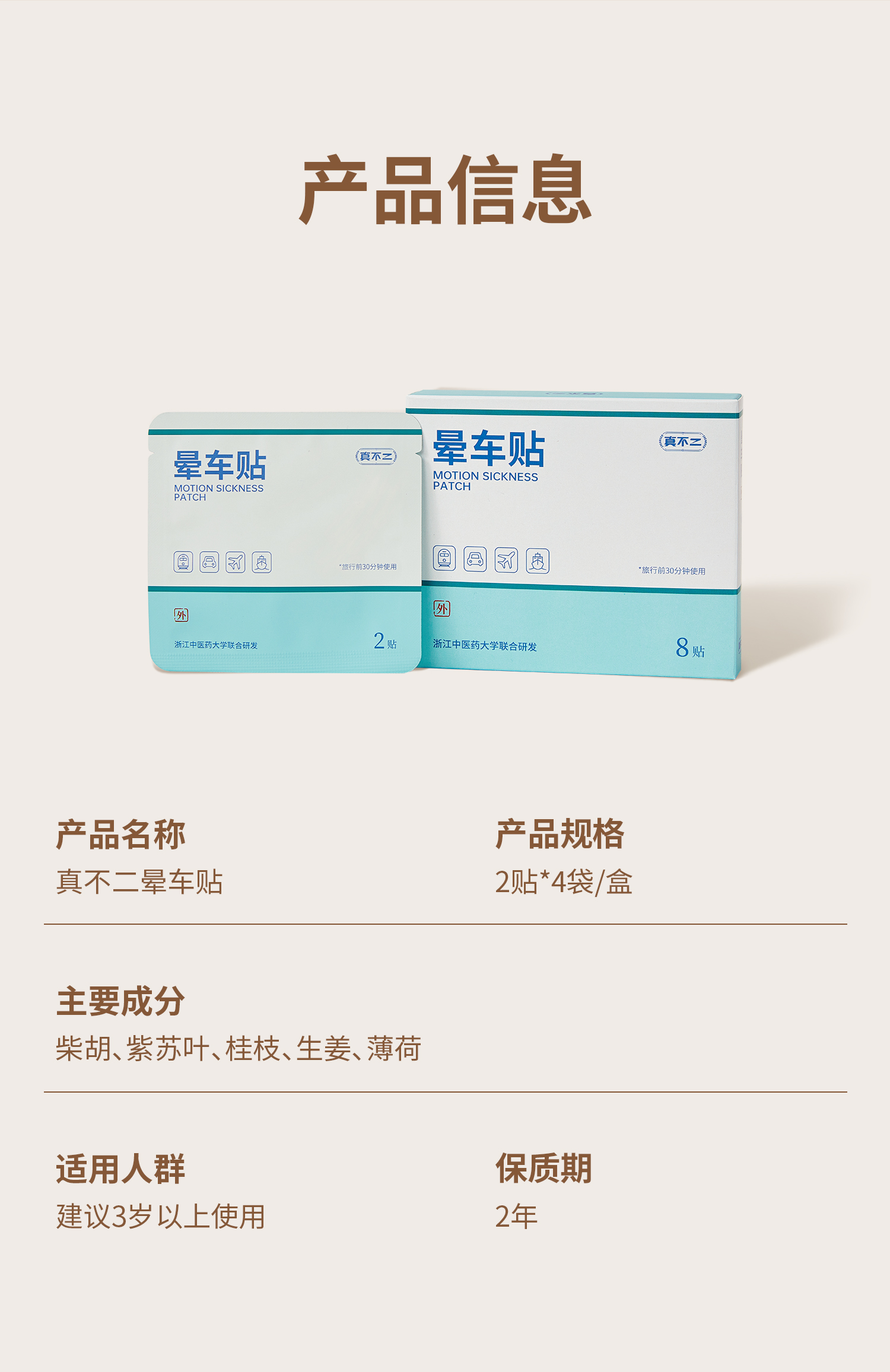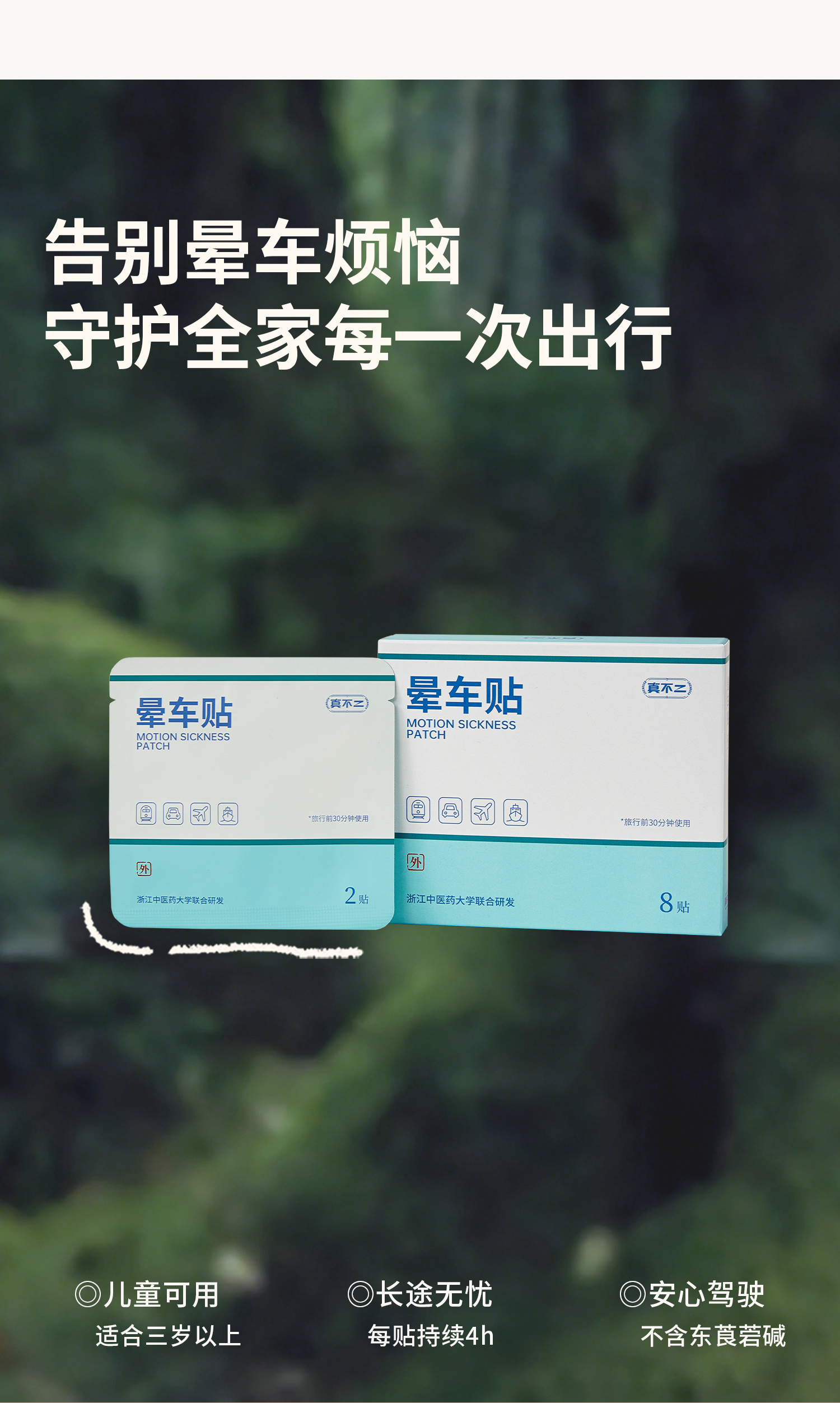 【真不二】儿童晕车贴草本穴位贴调理成人儿童耳后贴 8贴/盒 (3岁及以上可用)