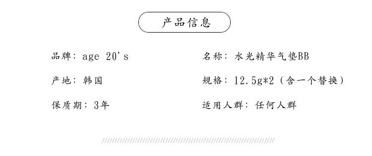 【韩国AGE 20'S爱敬气垫】BB白色粉色#13/#21/#23 双芯替换装 让你的肌肤水润无暇