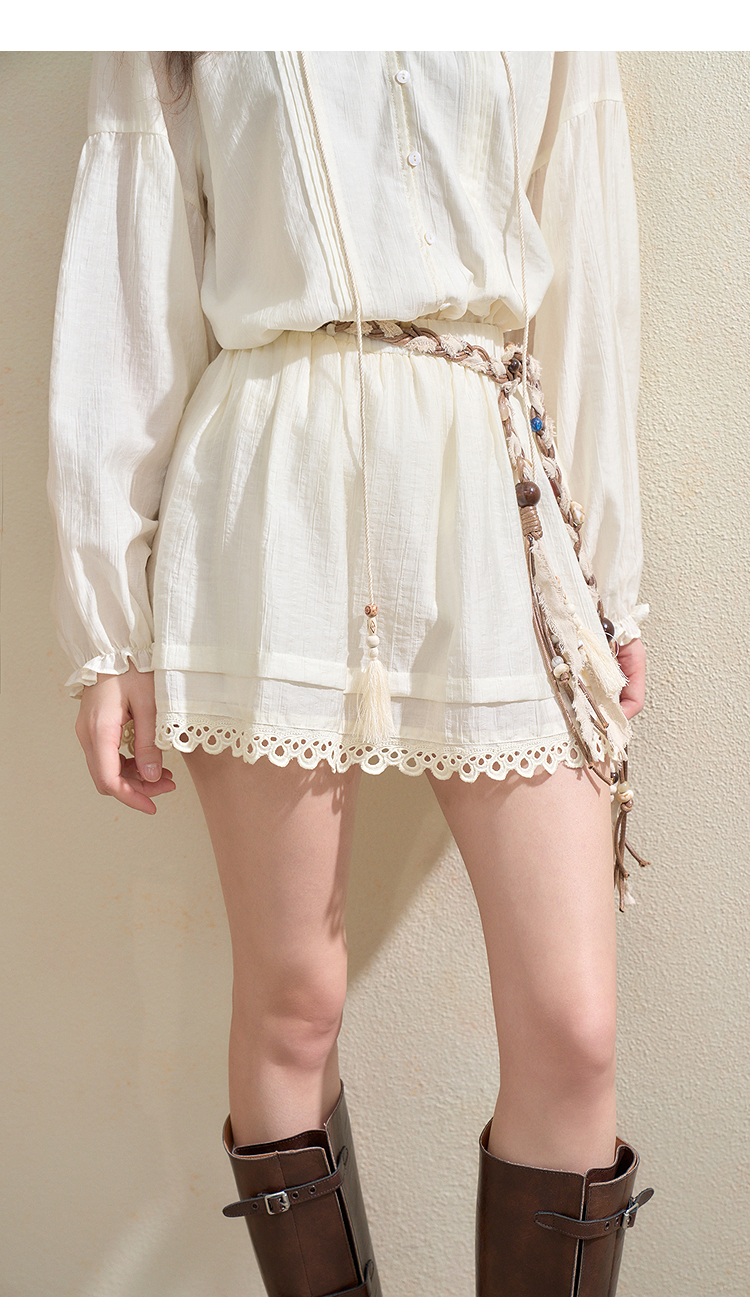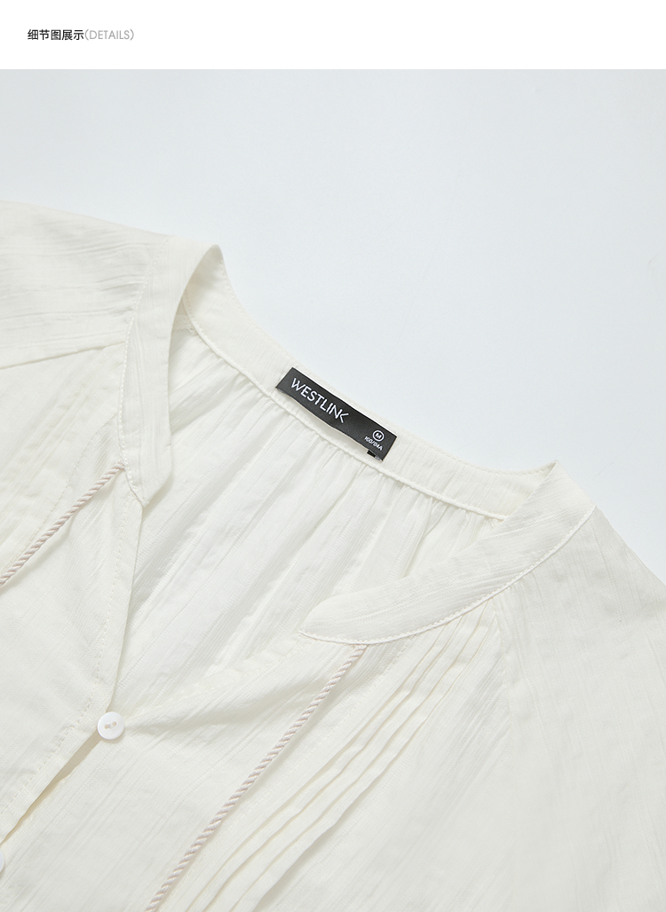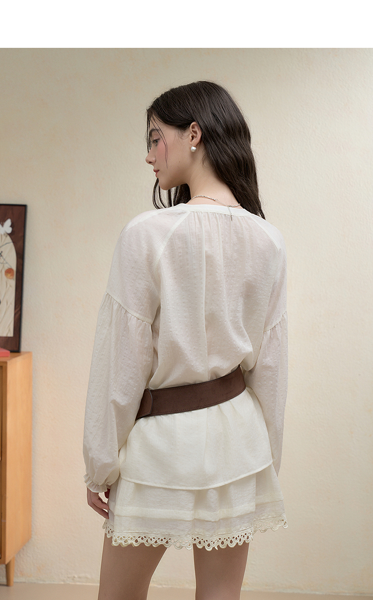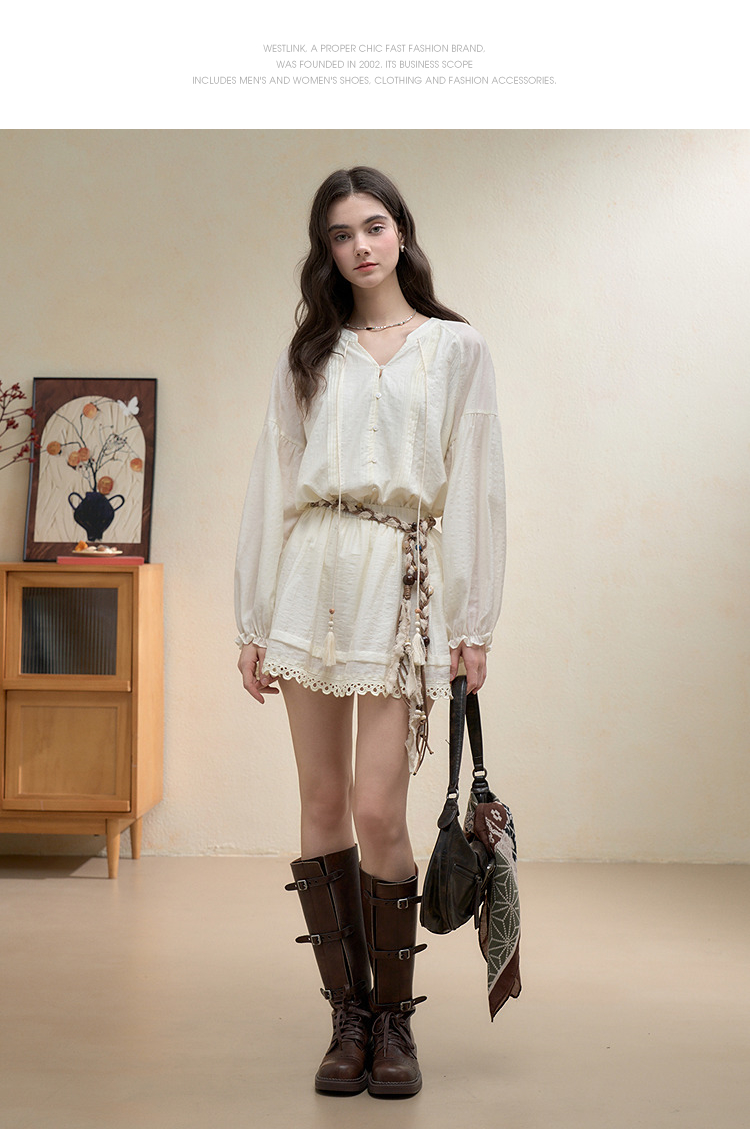 西遇莱赛尔文艺休闲套装女秋季V领长袖衬衫搭半身裙两件套V2551110