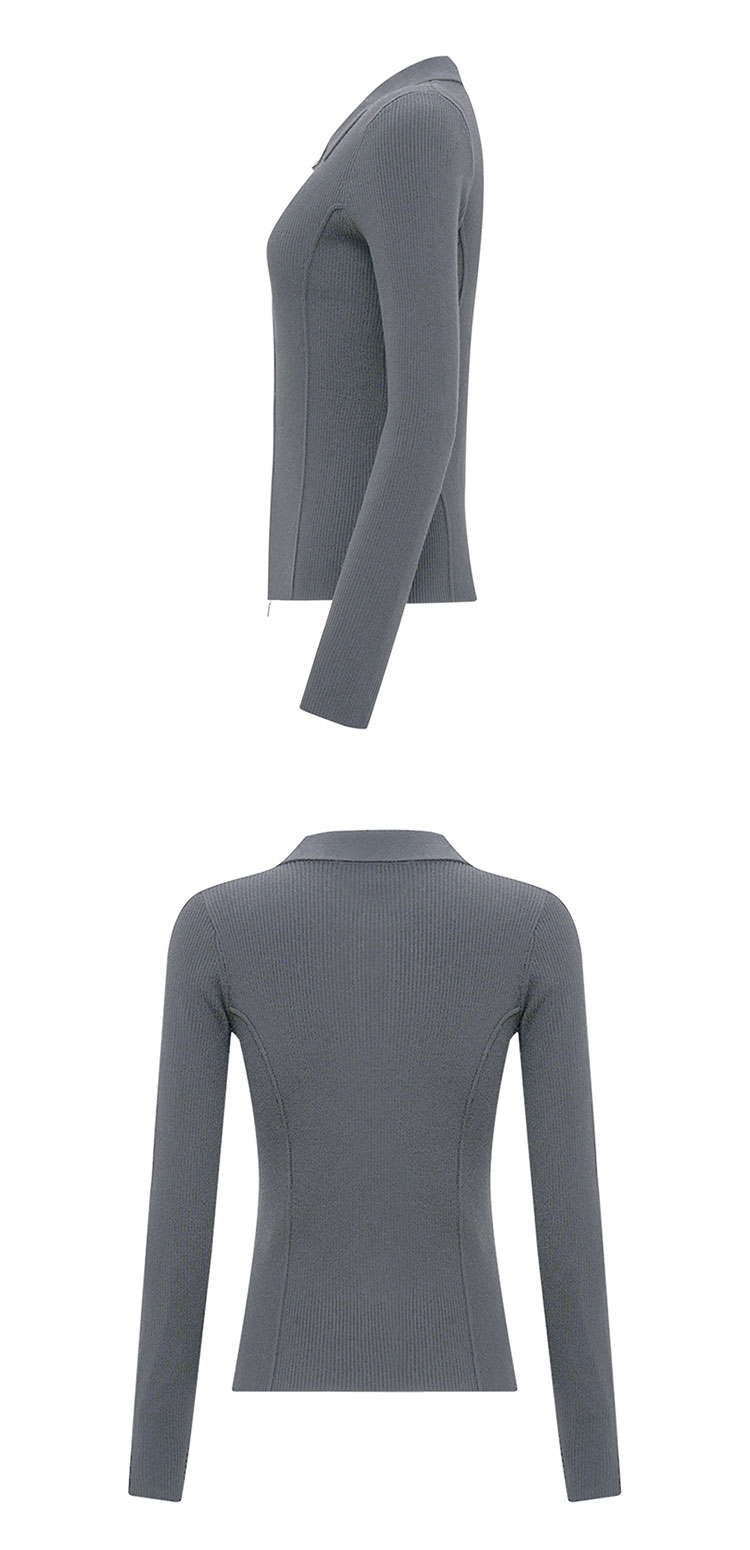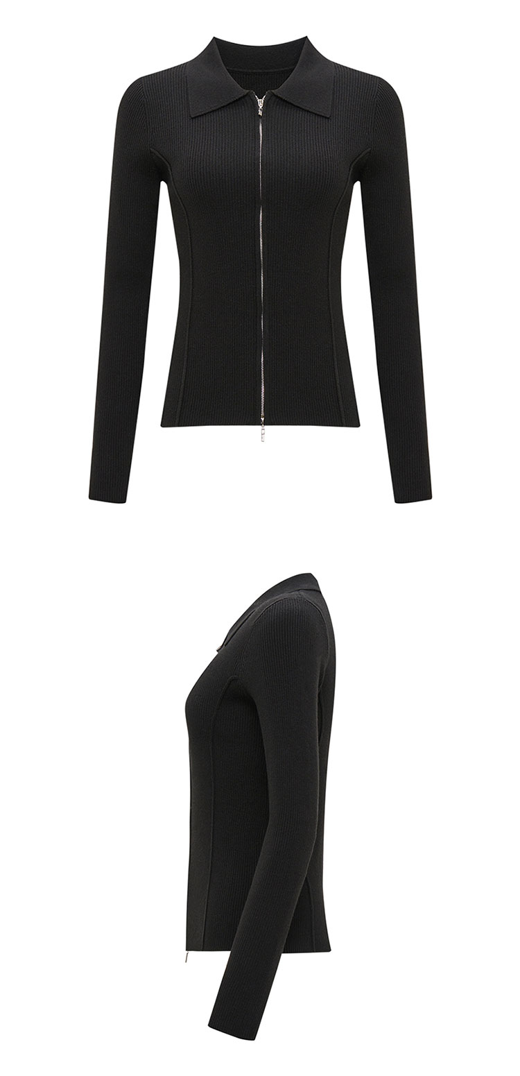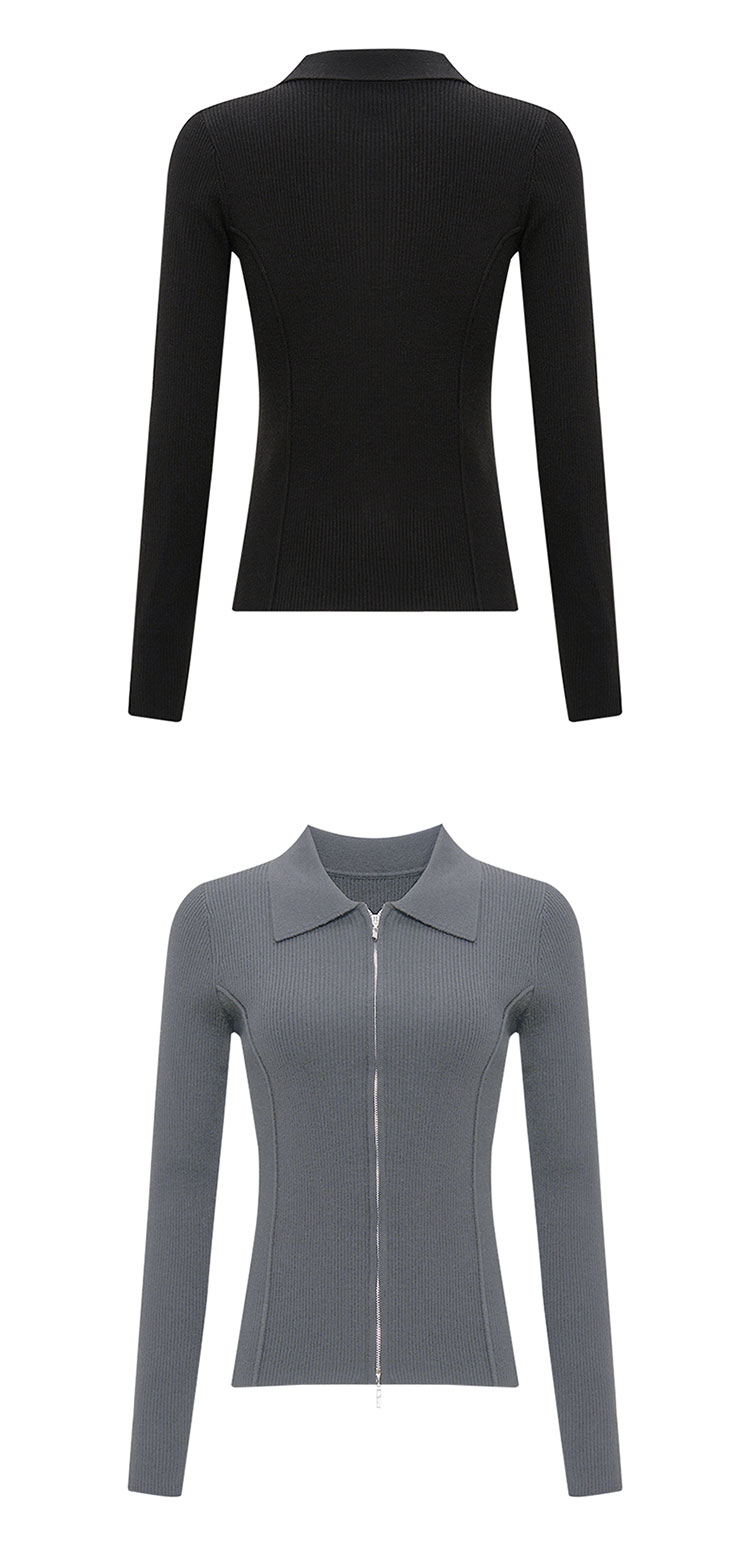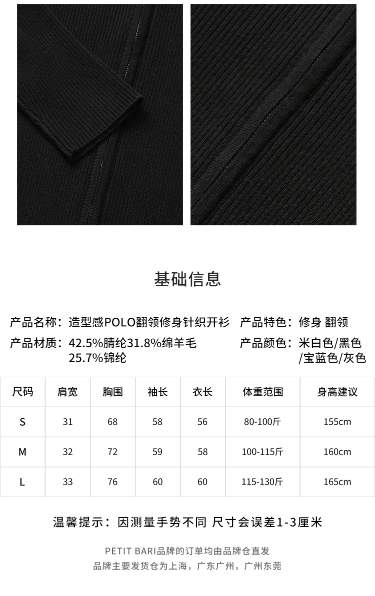 【2件9折】【Petit Bari】(多色)造型感polo翻领修身针织开衫