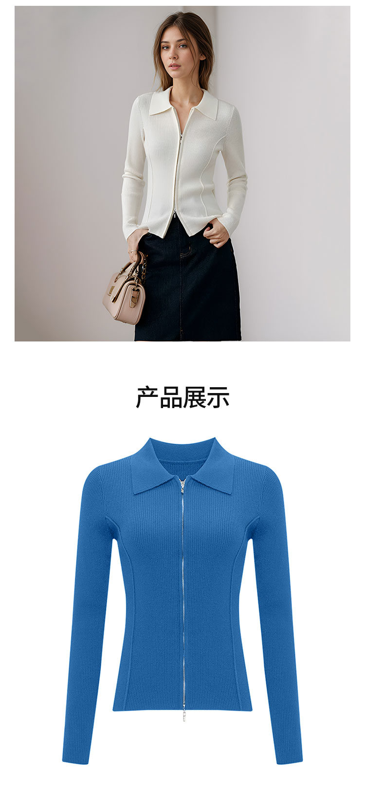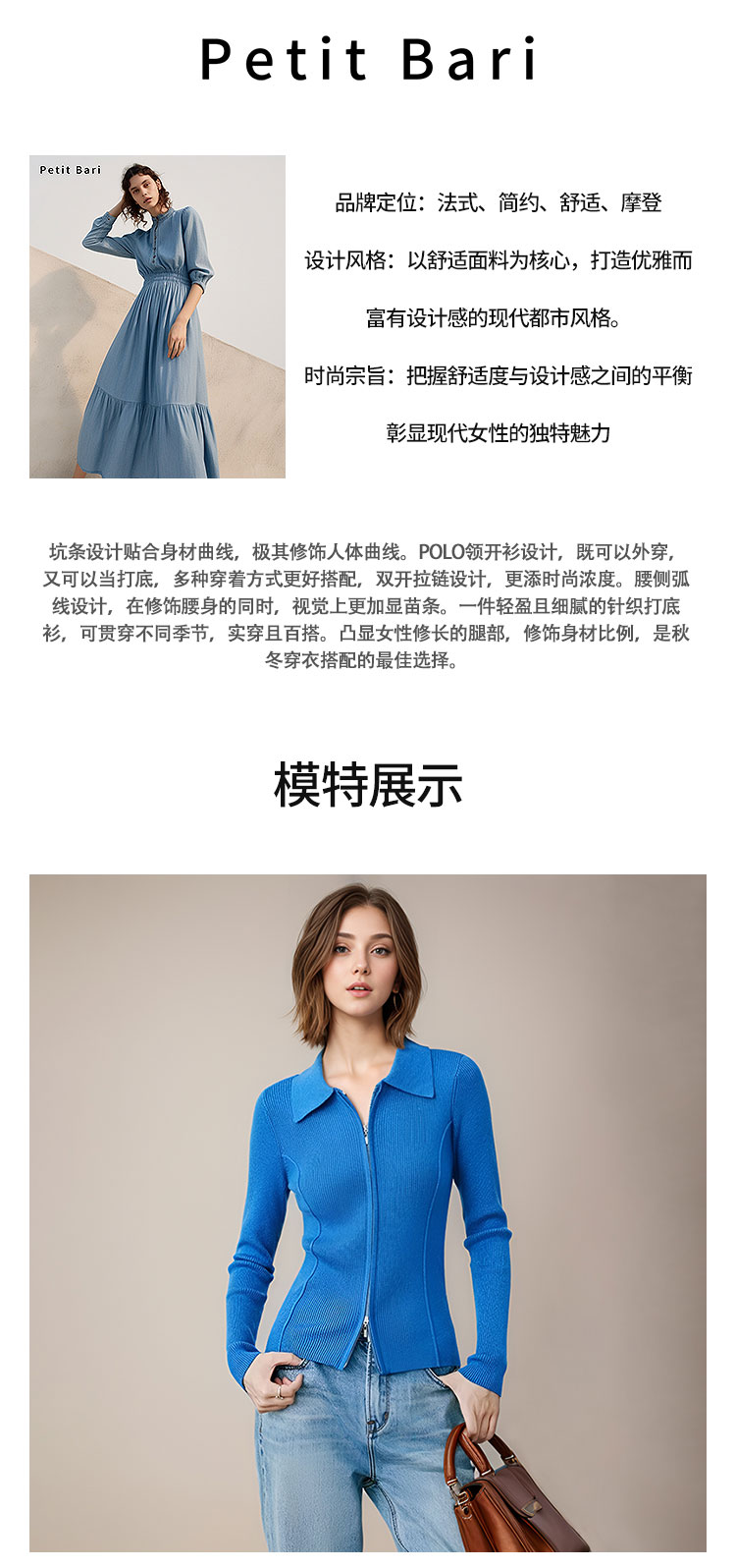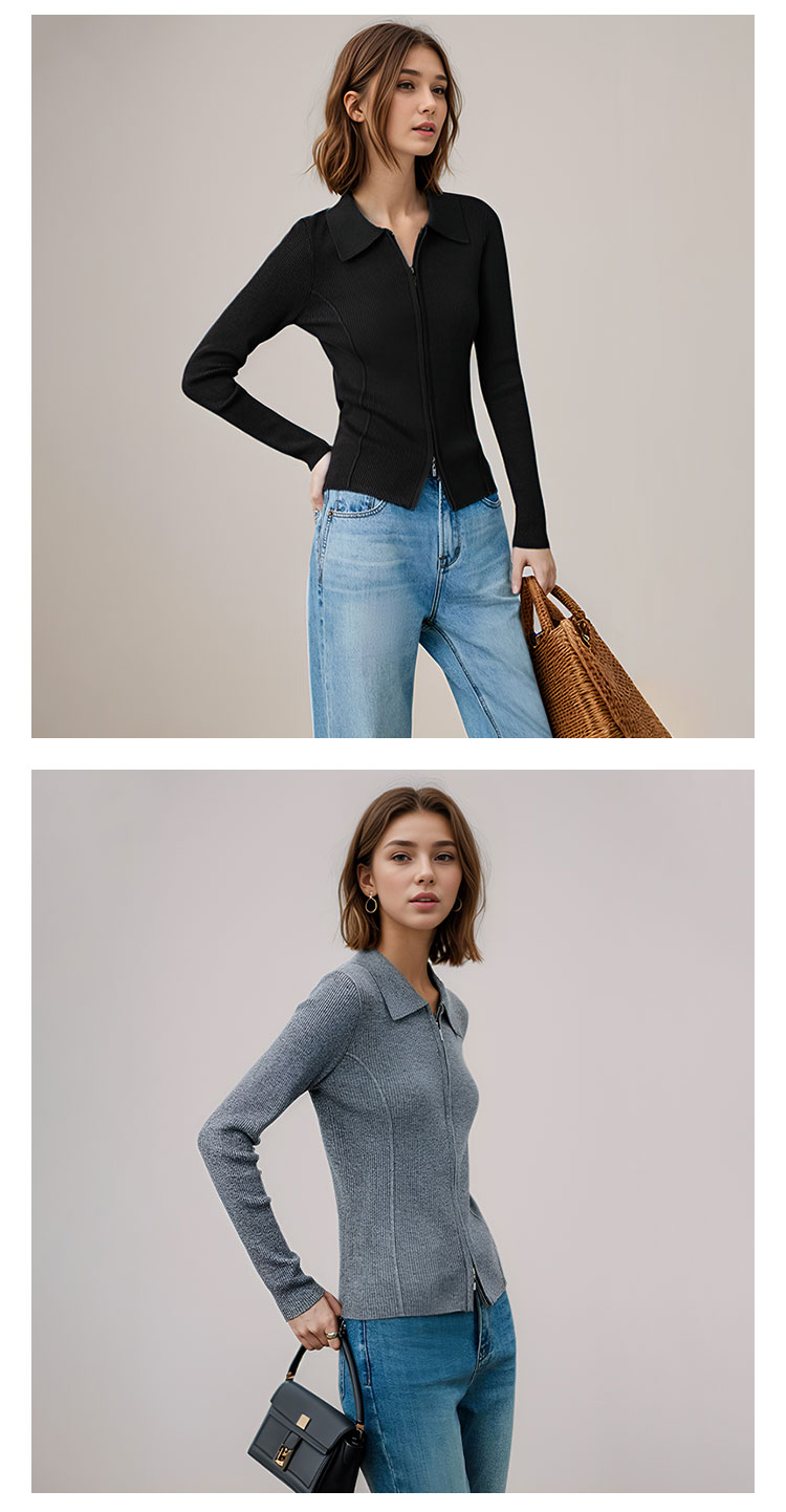 【2件9折】【Petit Bari】(多色)造型感polo翻领修身针织开衫