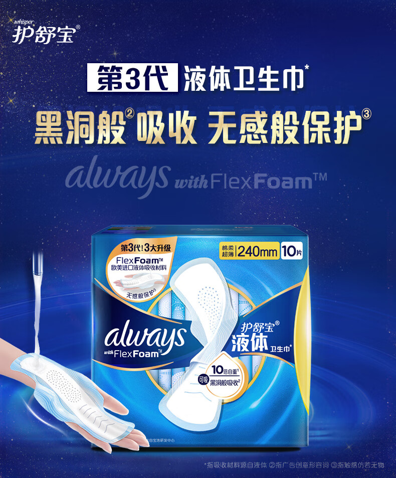 【自营】 护舒宝 未来感·极护液体 日/夜用 270mm 10片