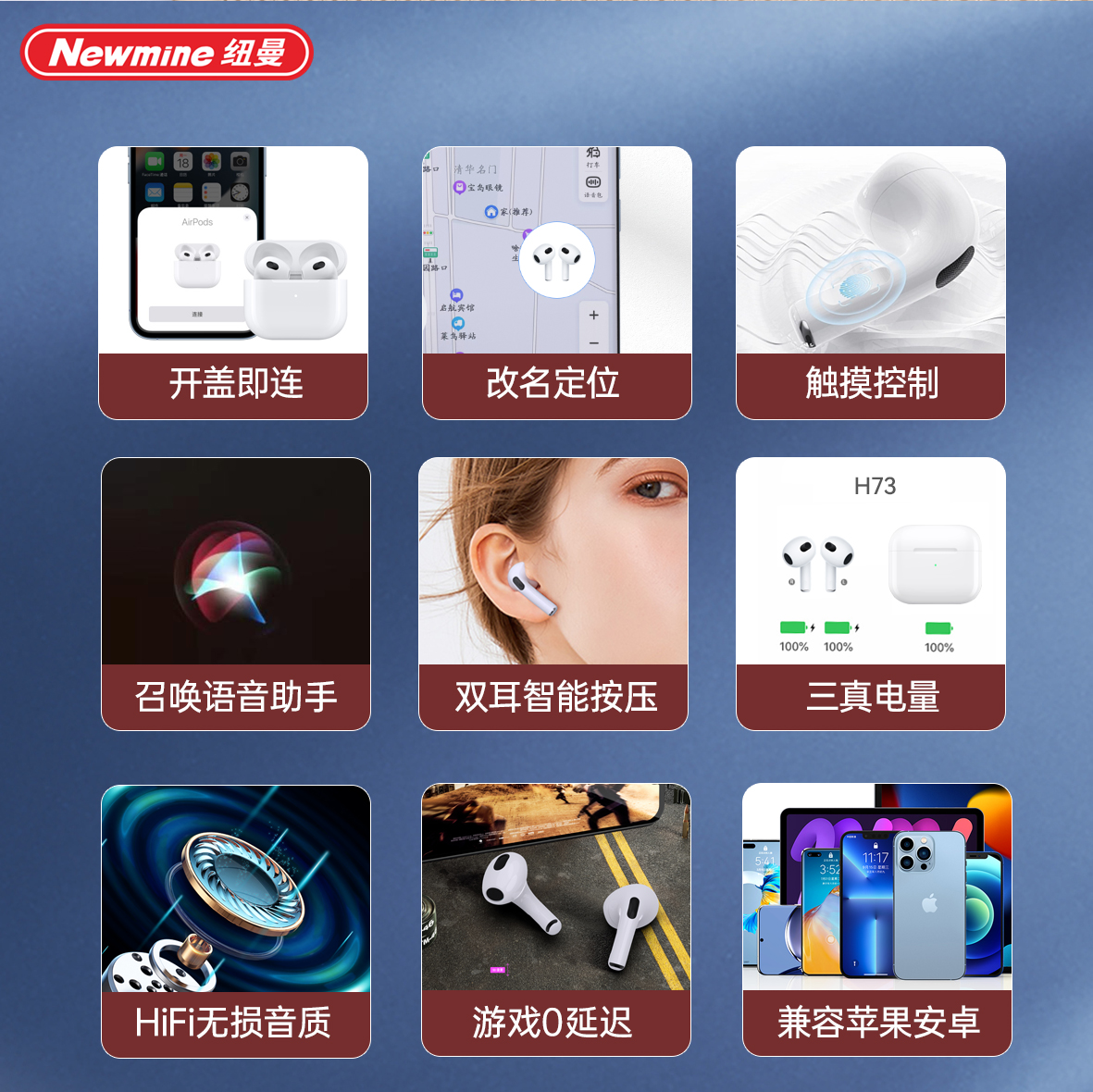 【自营】纽曼H73升级款三代真无线双蓝牙耳机 H73