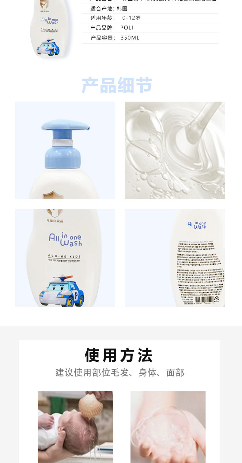 【中欧班列】韩国我珂爱婴幼儿洁面洗发沐浴合一 原装进口婴宝宝洗发水洗护湿清洁温和无刺激 350ml/瓶WHBX