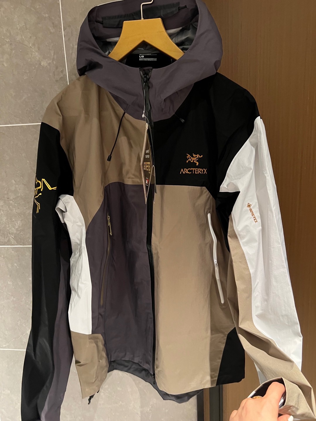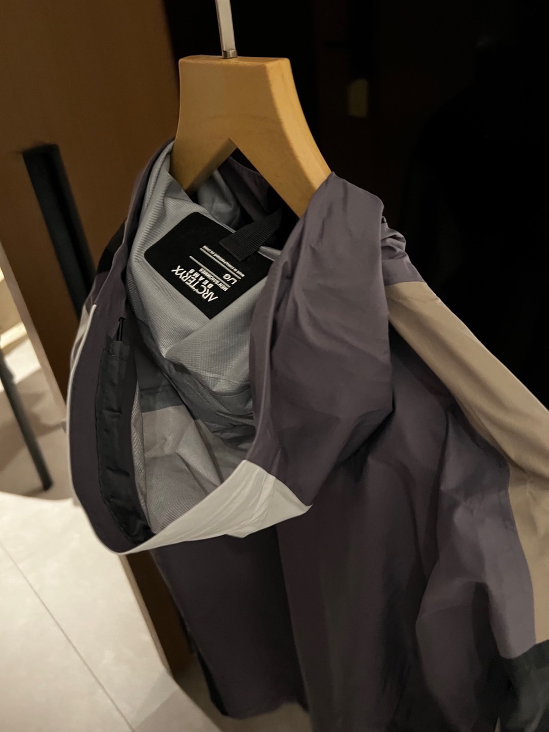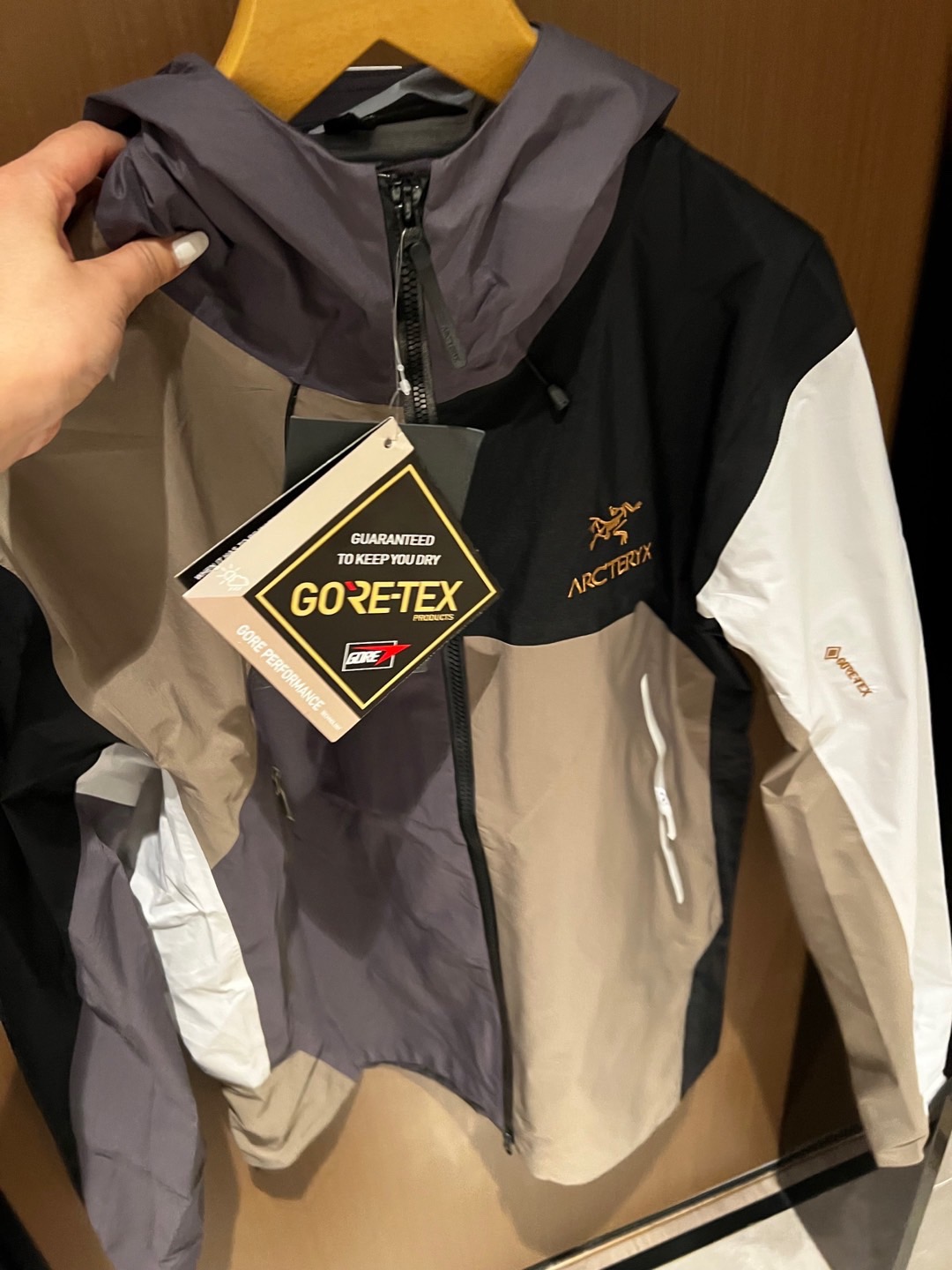 同样也是防水面料。面料不是那种硬板板的,很软,但不是那种软塌塌的,其中经典BETAJACKET采用GORE-TEX面料,并且搭载C-KNIT™背衬技术,在强大防水功能加持下,仍旧拥有出色的柔软度及透气性。