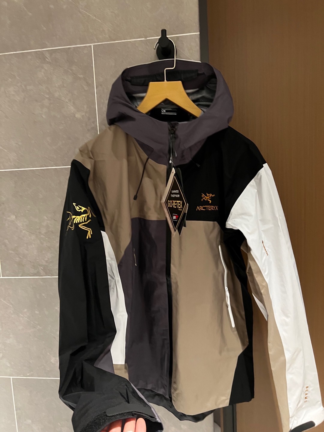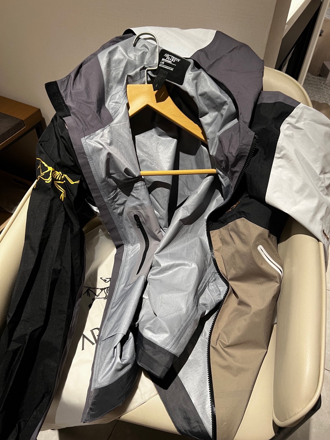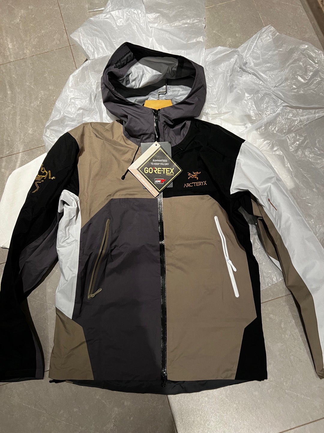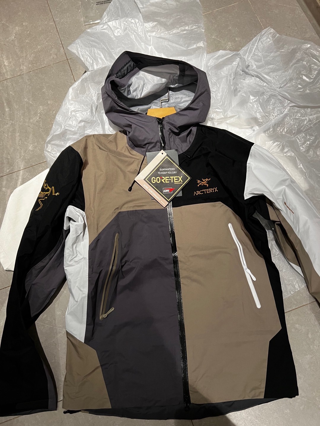 同样也是防水面料。面料不是那种硬板板的,很软,但不是那种软塌塌的,其中经典BETAJACKET采用GORE-TEX面料,并且搭载C-KNIT™背衬技术,在强大防水功能加持下,仍旧拥有出色的柔软度及透气性。
