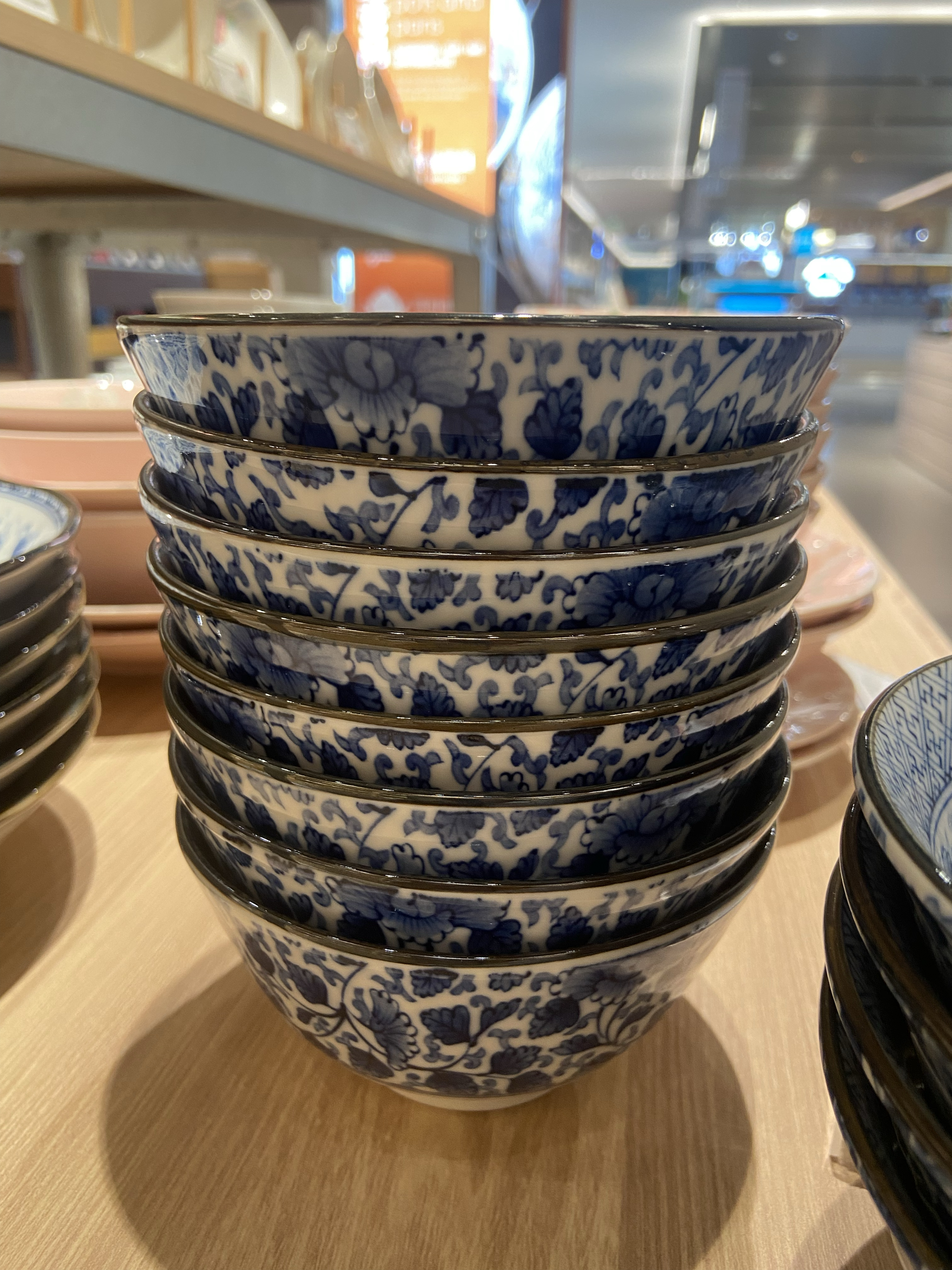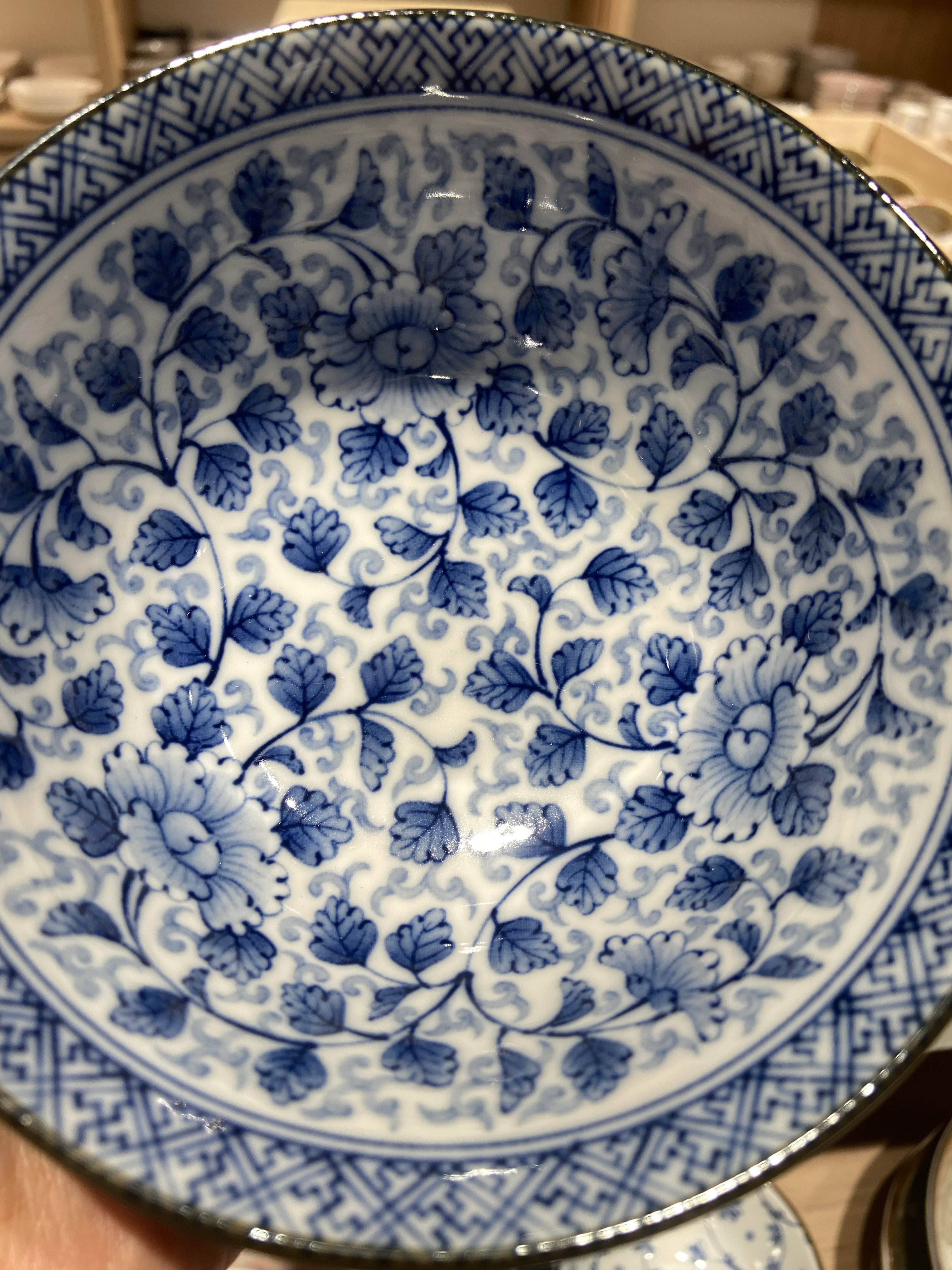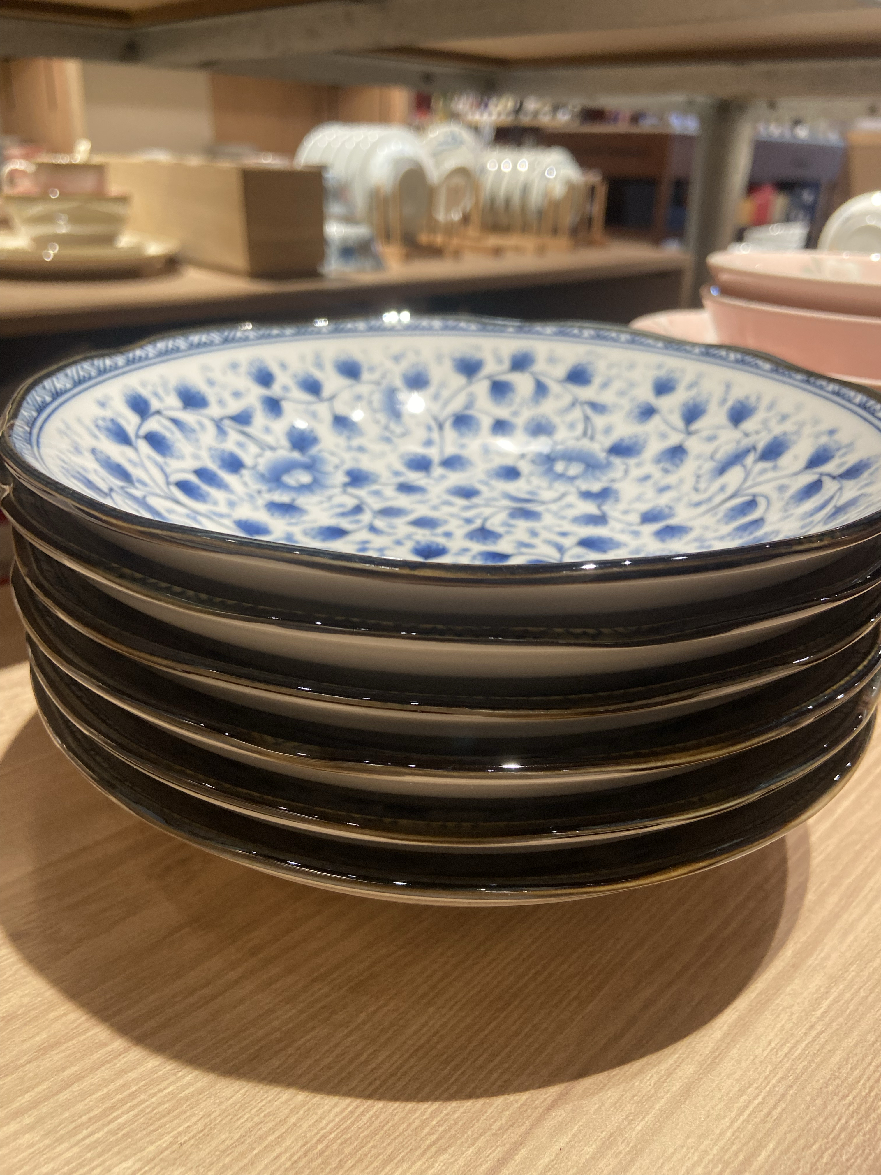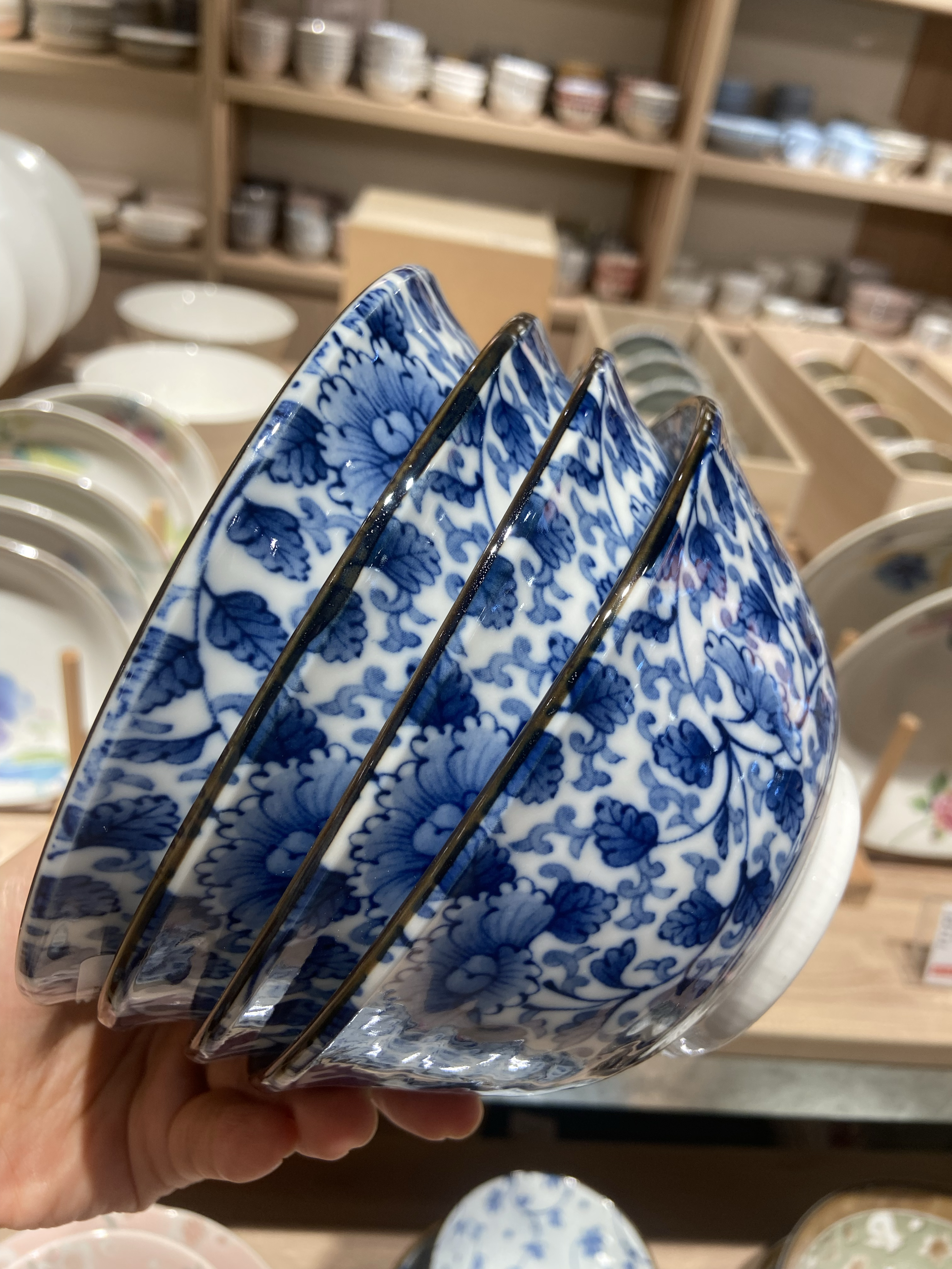 美浓烧蓝染牡丹6盘20.6*4.5cm 4面碗15*7cm 8饭碗13.2*6.8cm蓝染牡丹18件套【不支持补差,非质量问题不退不换】S