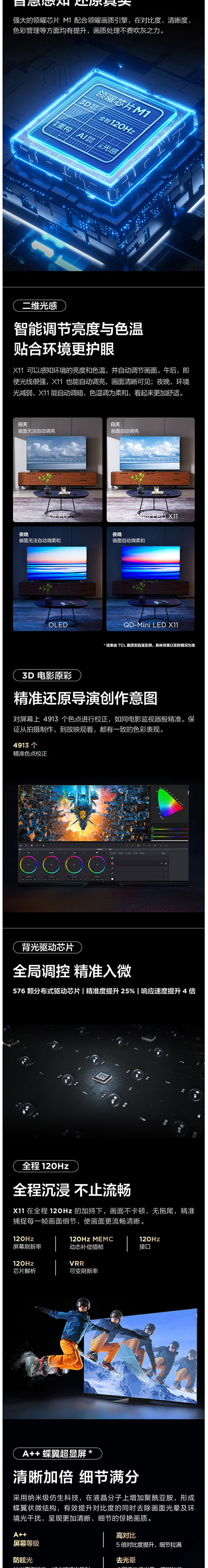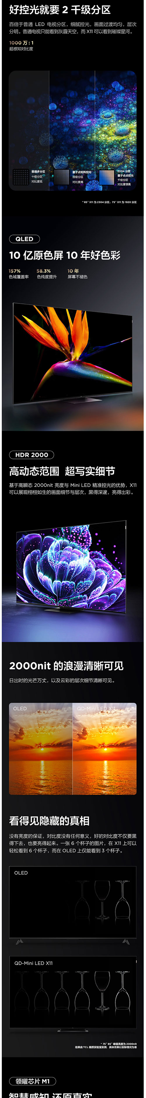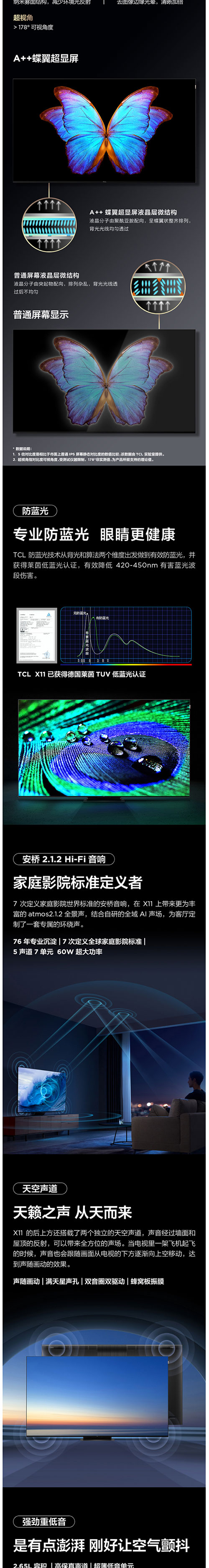 TCL电视 75X11 75英寸 QD-mini LED智能4K超清电视 AI声控智屏 标配摄像头 超薄全面屏 4+64GB液晶平板电视机