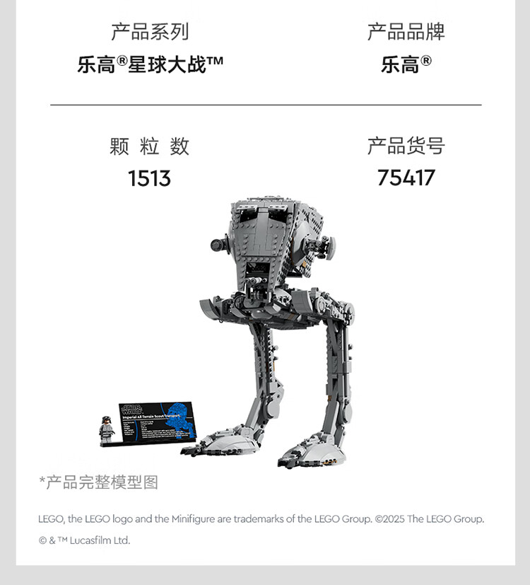 乐高积木 L75417 星球大战系列 AT-ST Walker 全地形侦察运输步行机