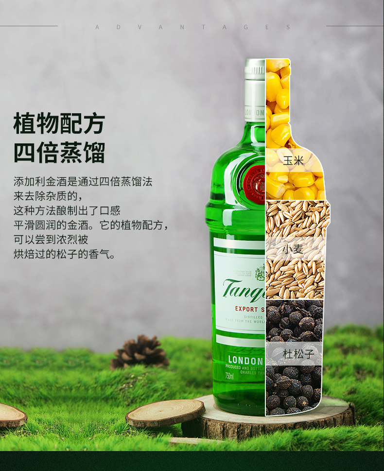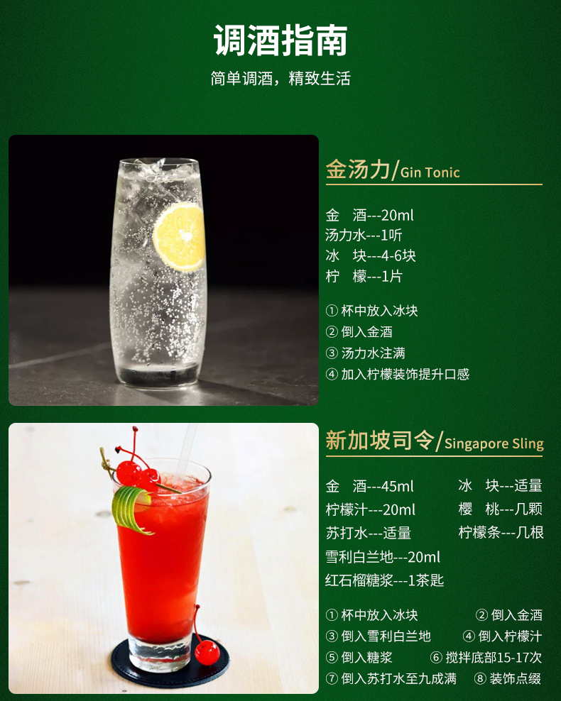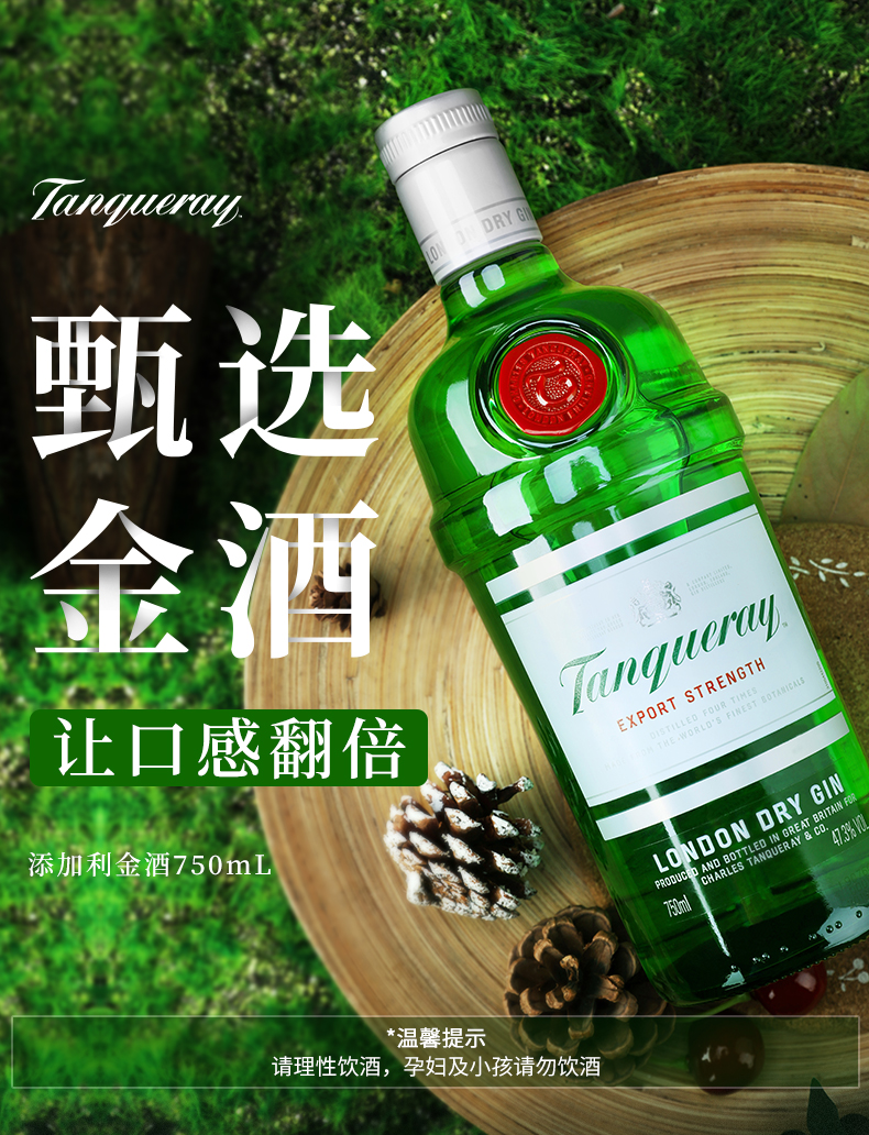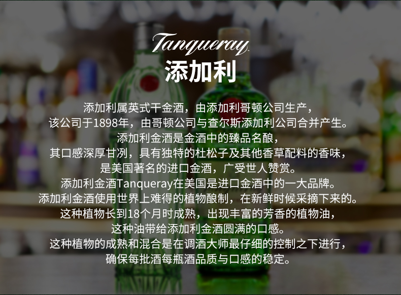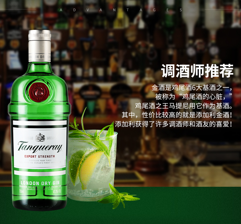 添加利金酒伦敦干金酒杜松子琴酒金汤力鸡尾酒调酒基酒