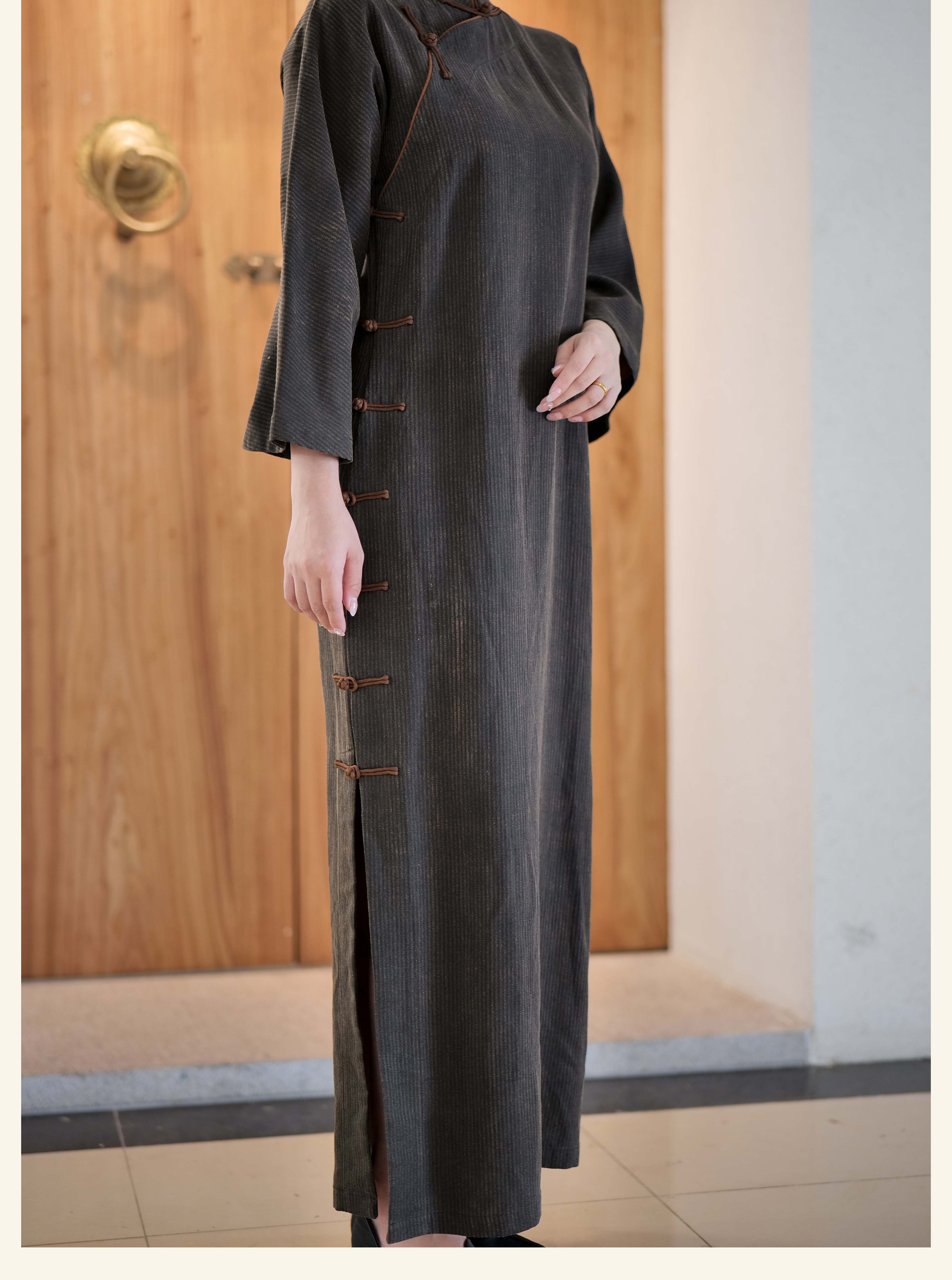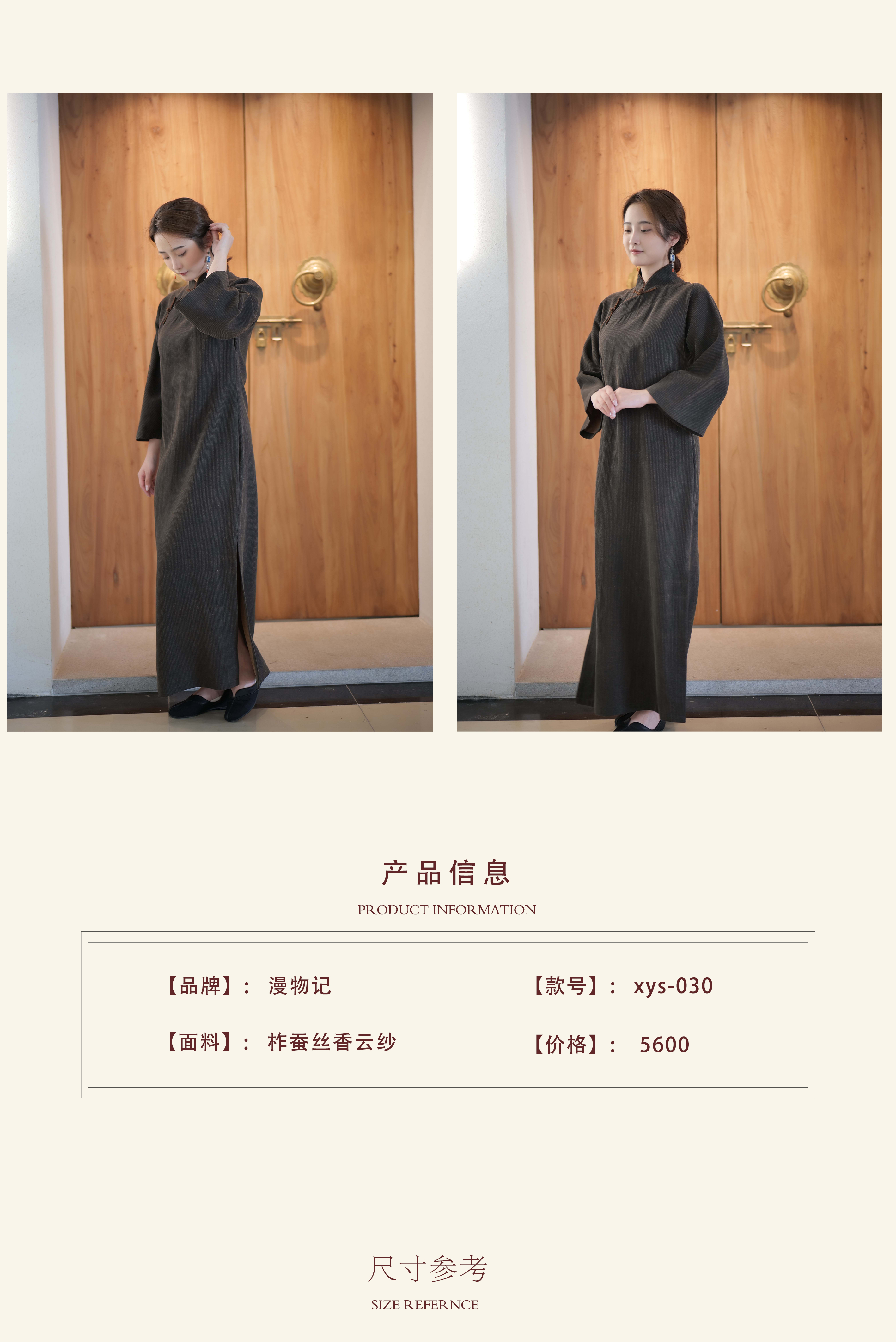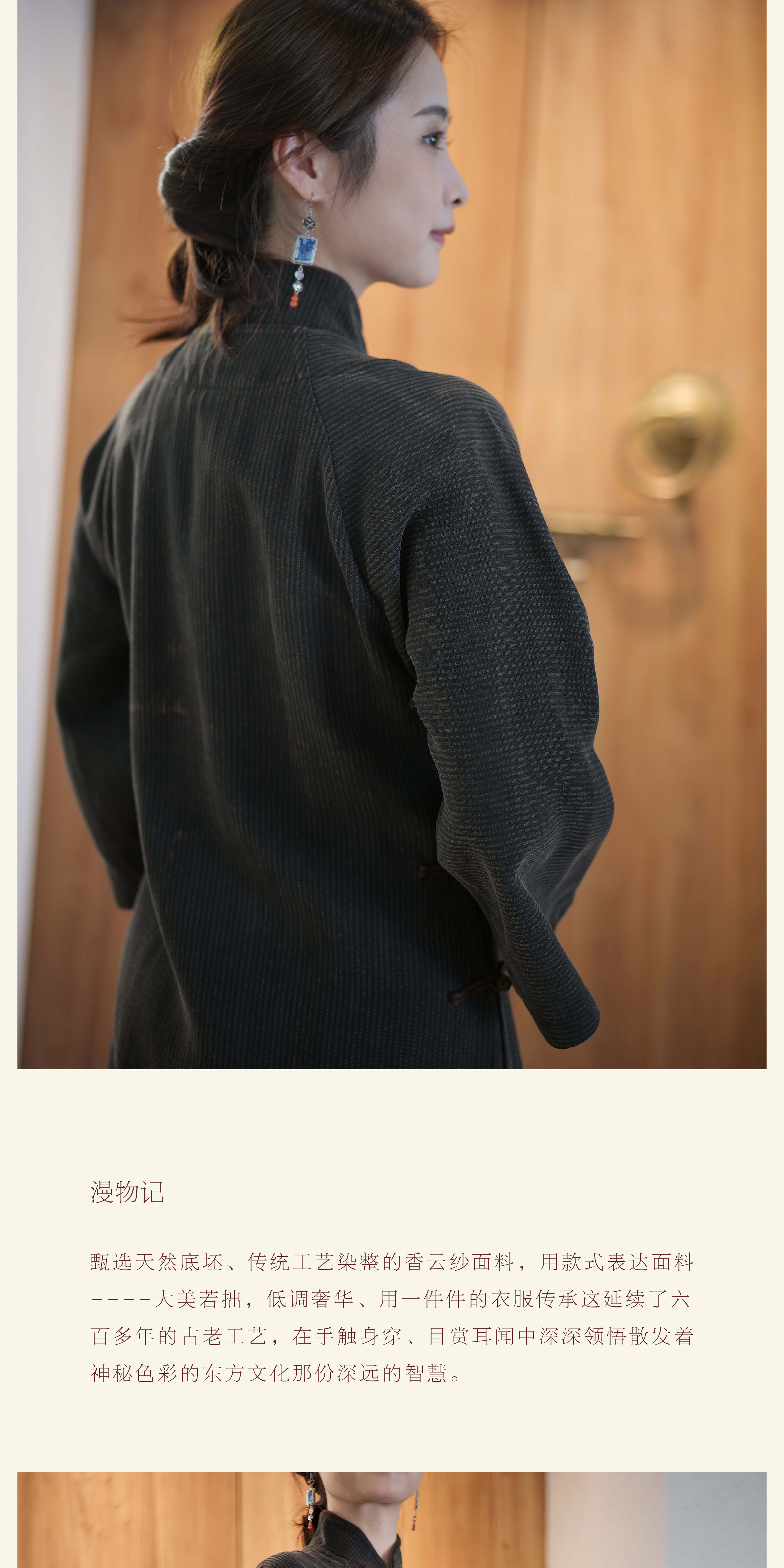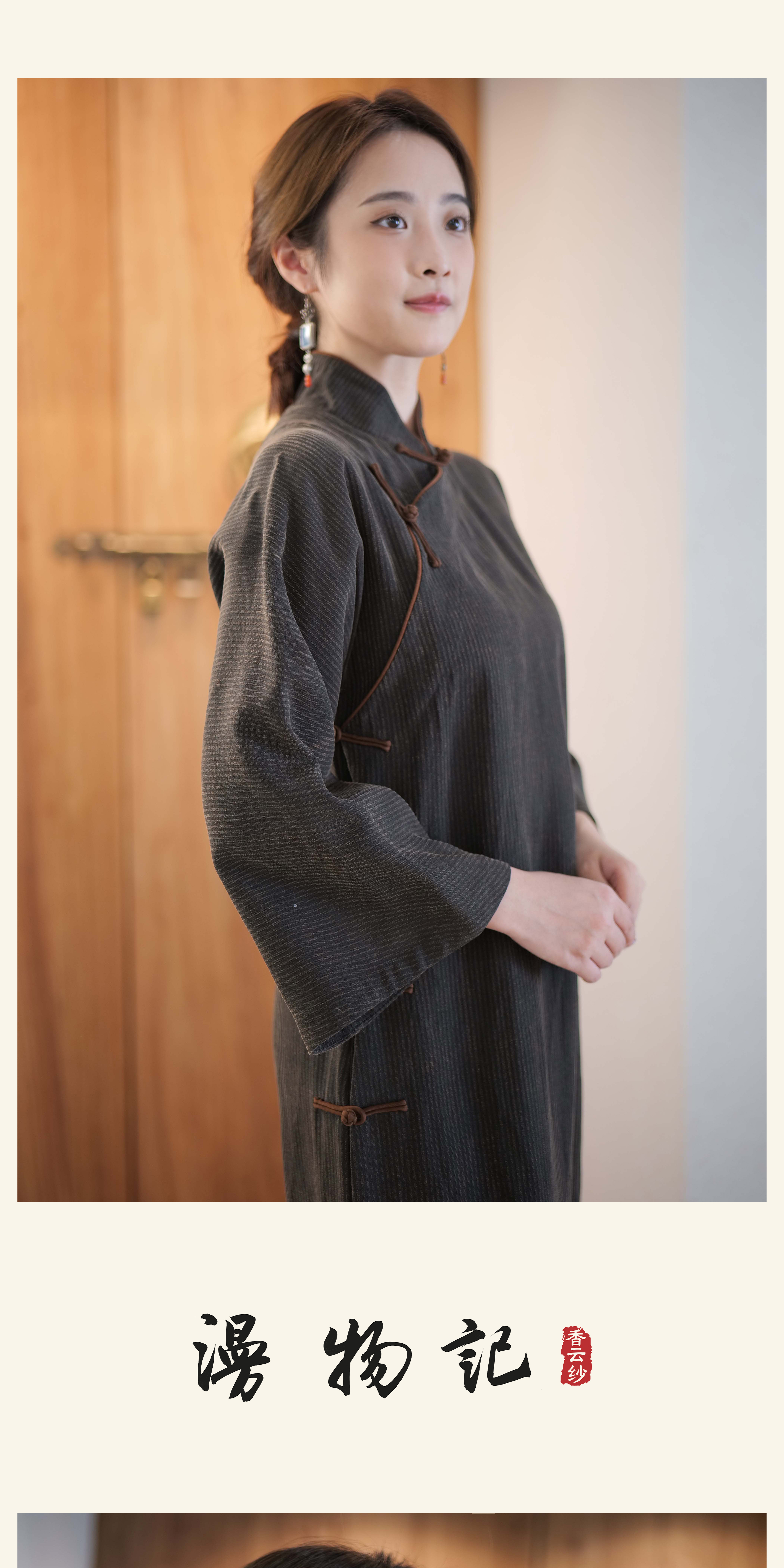 漫物记香云纱柞蚕丝喇叭袖连肩旗袍XYS-W030