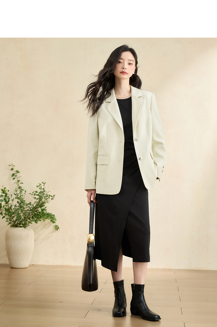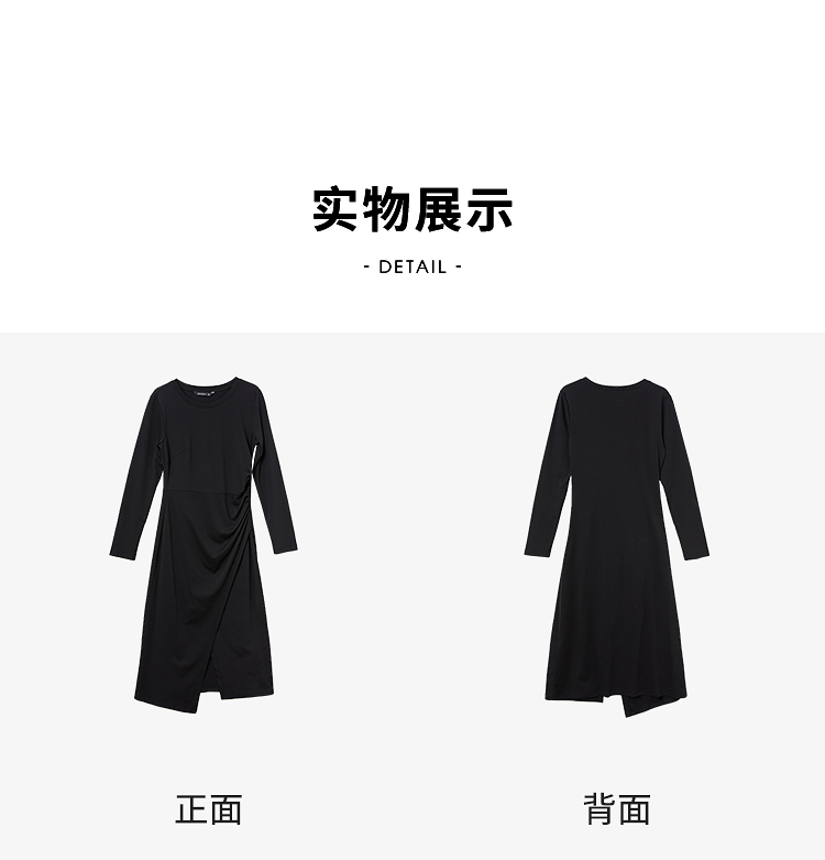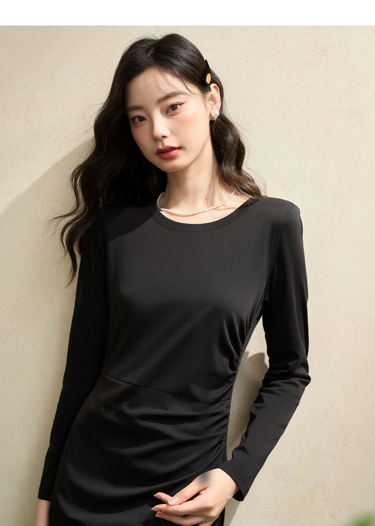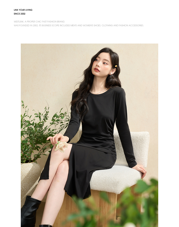 简约高级感开叉针织裙女秋季气质通勤褶皱收腰长袖连衣裙V3342208