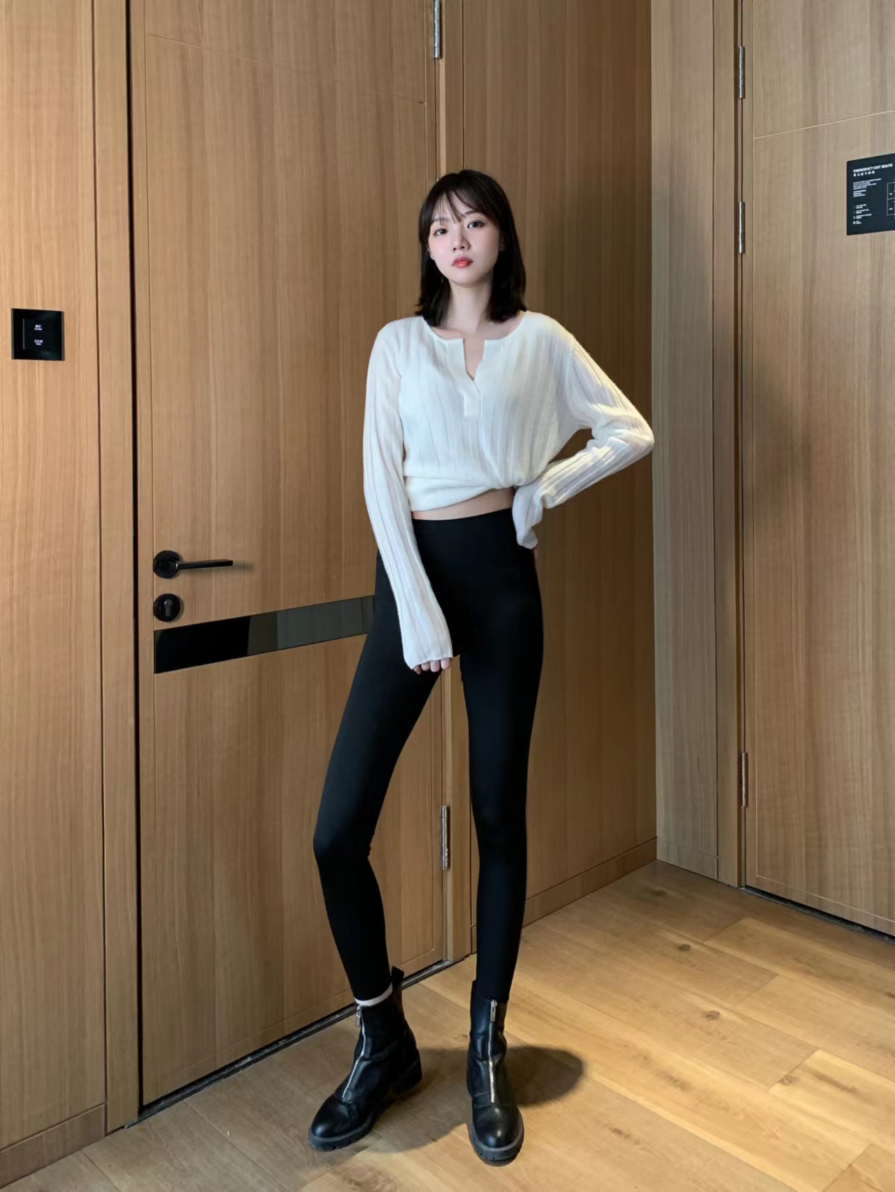 而且哑光的超级显腿细 拒绝反光 还有高腰收腹提臀功能 上身贴合 最好的打底裤