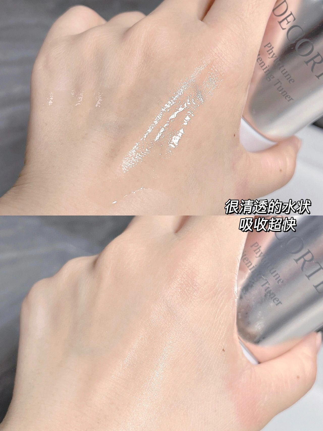 水的质地很清爽,乳液肤感偏滋润