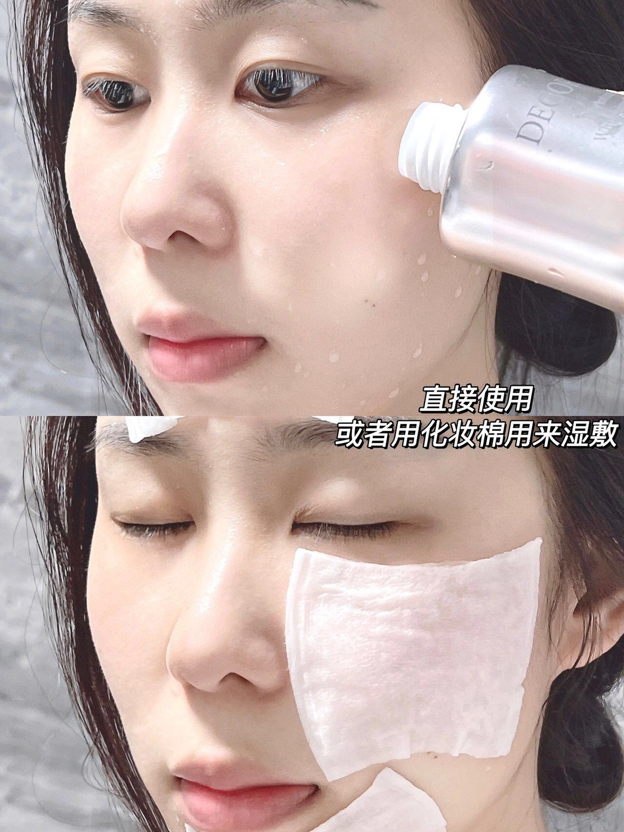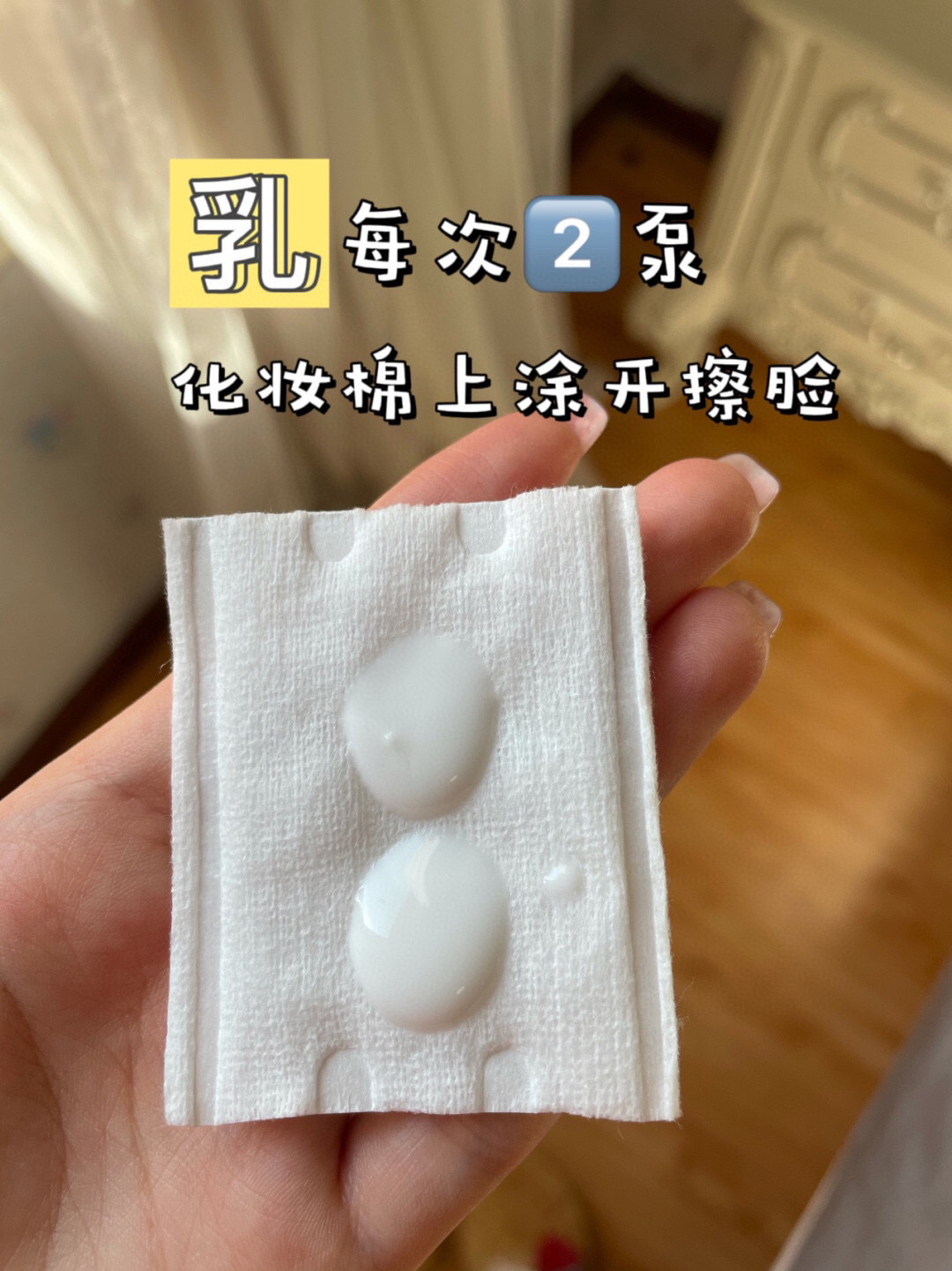 洗完脸后用先2泵乳液用化妆棉擦拭肌肤