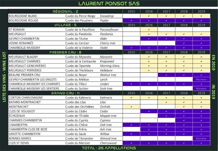 5)所有酒款都拥有自己的植物特酿名字,与之前Ponsot酒庄选用的动物和昆虫的命名区别开。名字中的植物都有其独特的个性和风骨,资深爱好者一眼就能看出庄主的酒评精髓,乃至对酒款的期望和偏爱;品鉴时若引发通感乃至共情,都是不可多得的感官体验。