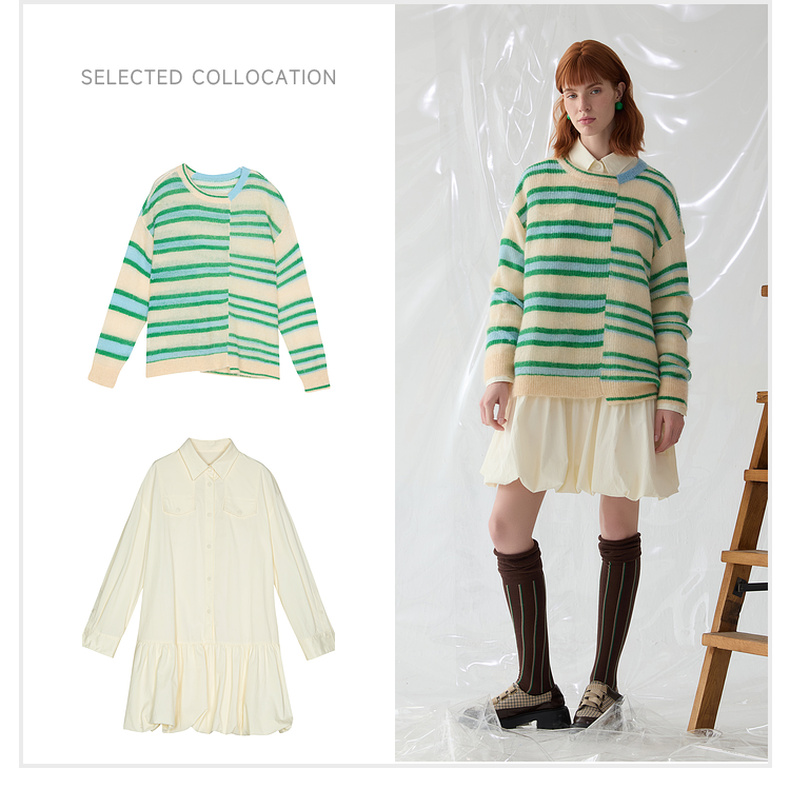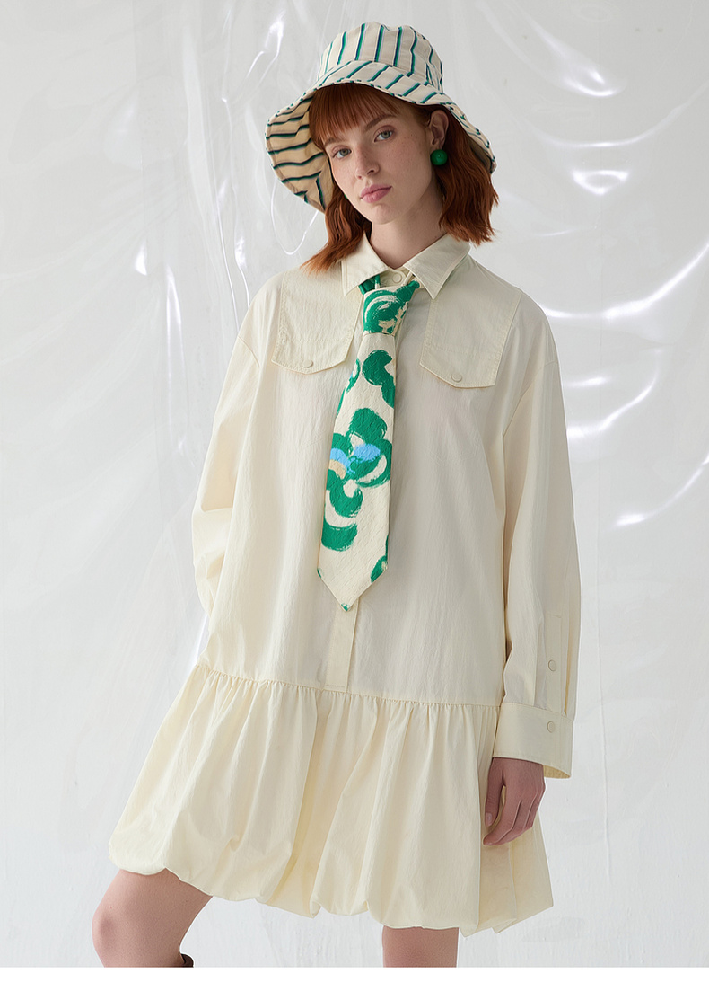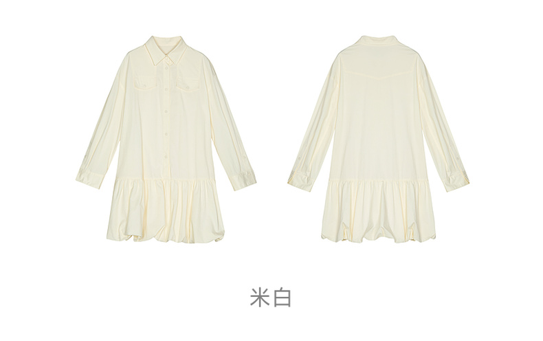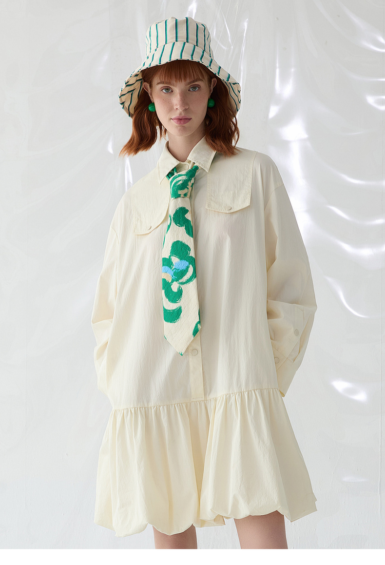 谜底衬衫式连衣裙2025春季新品挺阔A字型花苞裙长袖短裙251ML0121
