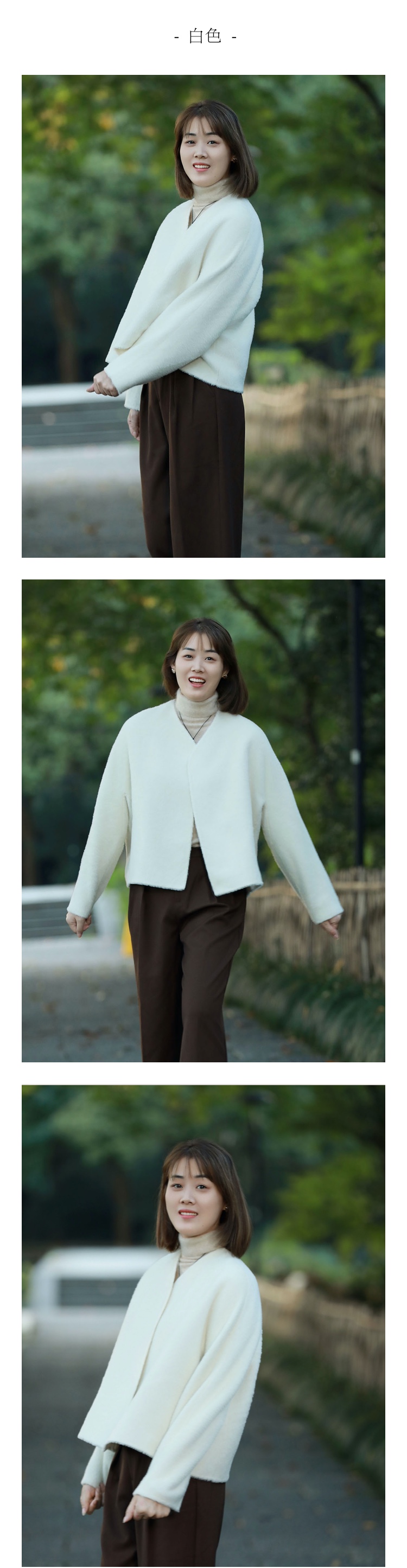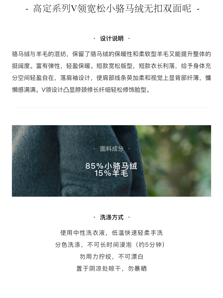 火桐hooton 新年战袍 V领宽松小骆马绒无扣双面呢大衣3383