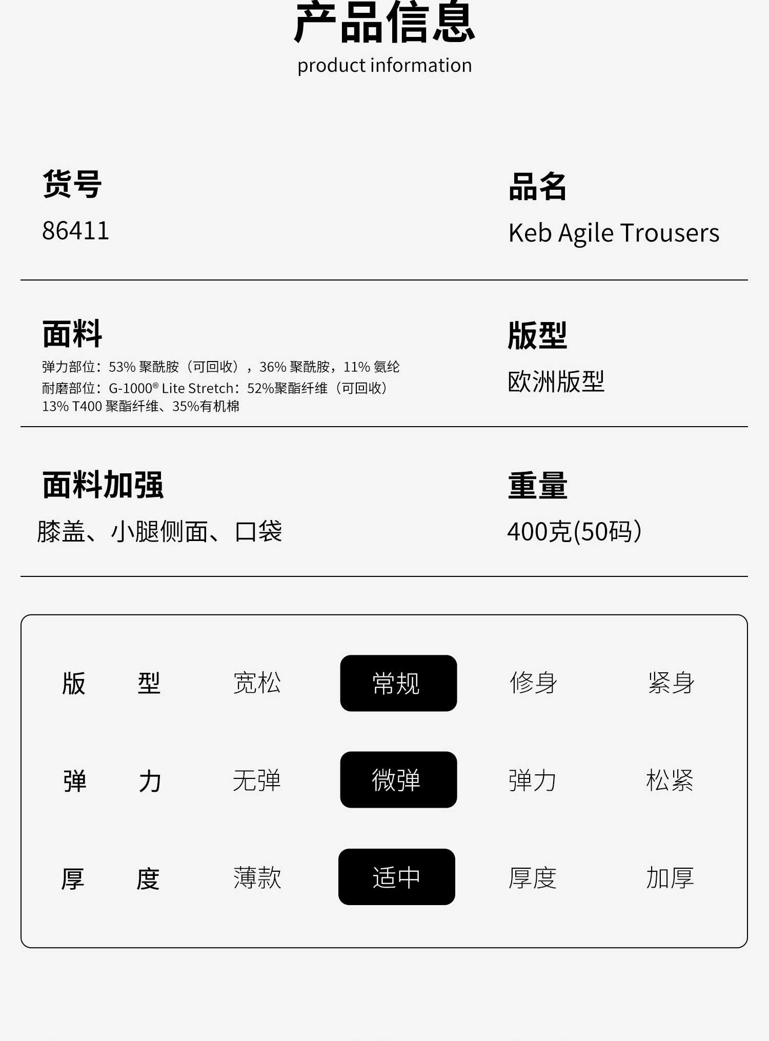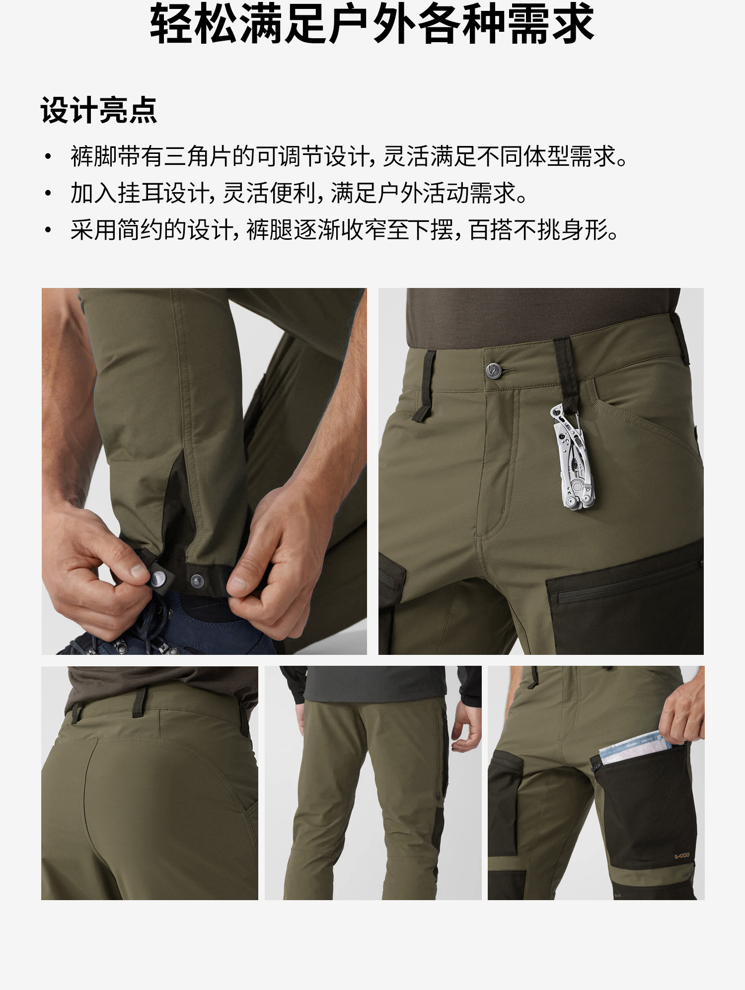 北极狐运动新款G-1000户外休闲工装舒适耐磨露营男士长裤 86411
