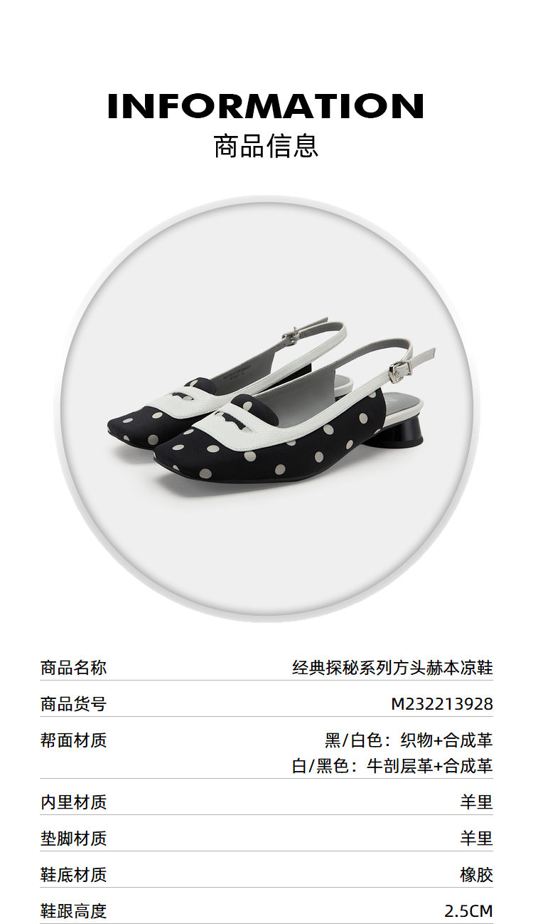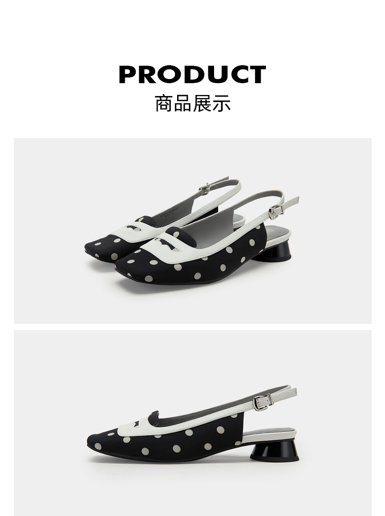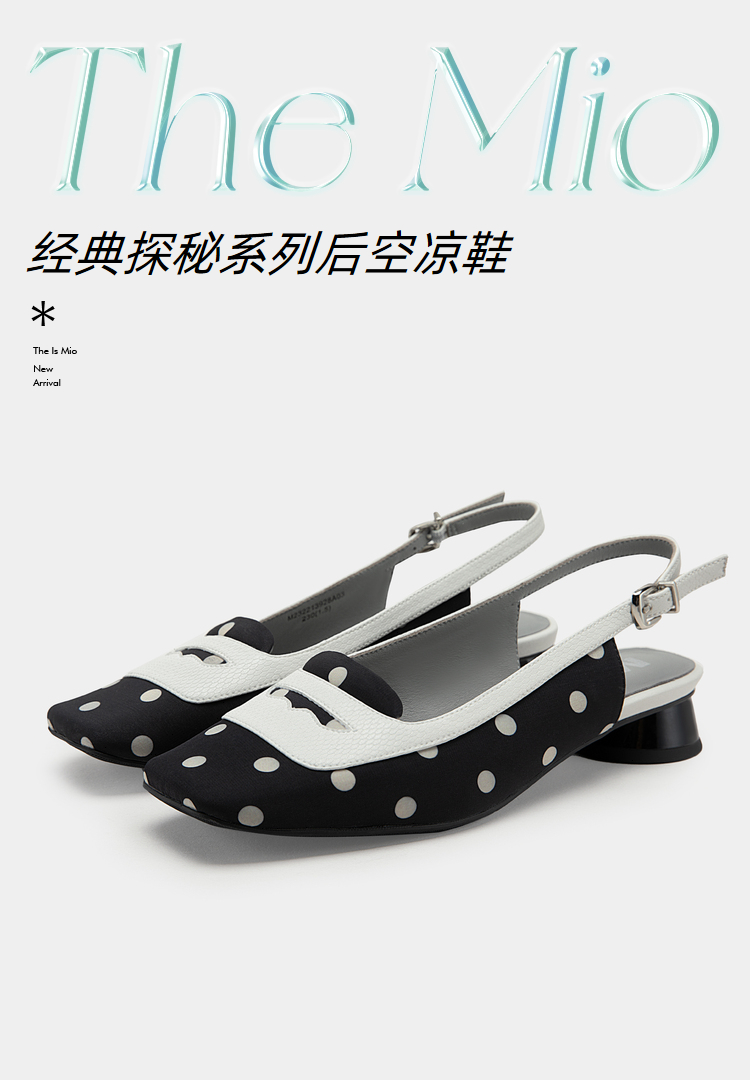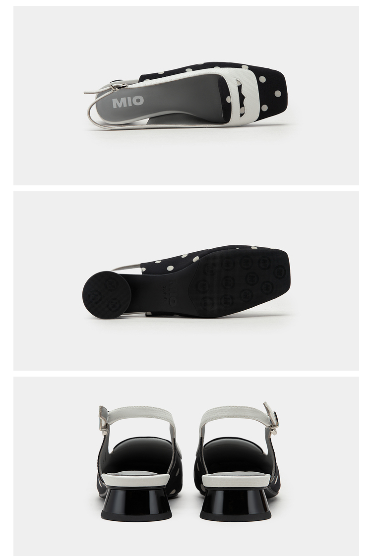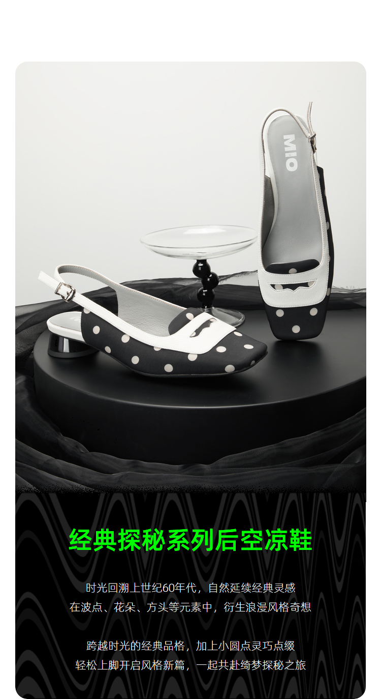 MIO米奥英伦风方头低跟浅口时装凉鞋复古时髦后空凉鞋女半凉鞋M232213928
