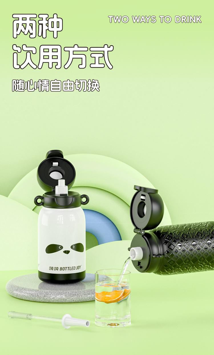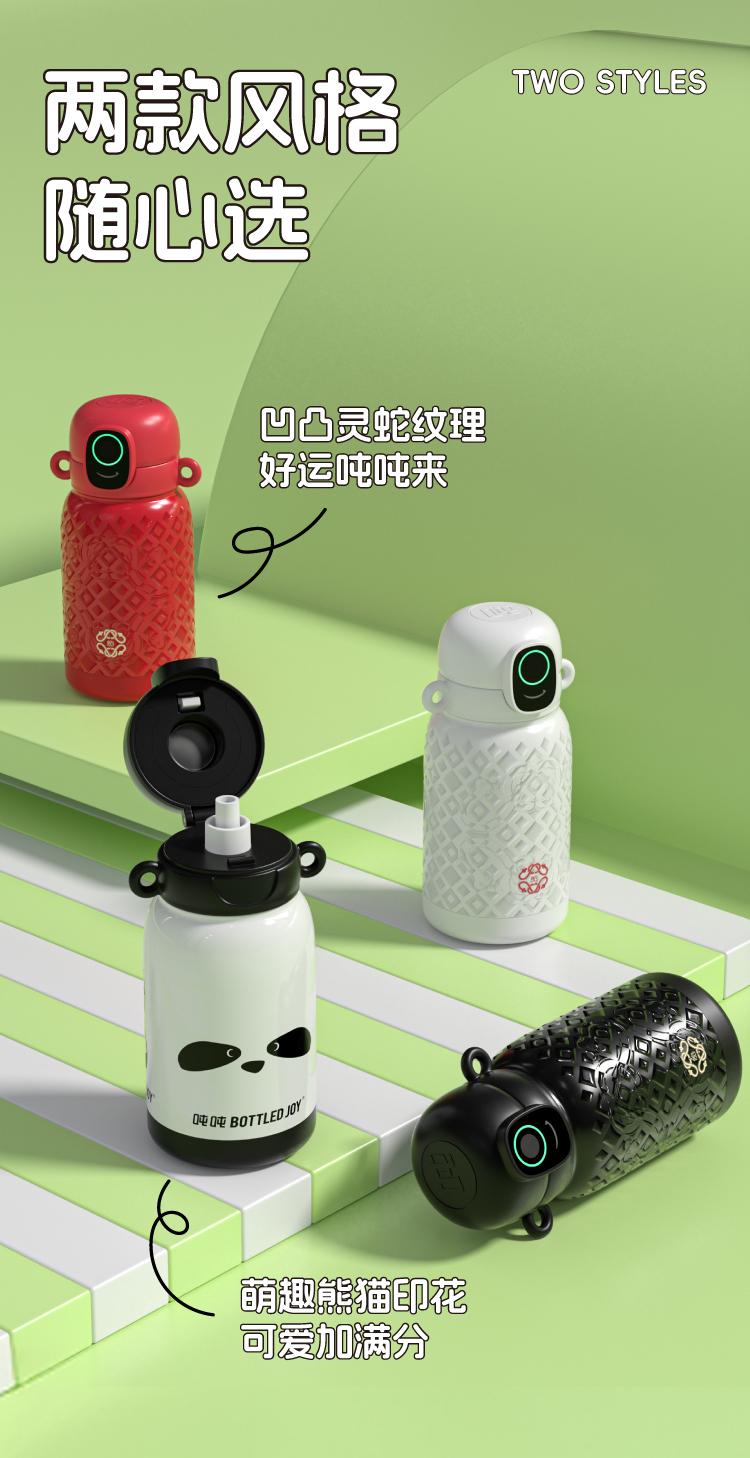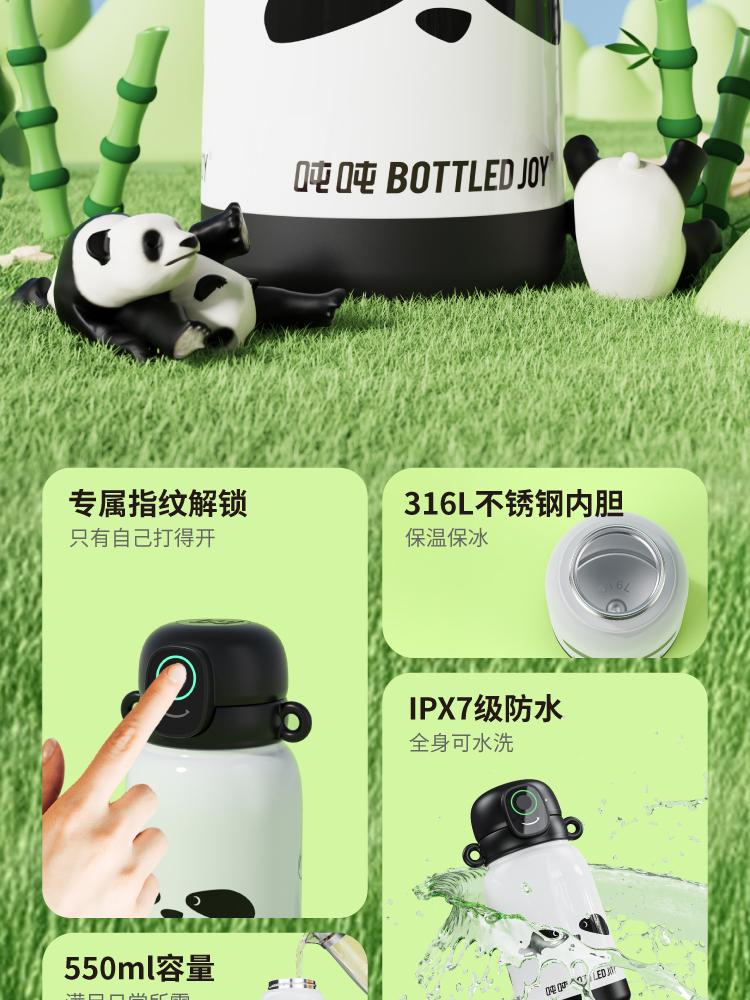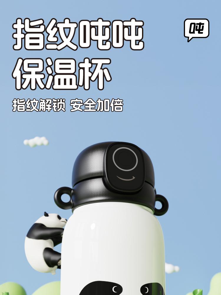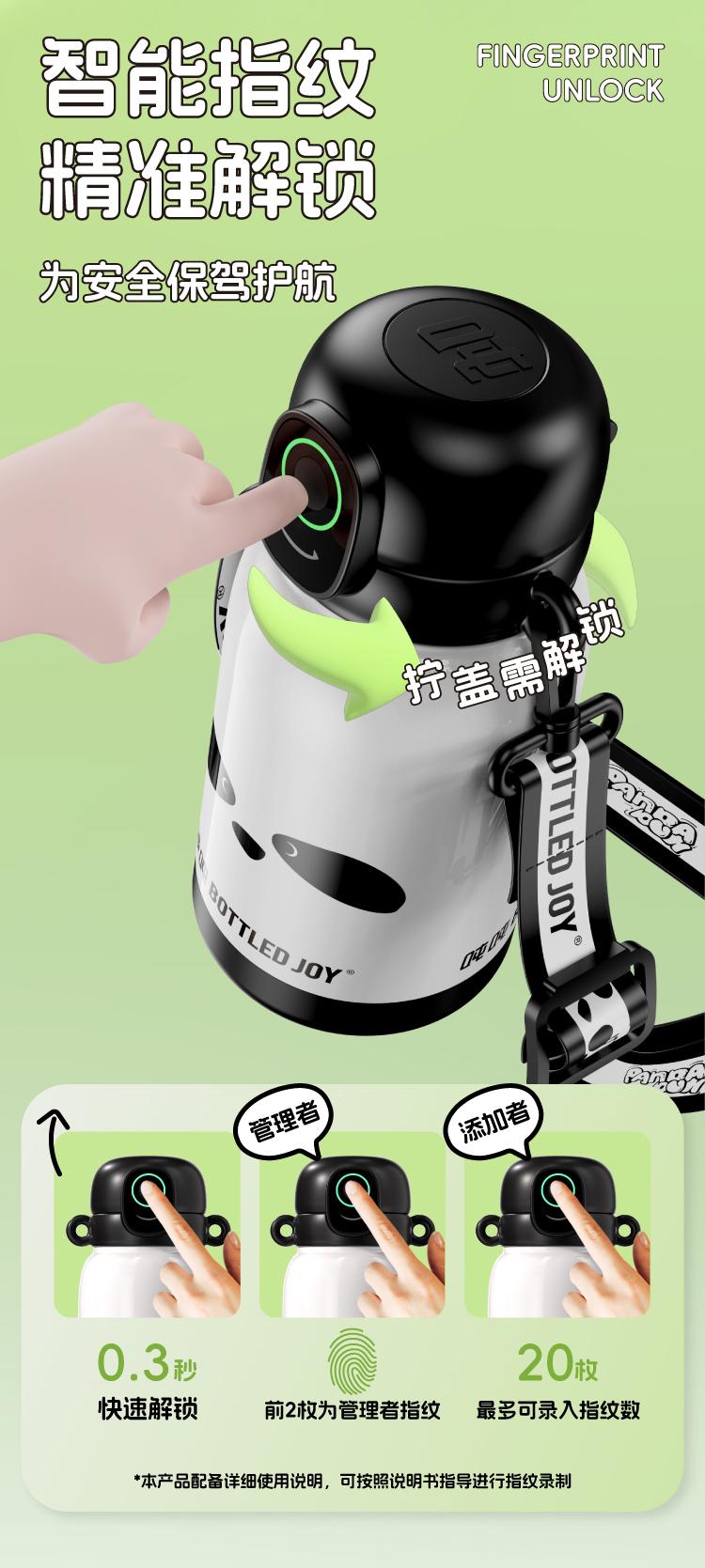【指纹吨吨】指纹解锁儿童保温杯便携吸管直饮两用可爱背带保温杯