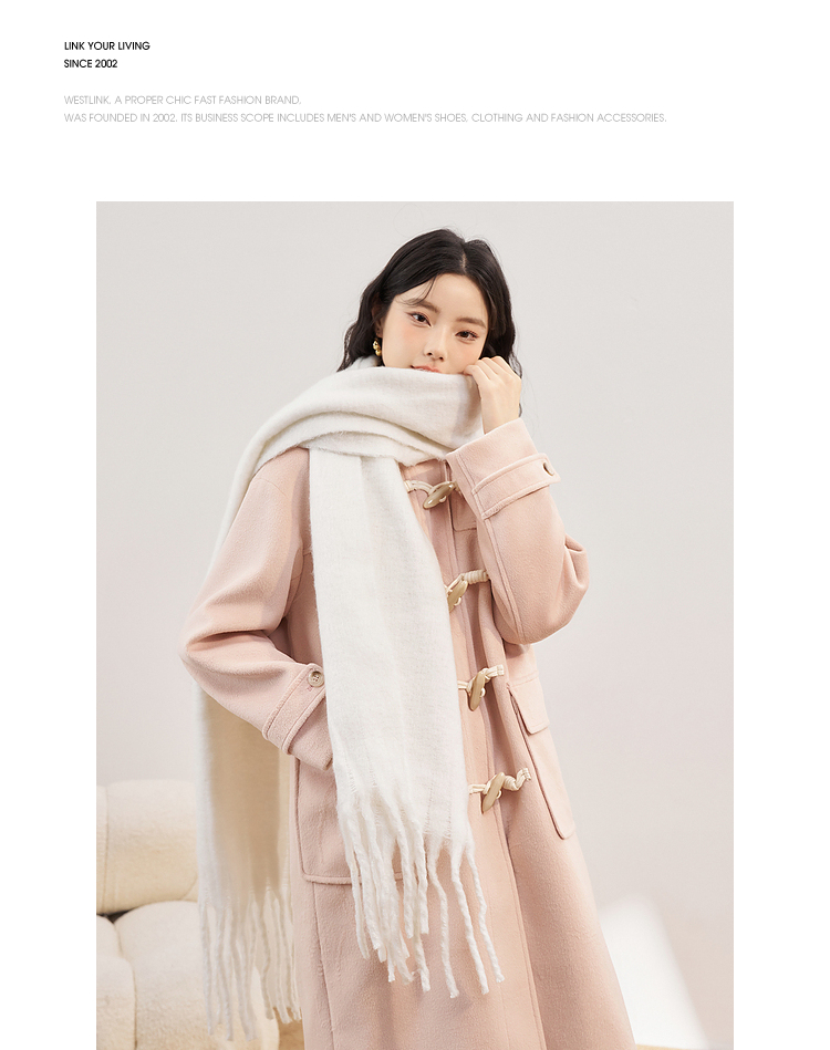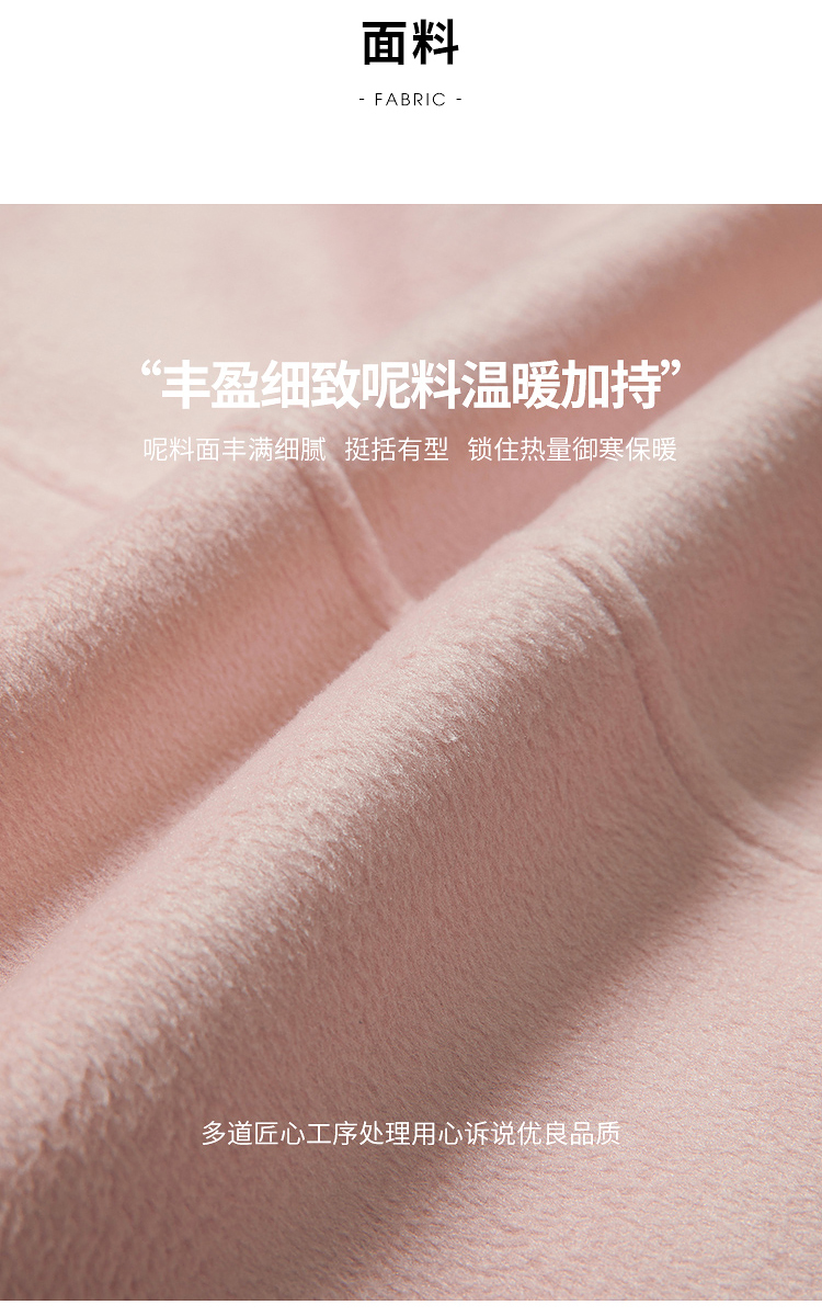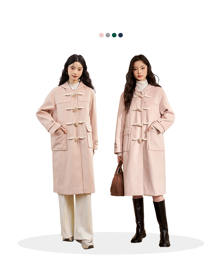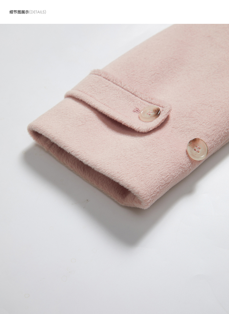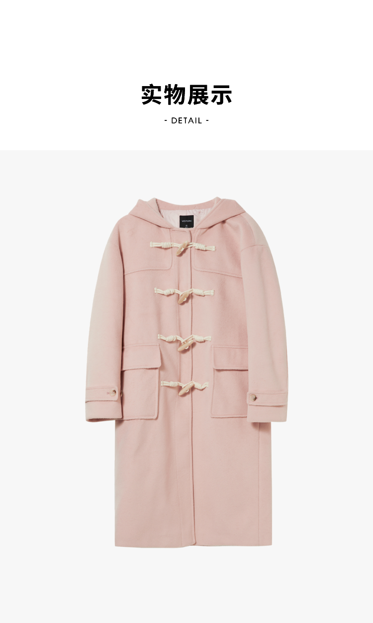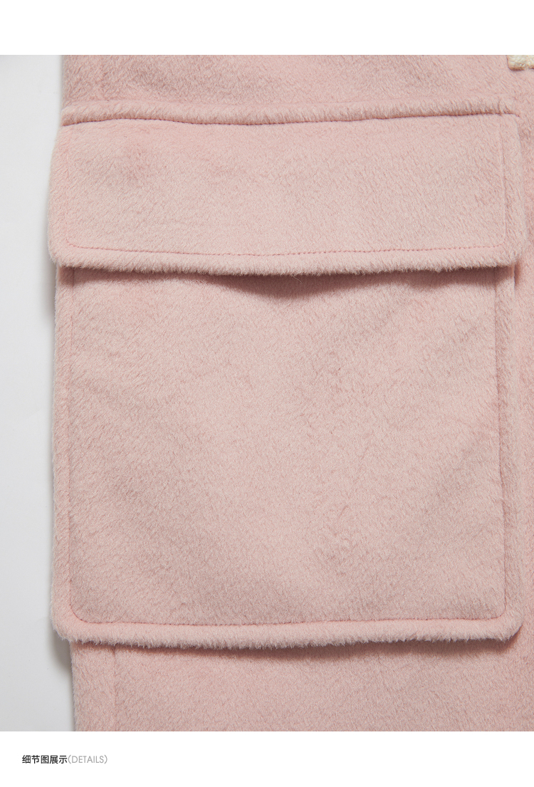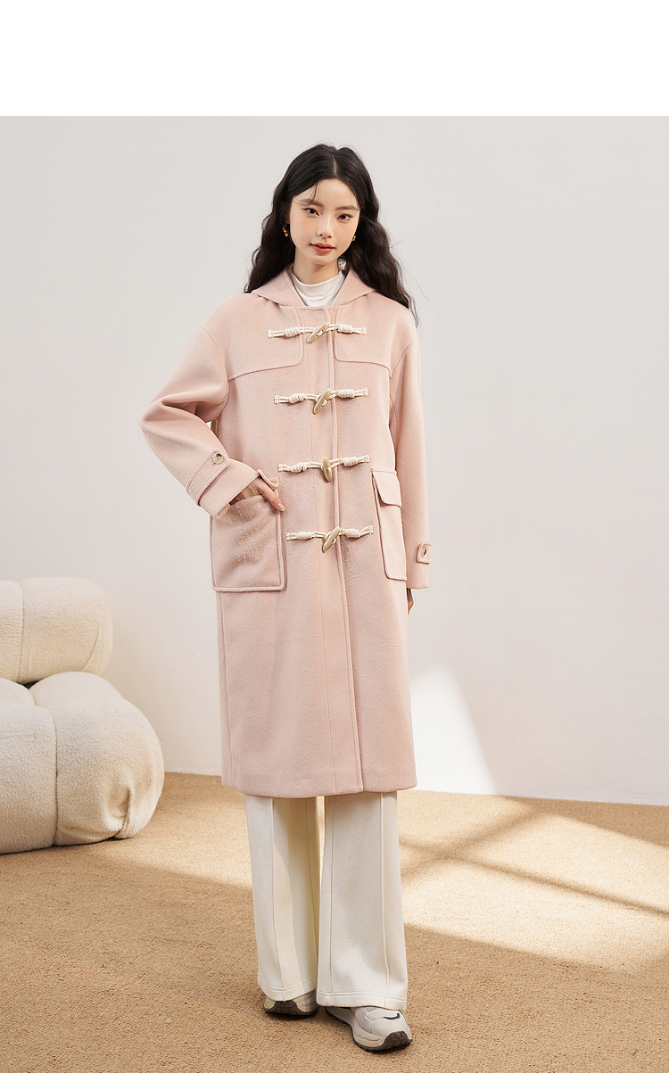 西遇赫本风毛呢外套秋冬新款小众粉色牛角扣大衣连帽外套女D2138677