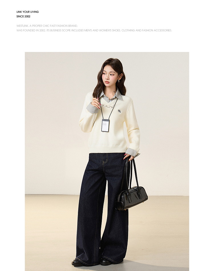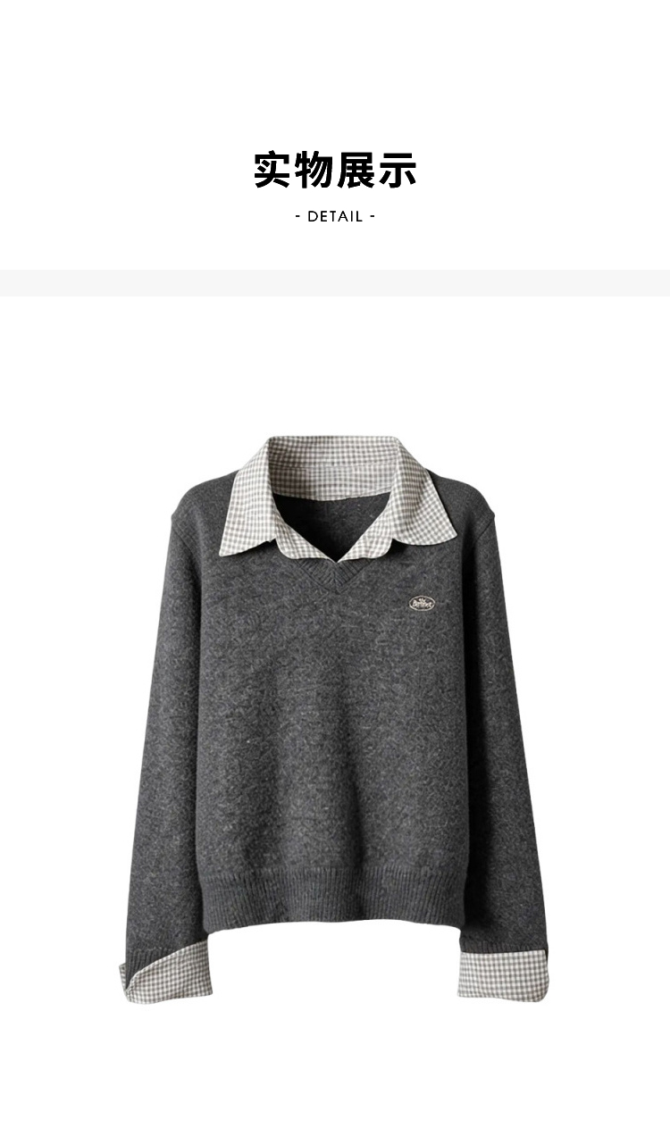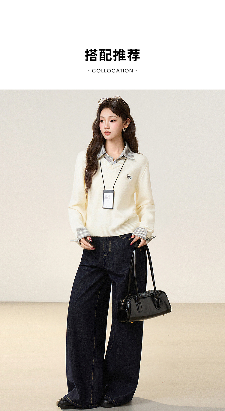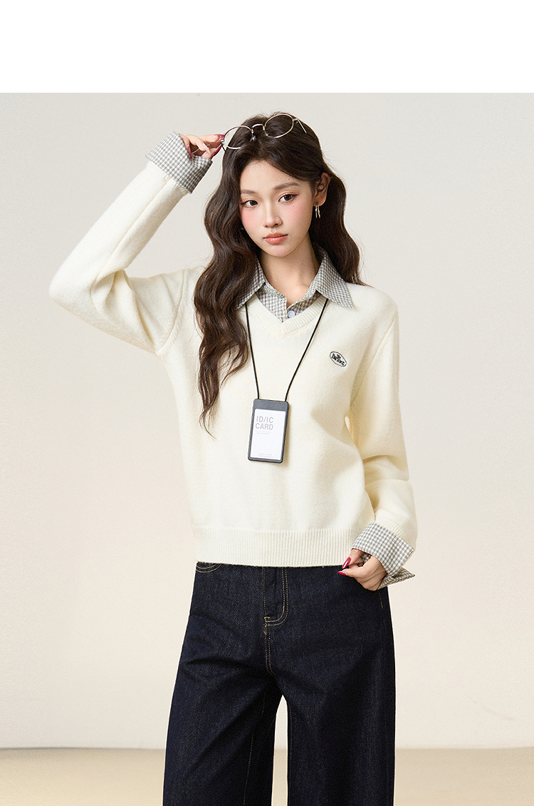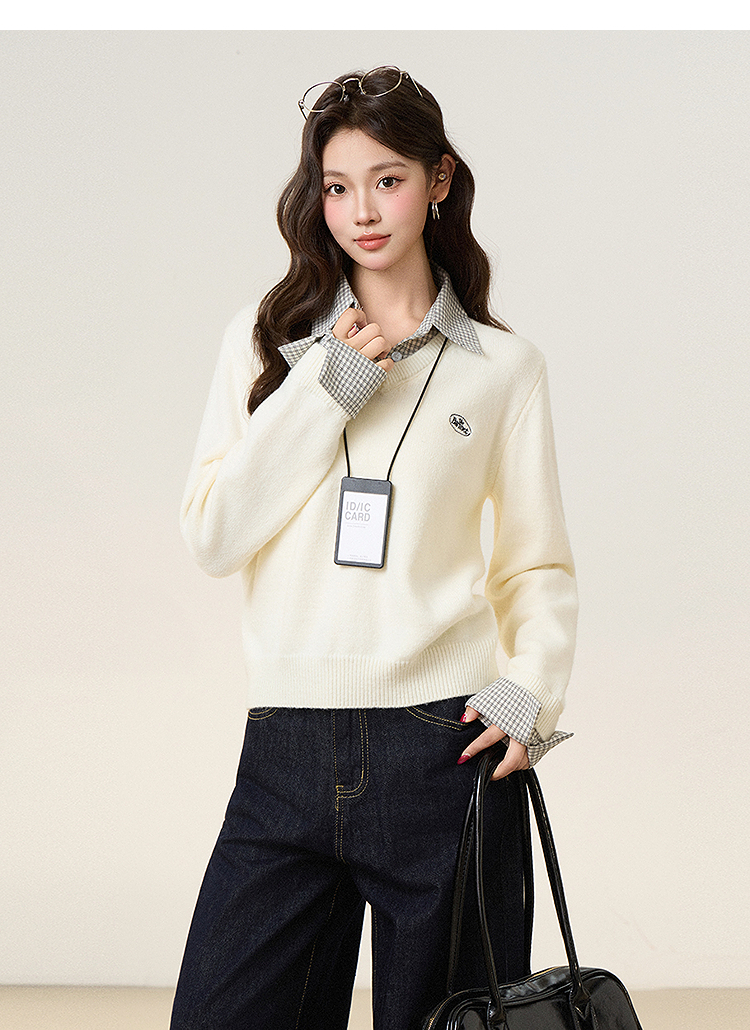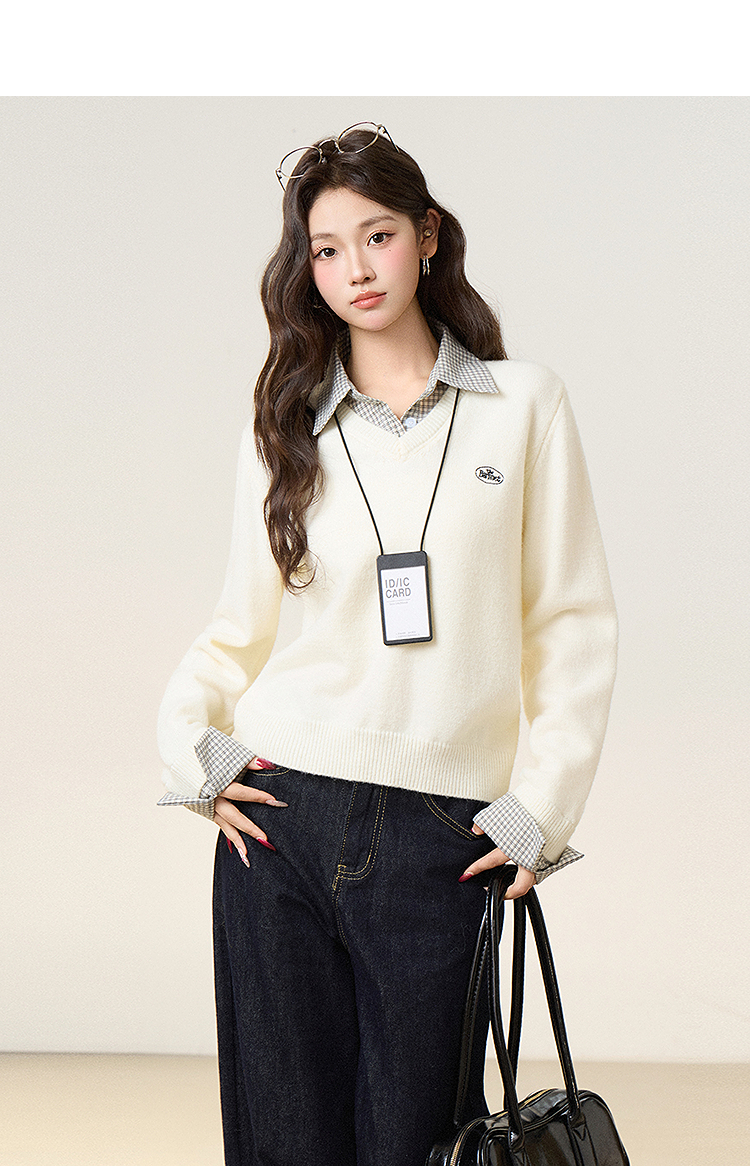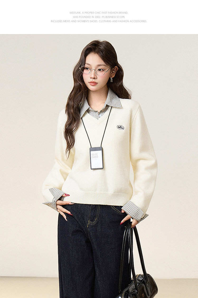西遇假两件套头毛衣女2026年春季新款韩系慵懒高级感百搭针织衫SS060053