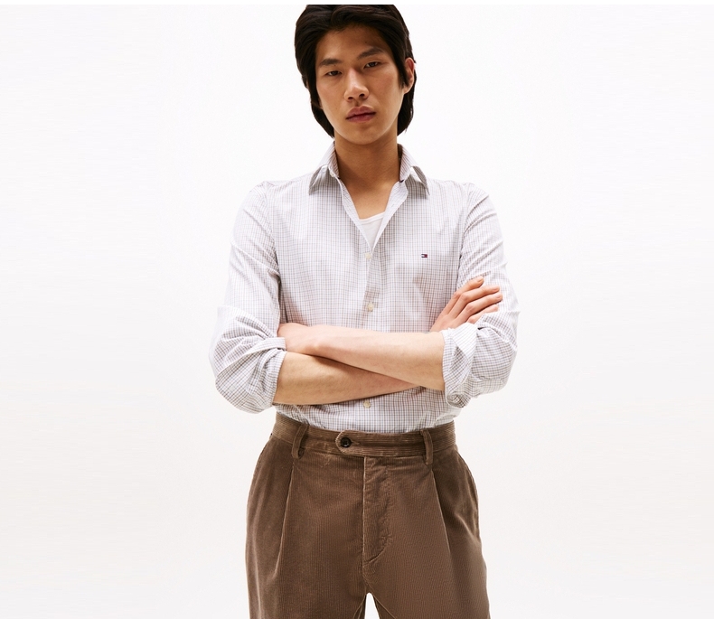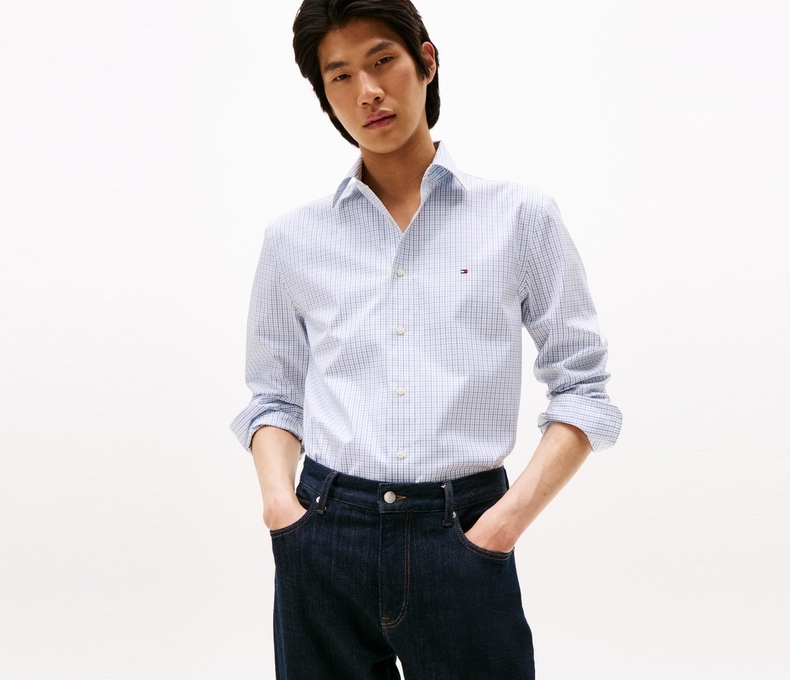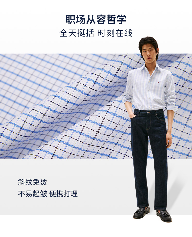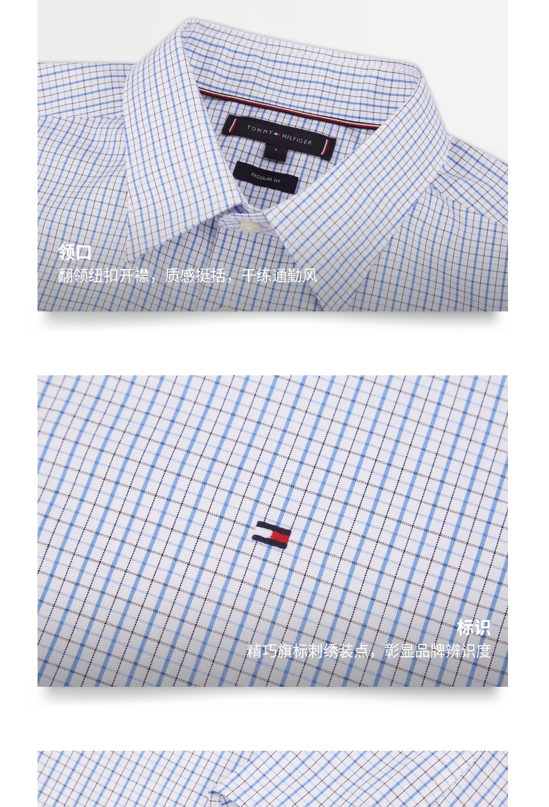TOMMY 衬衫男 MW40182-0MT 蓝白格纹.