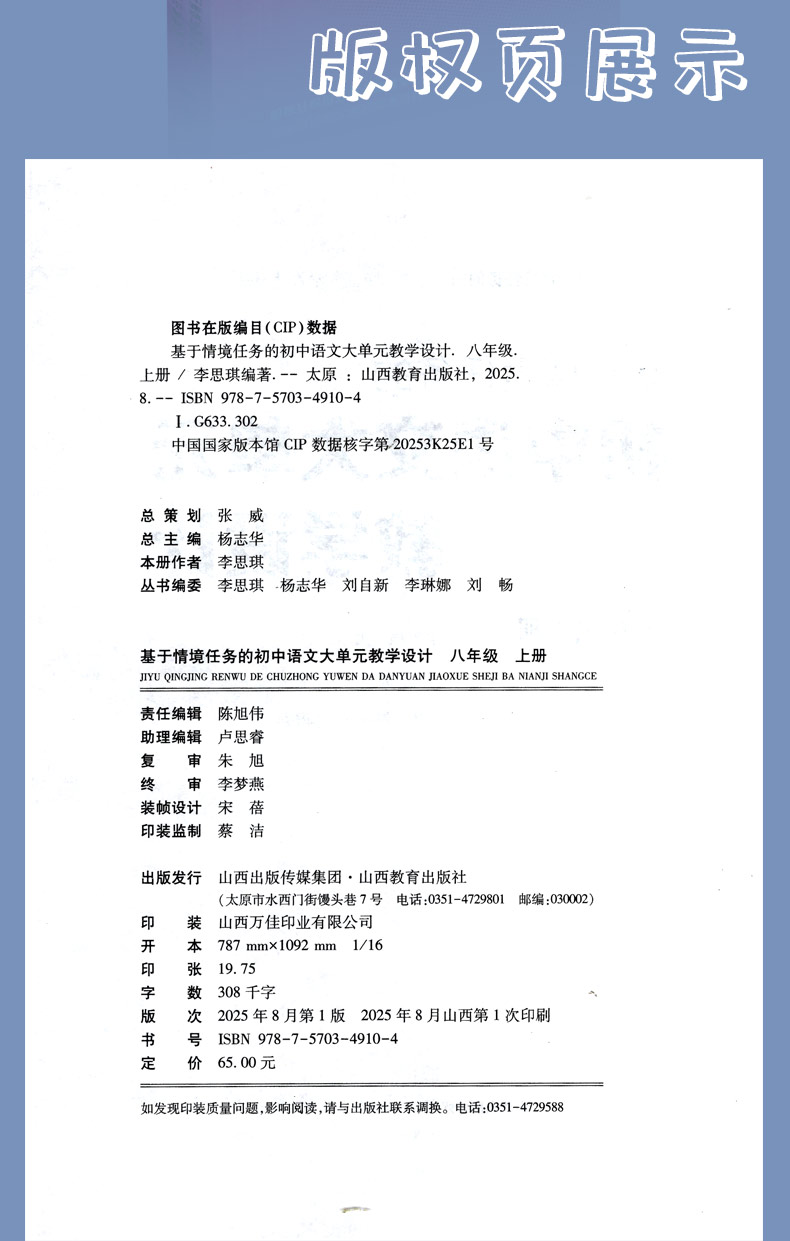 正版 基于情境任务的初中语文大单元教学设计 八年级上册 李思琪著