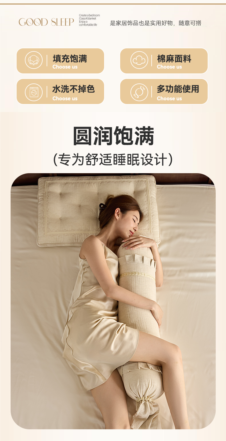 自然醒自然生态棉麻枕亚麻枕芯XK