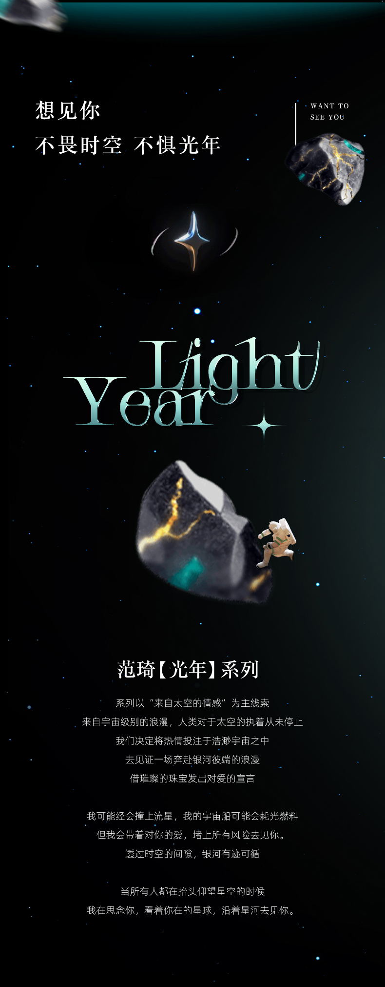 FANCI范琦始于2012年,以珠宝表达内心为初衷,聚焦不同亲密关系情感表达,联结无形情感,以情感符号「I FANCI U」传情达意,诠释“恋爱戴范琦,起点是你,终点亦是你”始终如一的恋爱价值观。
