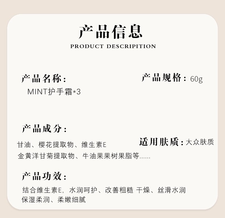 「3支!高级香水味」琪瑟MINT铝塑护手霜 补水滋润保湿清爽不油腻嫩肤滋润手部小巧便携美容护肤