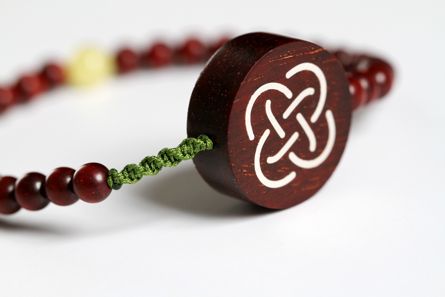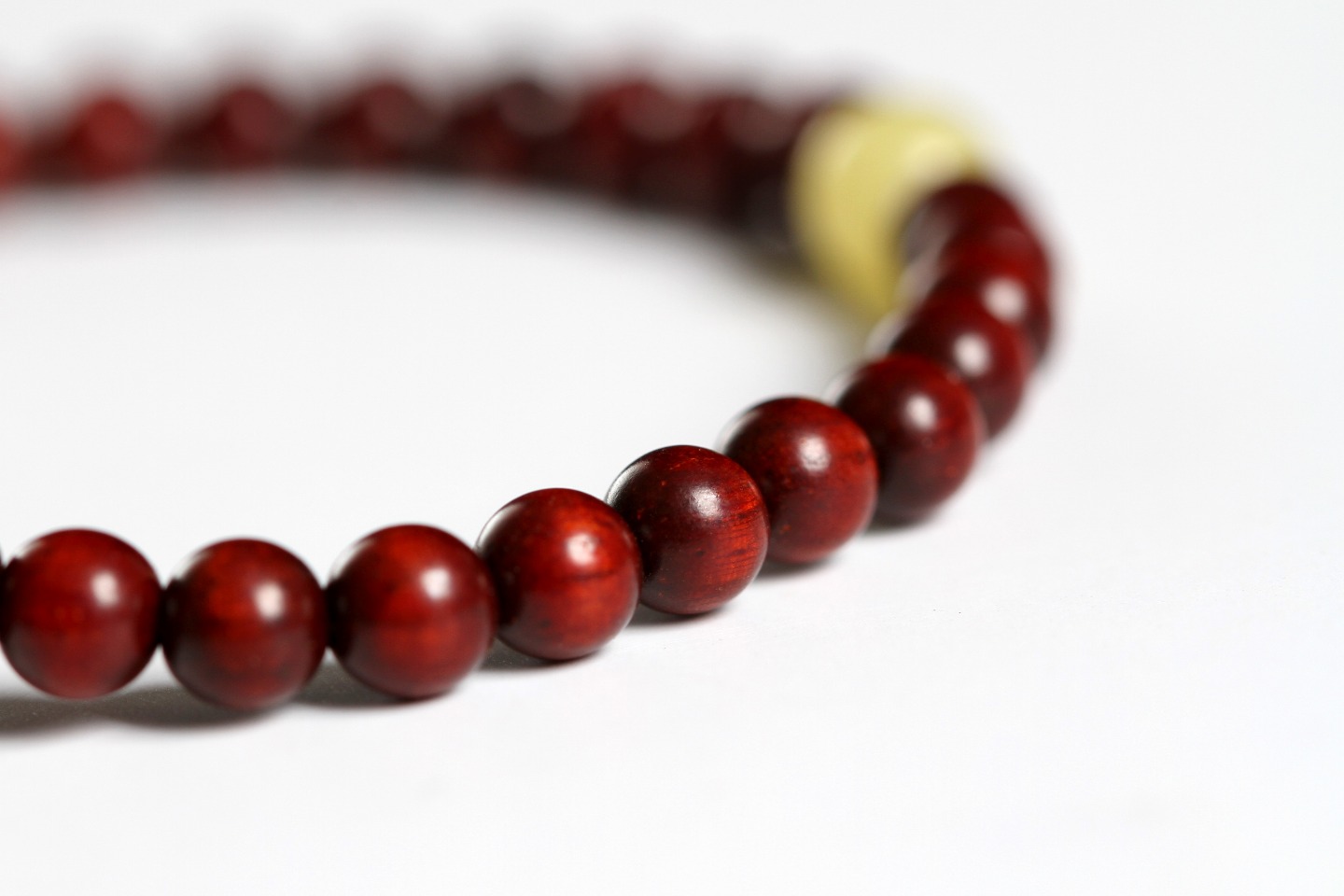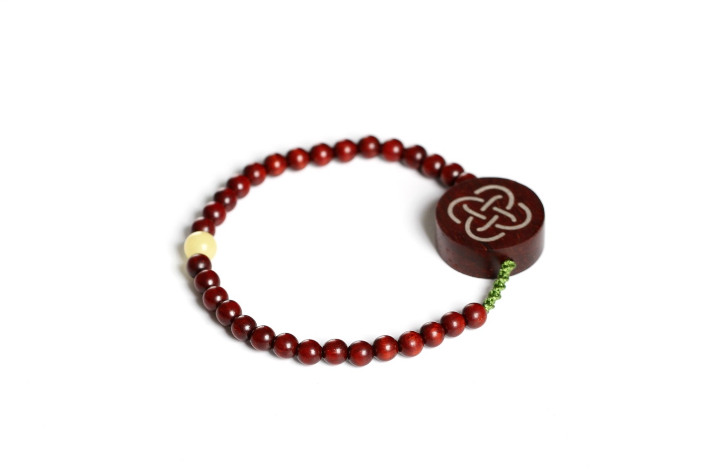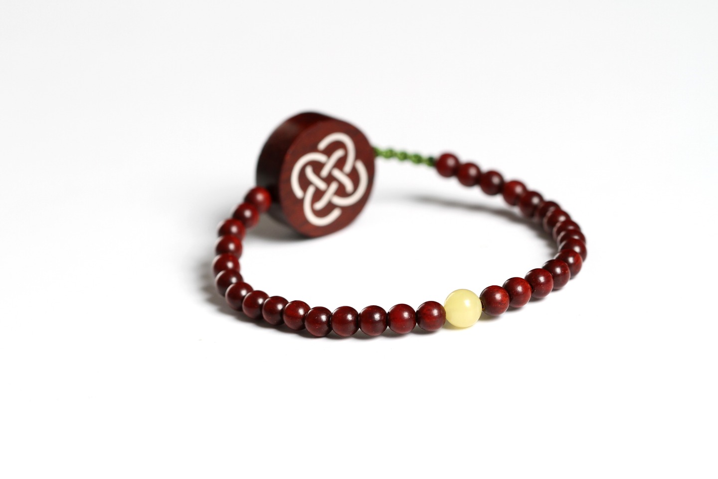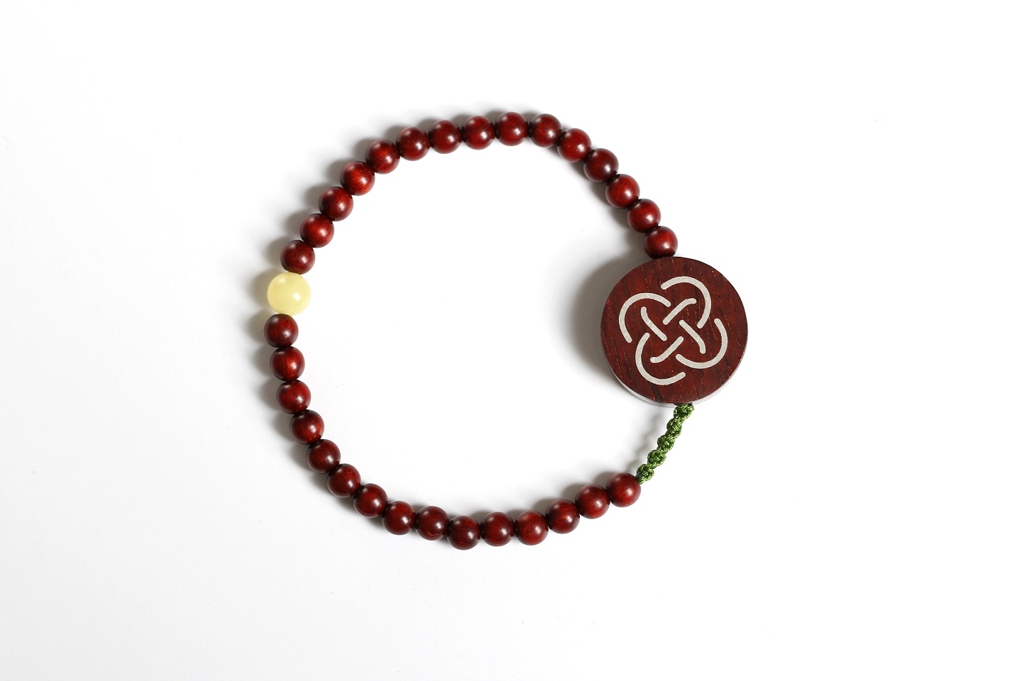 搭配:以印度小叶紫檀为主,搭配高精雕小叶紫檀镶银圆片如意结搭蜜蜡