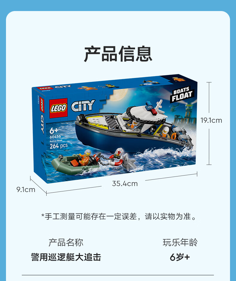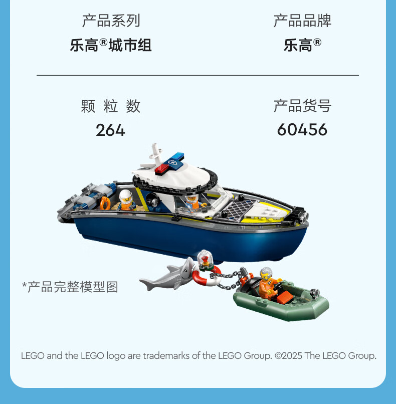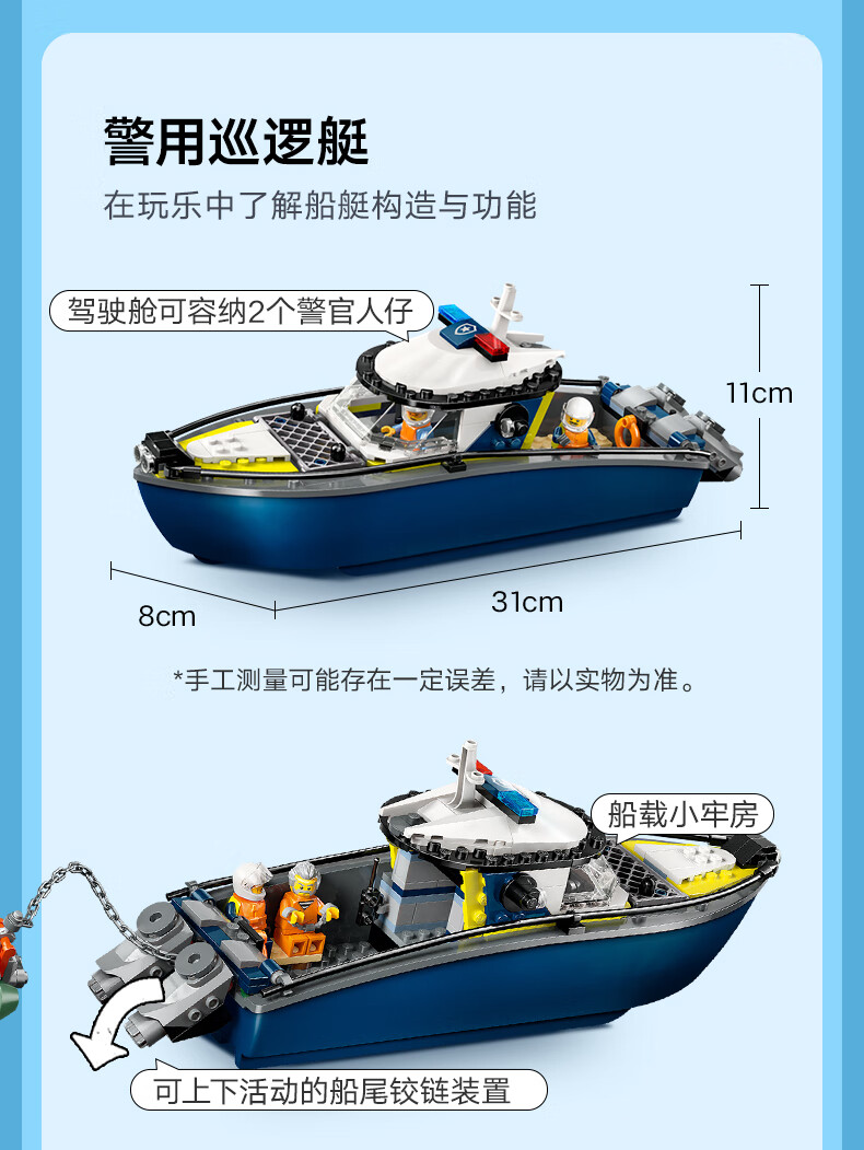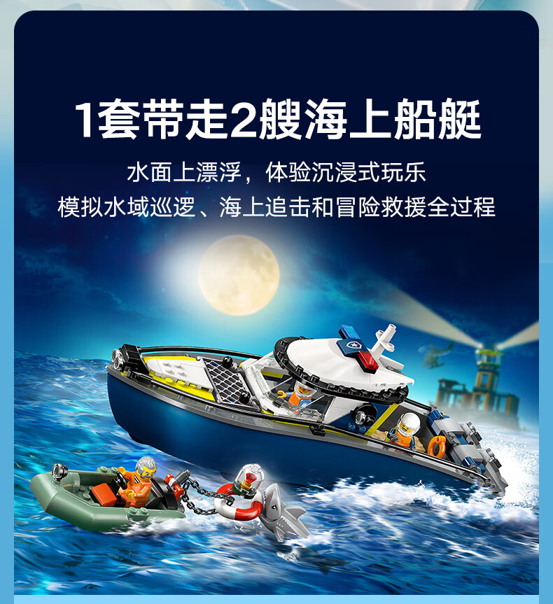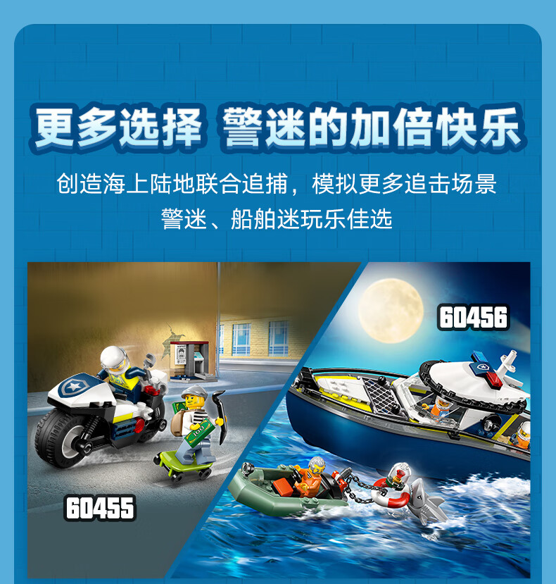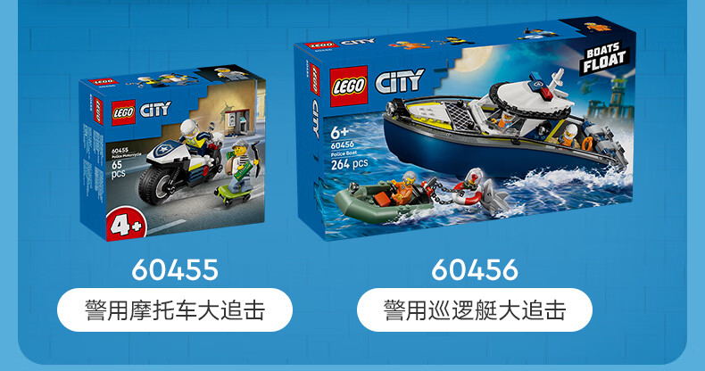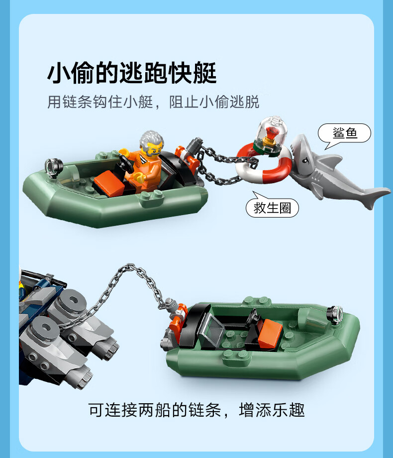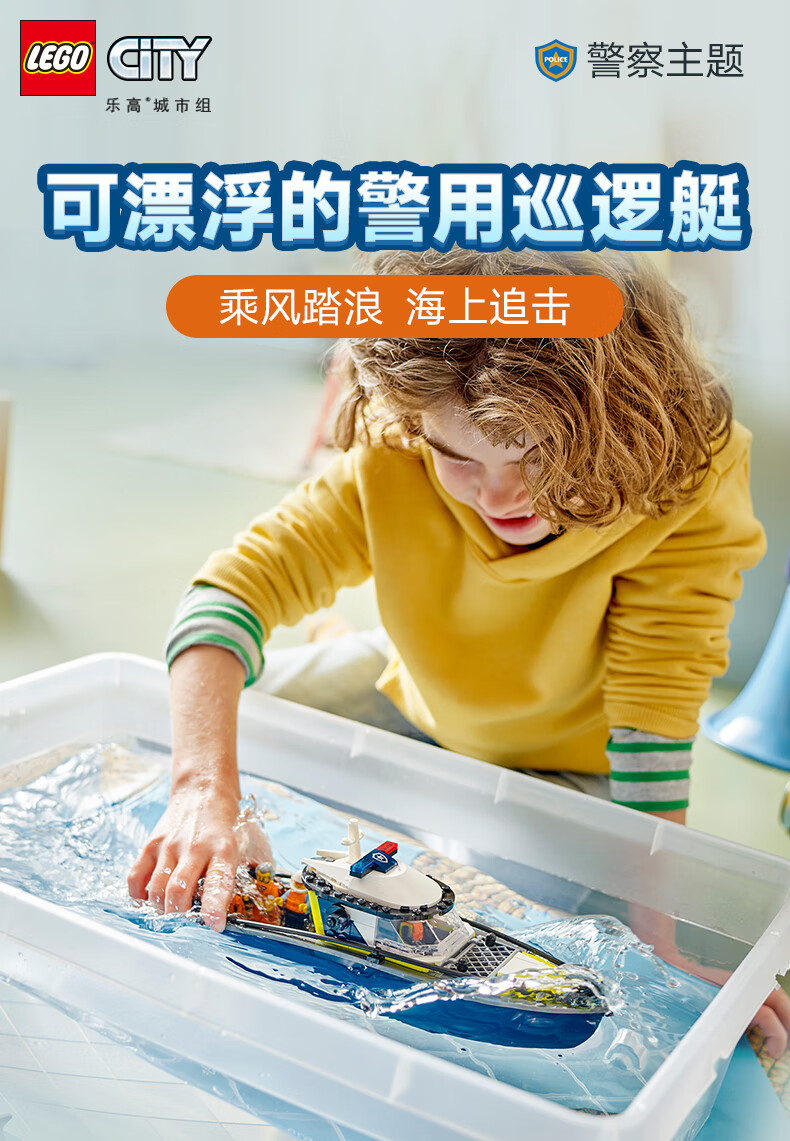 乐高积木L60456乐高城市系列警用巡逻艇大追击