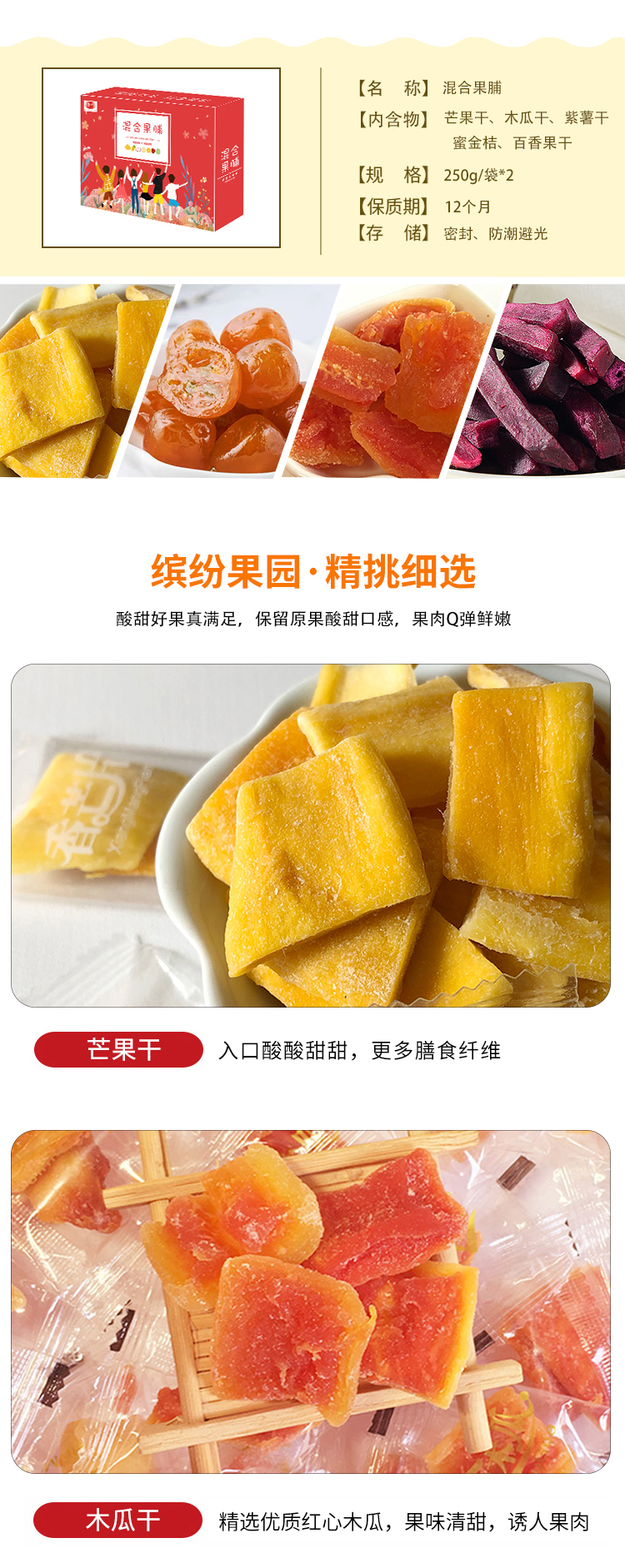 【湛江帮扶】混合果脯(蜜金桔,芒果干,木瓜干,紫薯干,百香果干) 250g*2袋/盒